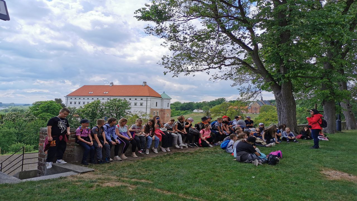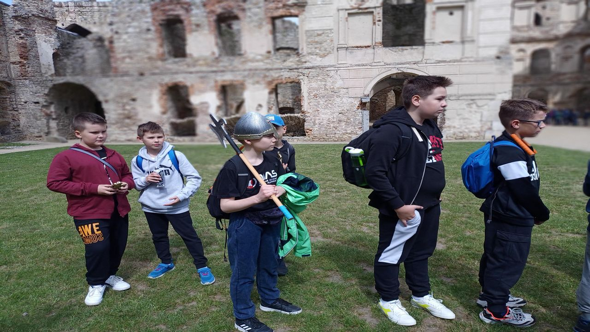 W dniu 23 maja 2022 roku uczniowie klas 4c i 4e wraz z opiekunami wybrali się autokarem na długo wyczekiwaną wycieczkę. Najpierw udali się do Ujazdu, gdzie z zaciekawieniem zwiedzili malownicze ruiny Zamku Krzyżtopór. Pani przewodnik oprowadzając młodzież po pałacu, barwnie opowiadała o burzliwych dziejach dawnej rezydencji - jednej z najpotężniejszych w Europie w XVII wieku oraz o tym, jak dobrze obiekt ten był zaplanowany przez twórców. Uczniowie chętnie wędrowali po zamku i fotografowali się na jego tle.