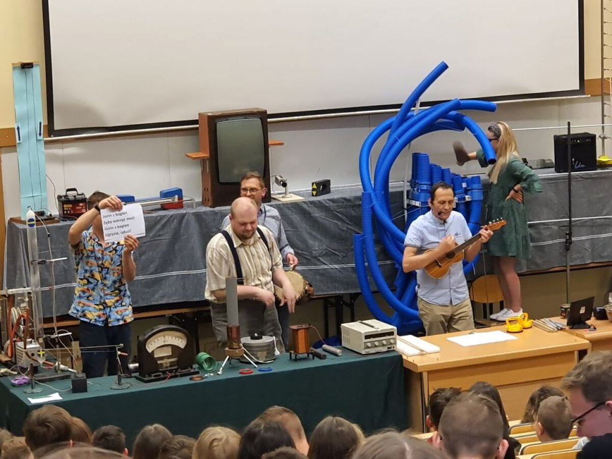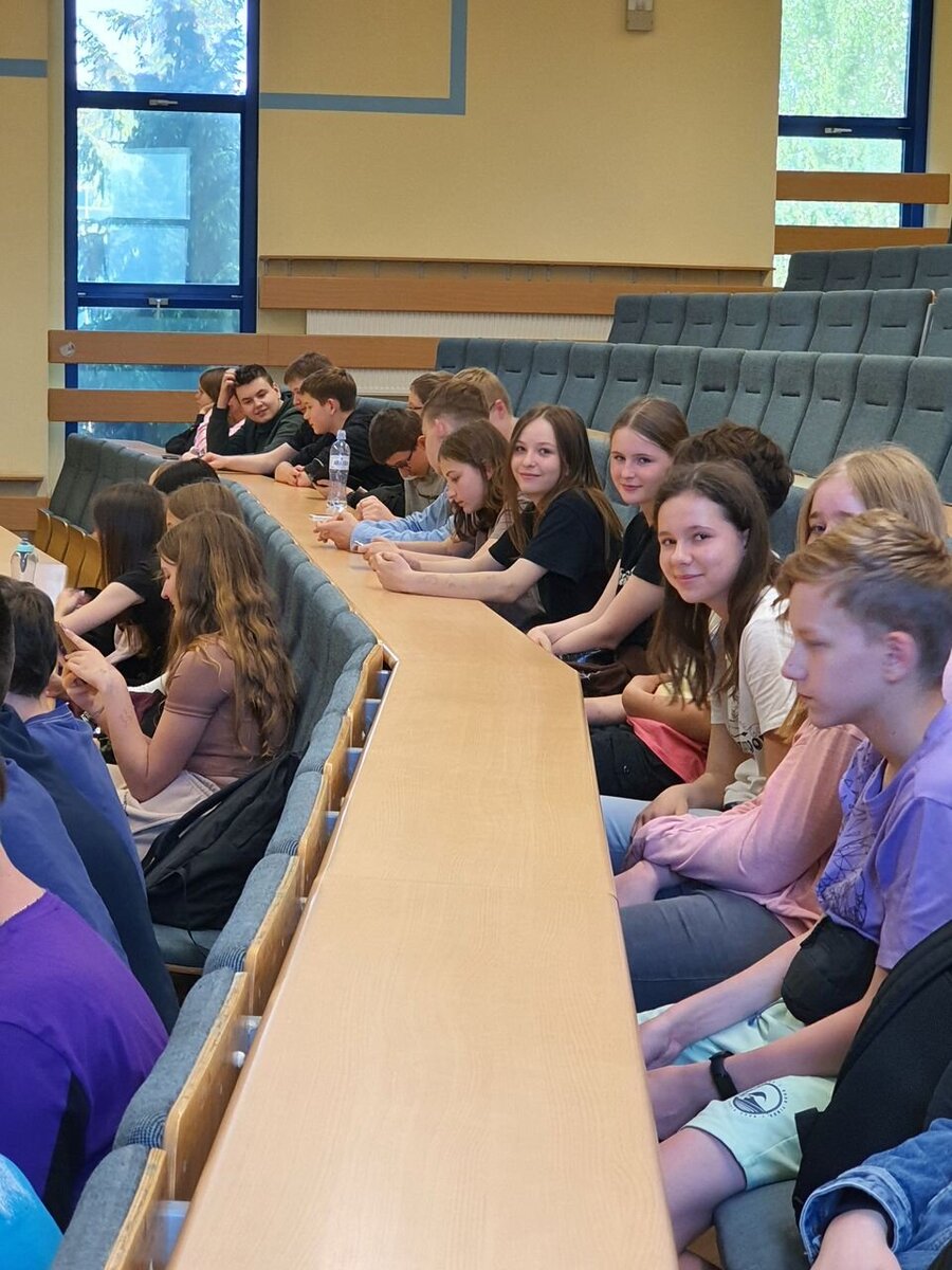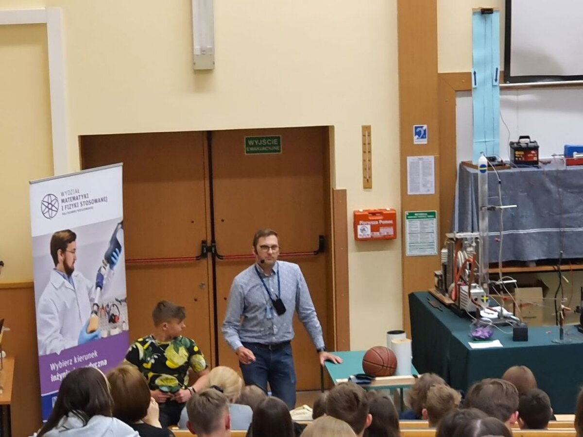 W dniu 19 maja 2022 uczniowie z klas 7c, 7a i 7d uczestniczyli w pokazach fizycznych zorganizowanych przez Politechnikę Rzeszowską. Program pokazów obejmował następujące zagadnienia: zasady zachowania, fale i akustyka, ciśnienie i elektromagnetyzm.