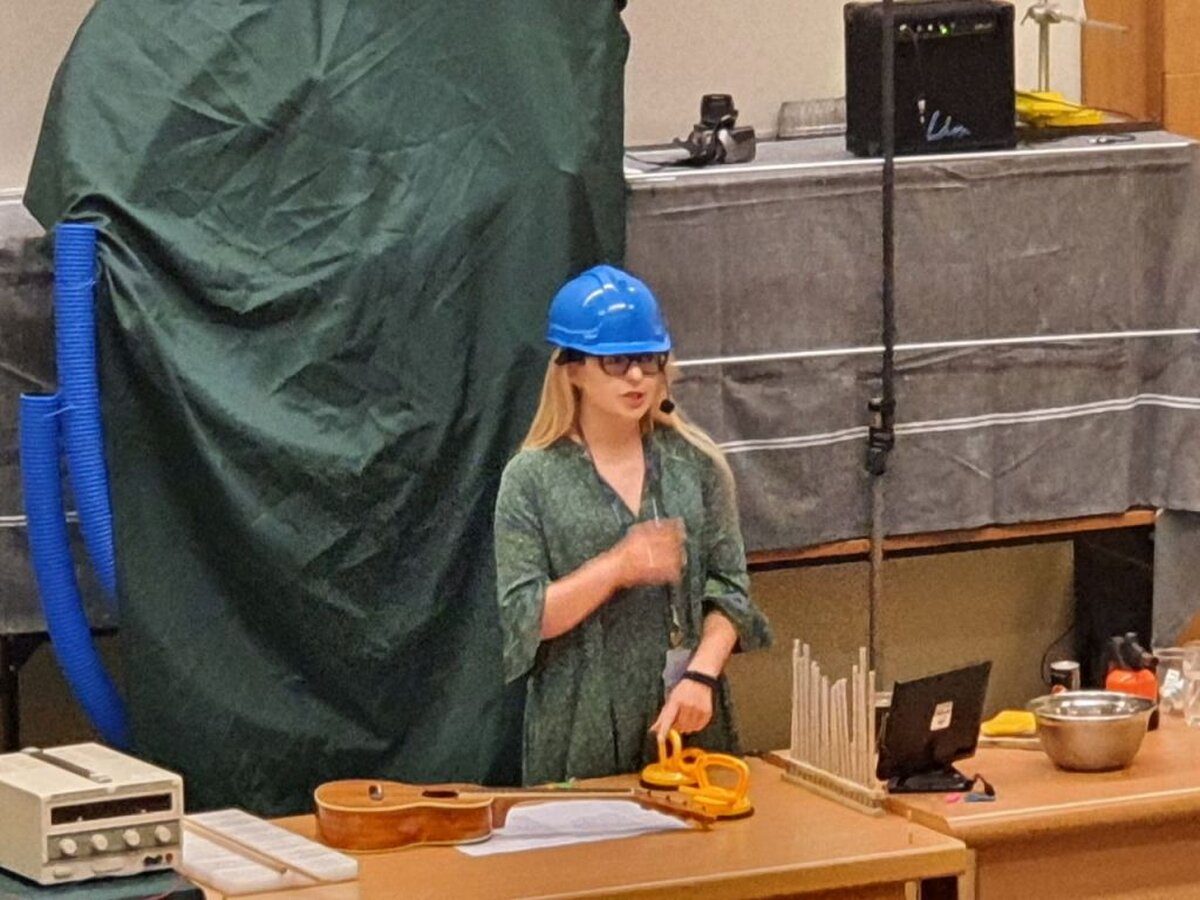 Ostatnia grupa eksperymentów dotyczyła fal i akustyki. Można powiedzieć, że była to najbardziej „rozrywkowa” część pokazów. Po doświadczeniach dotyczących fal mechanicznych przyszła kolej na akustykę czyli m.in. na wytwarzanie dźwięków za pomocą „dziwnych urządzeń”, wcześniej przygotowanych przez prowadzących.