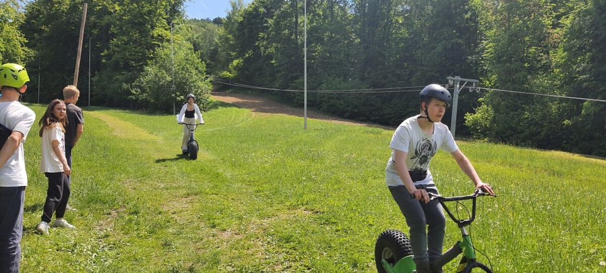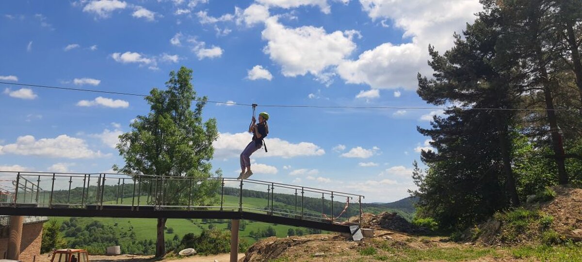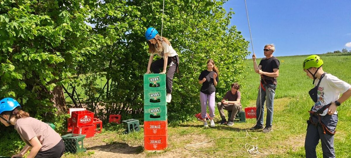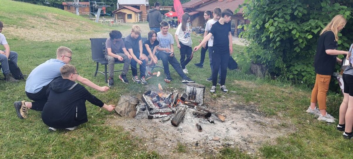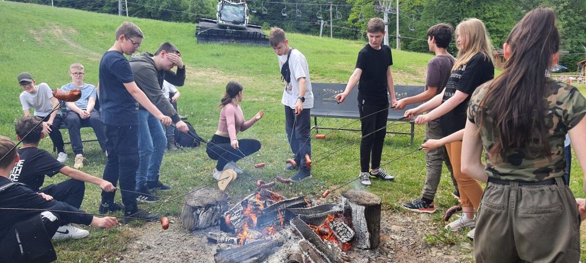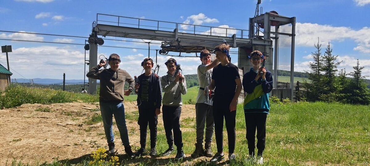 W dniu 27.05.2022 uczniowie klasy 7c wraz z opiekunami udali się na wycieczkę do Leśnej Szkoły w Puławach, aby wśród pięknej przyrody Beskidu Niskiego odkryć radość z rywalizacji, zabawy i bycia razem na łonie natury. Na uczniów czekało tam wiele atrakcji: podchody w lesie, gdzie musieli zmierzyć się z serią zadań sprawnościowo-logicznych wymagających pracy zespołowej, paintball elektroniczny, czy zjazd na monster-hulajnogach ze stoku narciarskiego. Chętni uczniowie mogli także podjąć wyzwanie z grawitacją na 211m tyrolce na szczycie Kiczery. Każdy mógł sprawdzić swoje umiejętności budując jak najwyższą wieże ze skrzynek po napojach czy strzelając z łuku, co wcale nie okazało się takim prostym zadaniem. Emocjom ze wspólnej zabawy i rywalizacji oraz radości z wygranej nie było końca. Po wyczynach sportowych na wszystkich czekało rozpalone ognisko, gdzie każdy miał okazję samodzielnie upiec sobie kiełbasę i podzielić się wrażeniami z innymi uczestnikami i nauczycielami. Na koniec uczniowie stwierdzili, że był to naprawdę udany dzień.