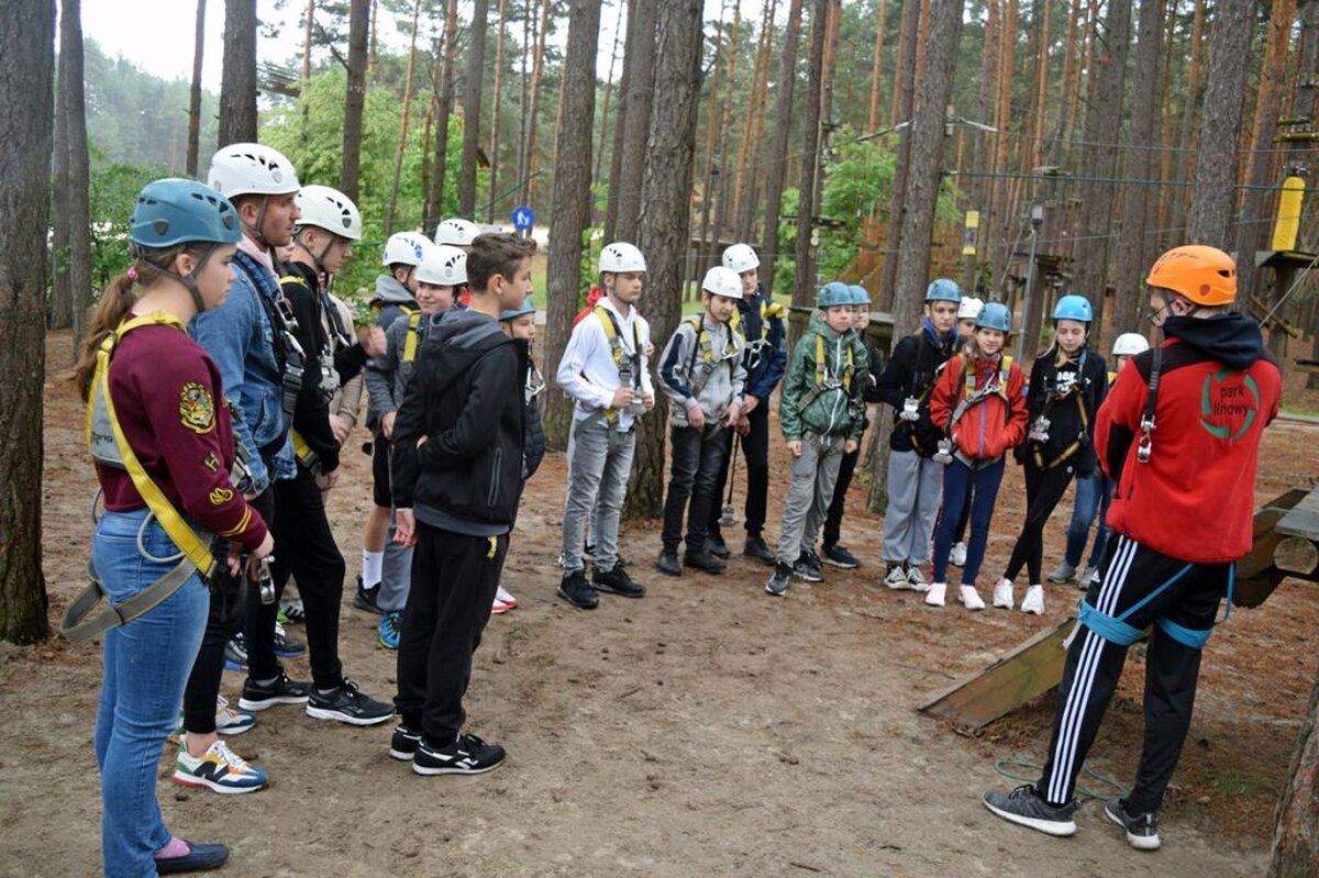 Po przyjeździe uczestnicy wyjazdu zostali podzieleni na trzy grupy. Pierwsza skierowała się prosto do parku linowego, gdzie można się było wykazać umiejętnościami wspinaczkowymi i koordynacyjnymi. Druga w tym czasie wzięła udział w pełnej zagadek grze terenowej. Z kolei trzecia odwiedziła multimedialne laboratoria wiedzy - "Runo Leśne", "Energia i Recykling", "Awifauna i Troposfera" oraz laboratorium główne z m.in. insektarium i terrarium. Uczniowie z poszczególnych grup po skończeniu jednego punktu programu przechodzili na zmianę do kolejnych. Dla każdego znalazło się coś ciekawego.