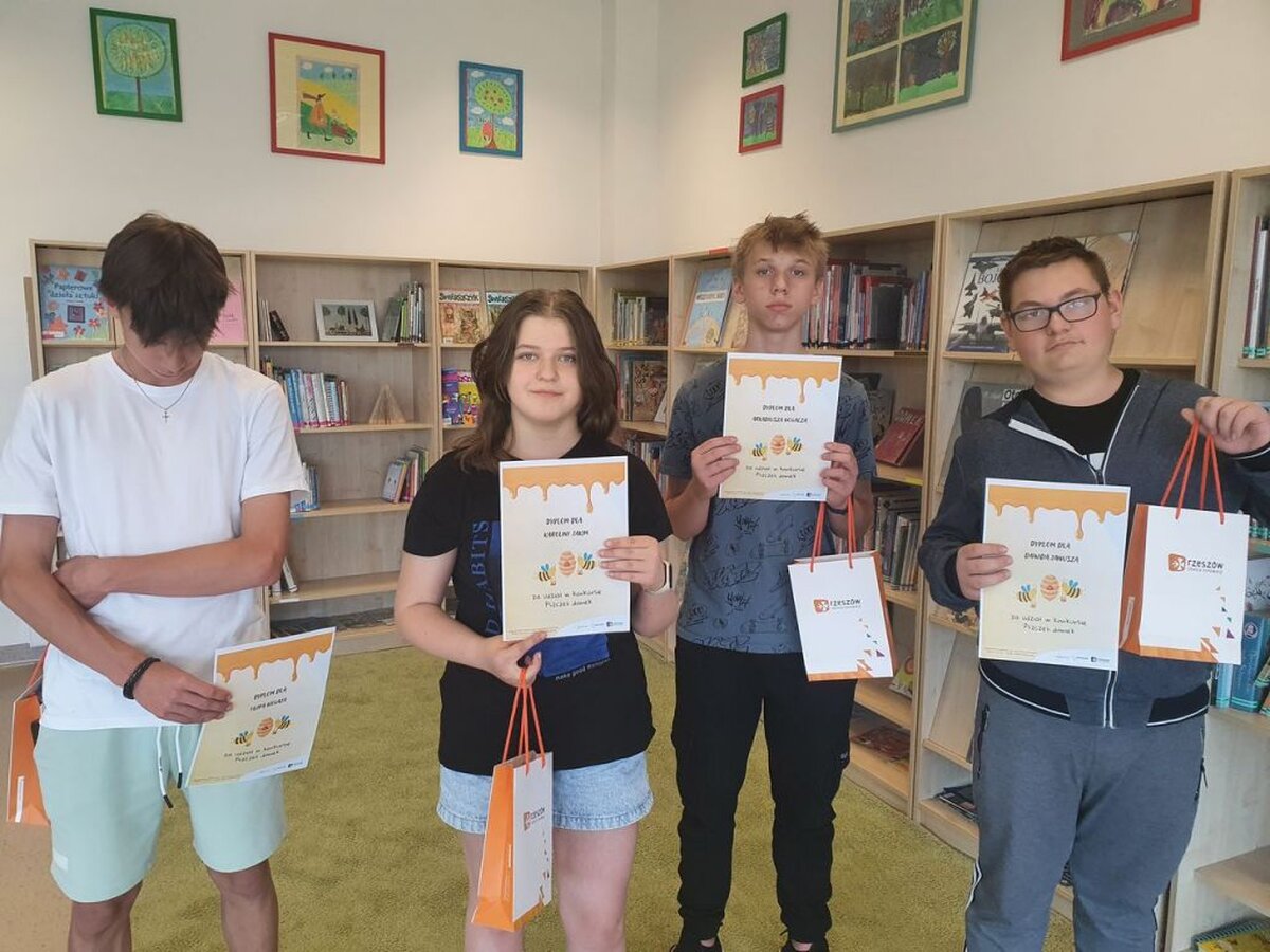 Bardzo się cieszymy, że nasi uczniowie znaleźli się na liście zwycięzców konkursu plastyczno-informatycznego pt. "Pszczeli domek", którego organizatorem był Wydział Marki Miasta, Współpracy Gospodarczej i Turystyki Urzędu Miasta Rzeszowa, w ramach projektu BeeFriendly, który wspierany jest przez Międzynarodowy Fundusz Wyszehradzki.