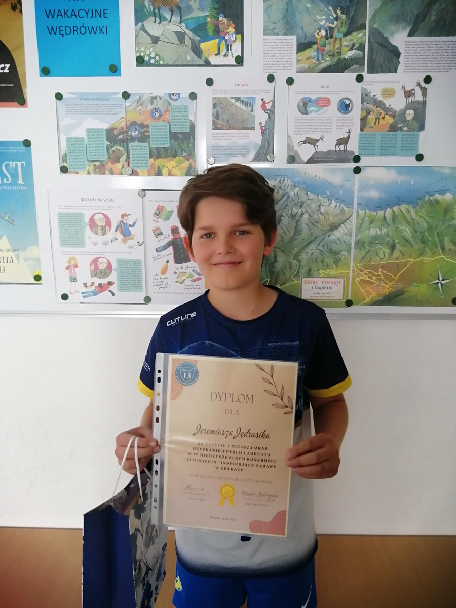 Rozstrzygnięto IV edycję Międzyszkolnego Konkursu Literackiego pod hasłem "Inspirujące zabawy w ekfrazy". Spośród licznych prac konkursowych, które otrzymał organizator wyłoniono 3 laureatów - miło nam poinformować, że Jeremiasz Jędrusik z klasy 7d okazał się najlepszy, zajmując I miejsce. Zadaniem uczestników było napisanie ekfrazy – literackiego opisu dzieła sztuki w poezji lub w prozie. Jeremiasz podejmując samodzielną próbę literacką, opartą na własnych przeżyciach wynikających z odczytania dzieła sztuki napisał ekfrazę pt. "Pieta".