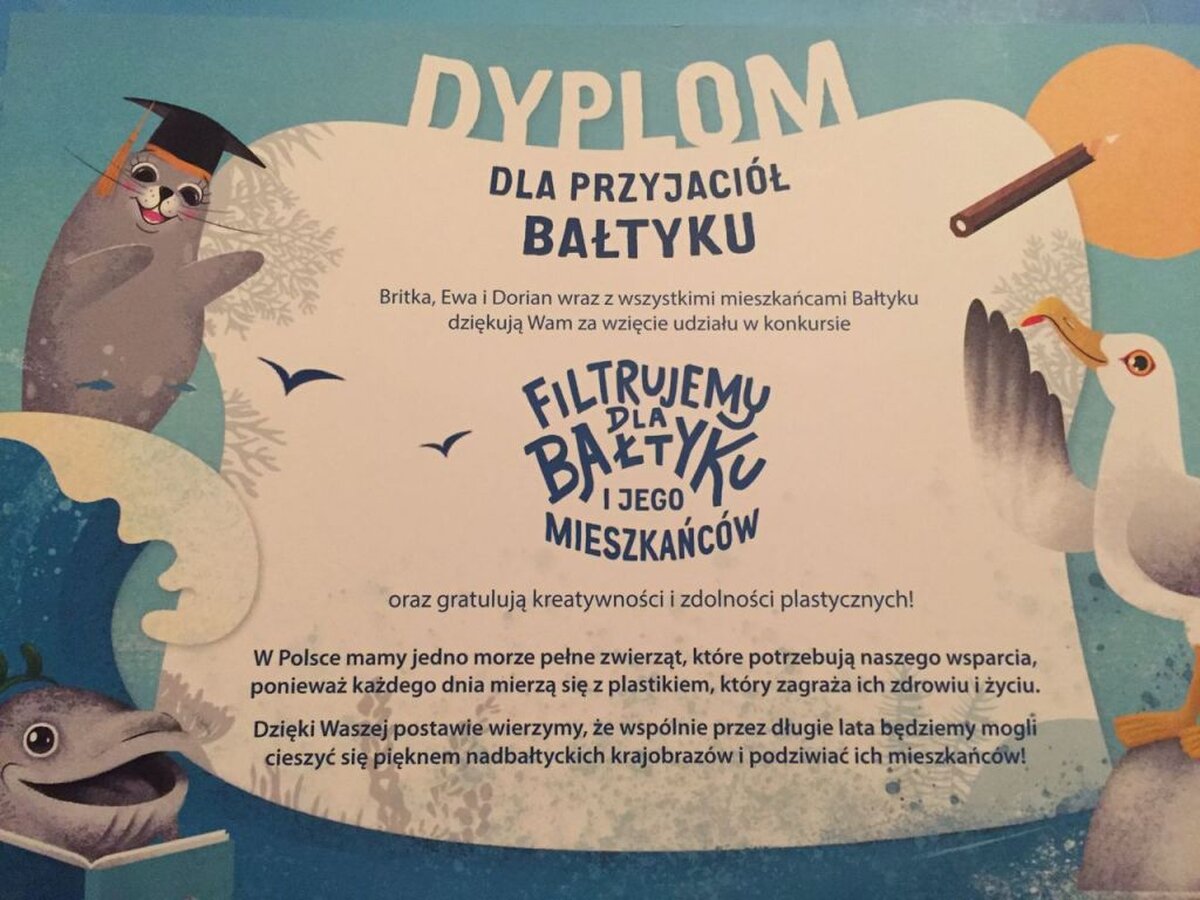 Na zakończenie akcji uczniowie otrzymali Dyplom Przyjaciół Bałtyku i zgodnie przyznali, że udział w konkursie był cennym i integrującym doświadczeniem.