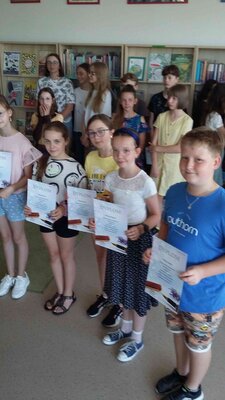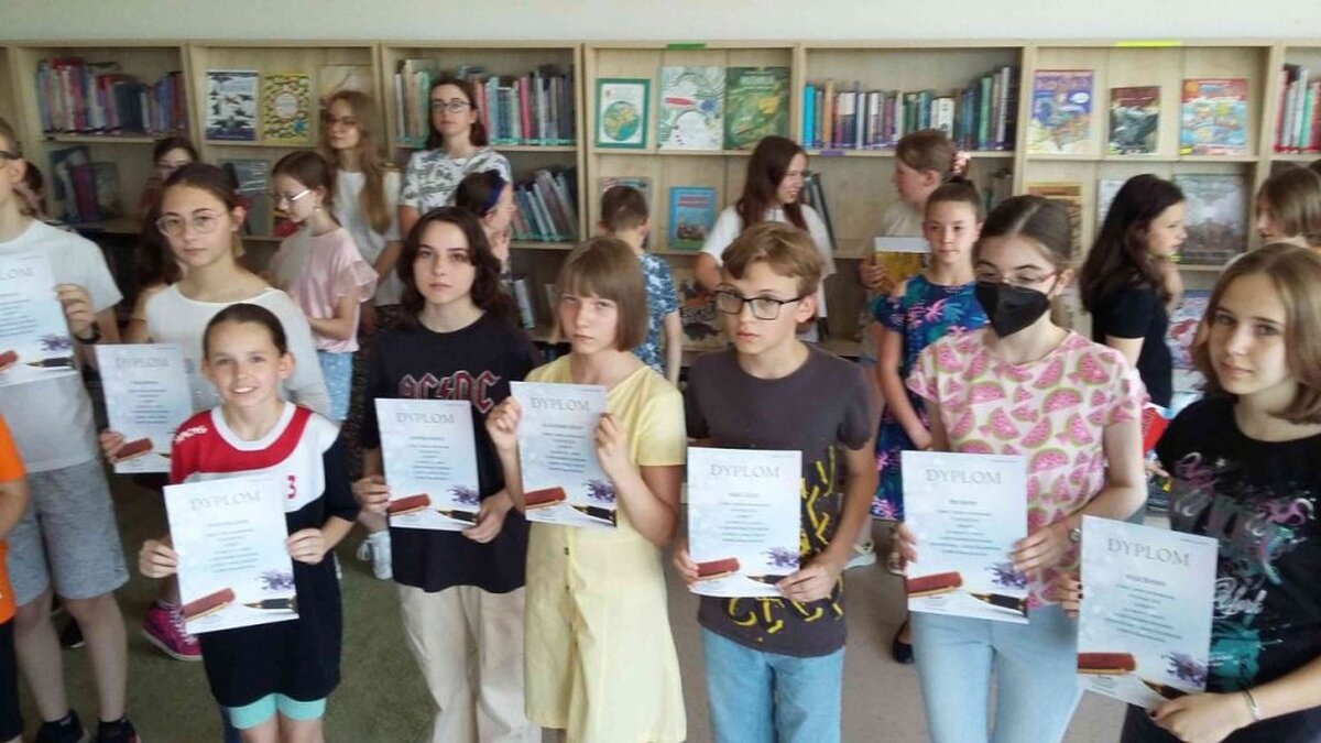20 czerwca odbyło się uroczyste wręczenie dyplomów i nagród książkowych dla laureatów wiosennej sesji Ogólnopolskich Olimpiad Przedmiotowych Olimpus. Spotkanie w szkolnej czytelni w miłej i prawie wakacyjnej już atmosferze poprowadziła Pani Dyrektor, gratulując wszystkim wyróżnionym uczniom wiedzy, talentu i ciężkiej pracy.
