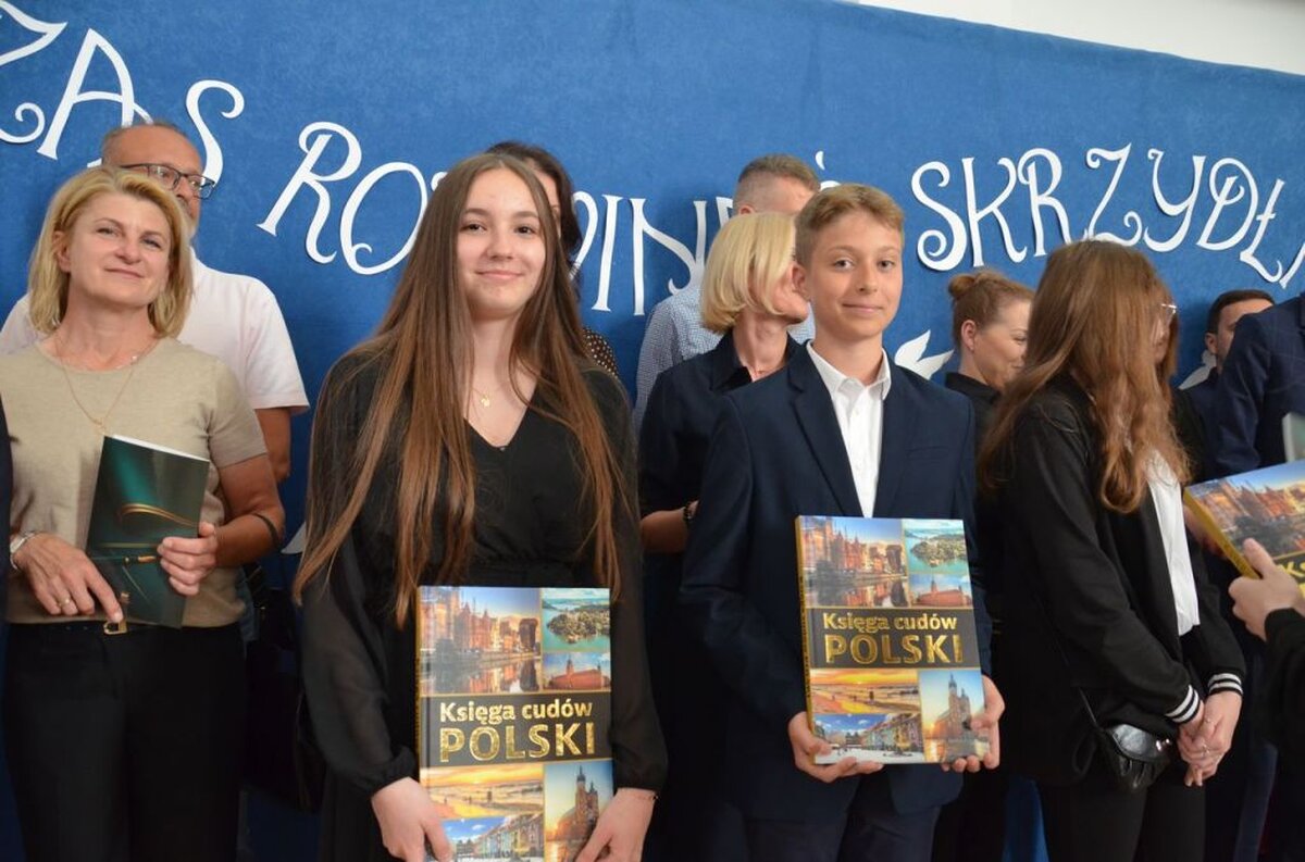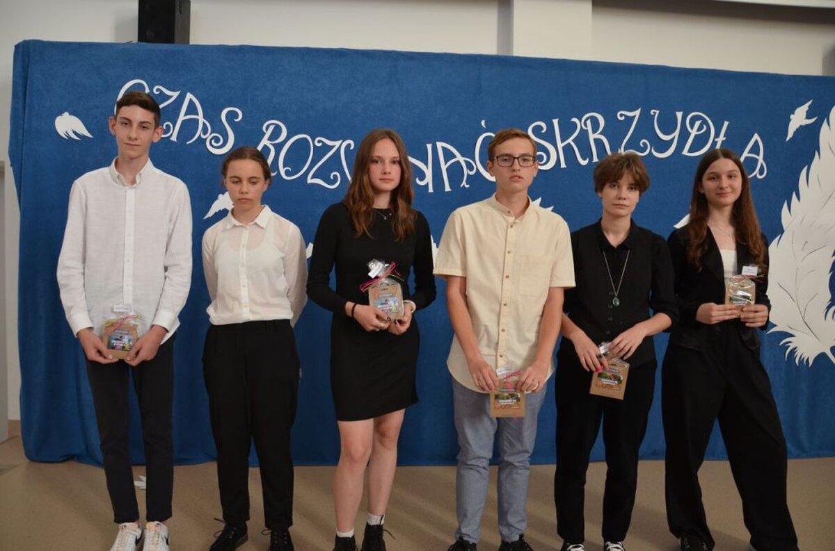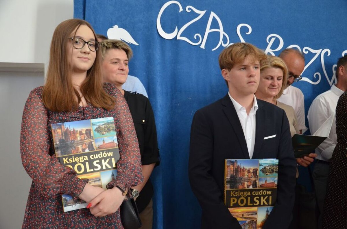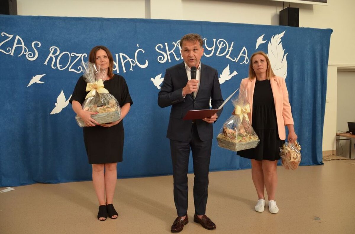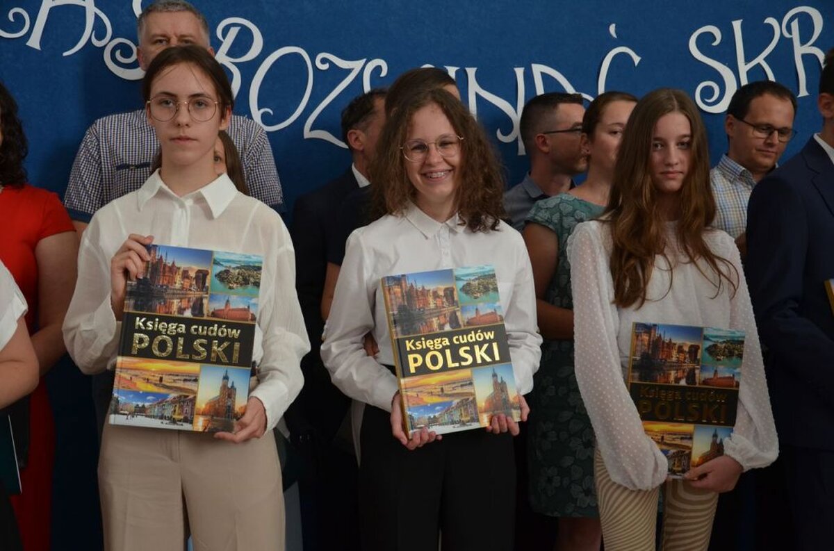Następnie nadszedł moment wręczania dyplomów, wyróżnień i podziękowań dla uczniów oraz ich rodziców. Na scenie pojawili się ci, którzy w ósmej klasie uzyskali najwyższe średnie oraz zdobyli wysokie miejsca w konkursach przedmiotowych, artystycznych i sportowych.