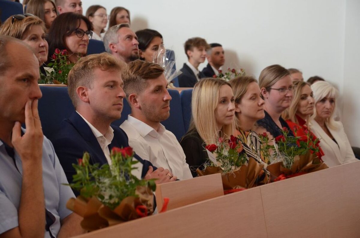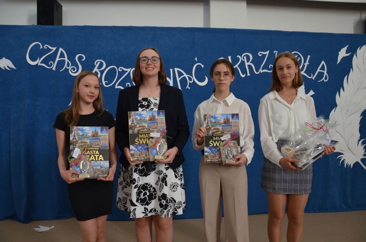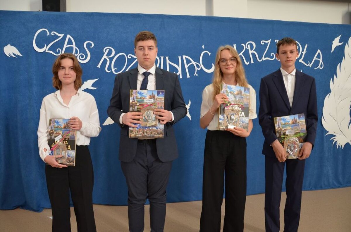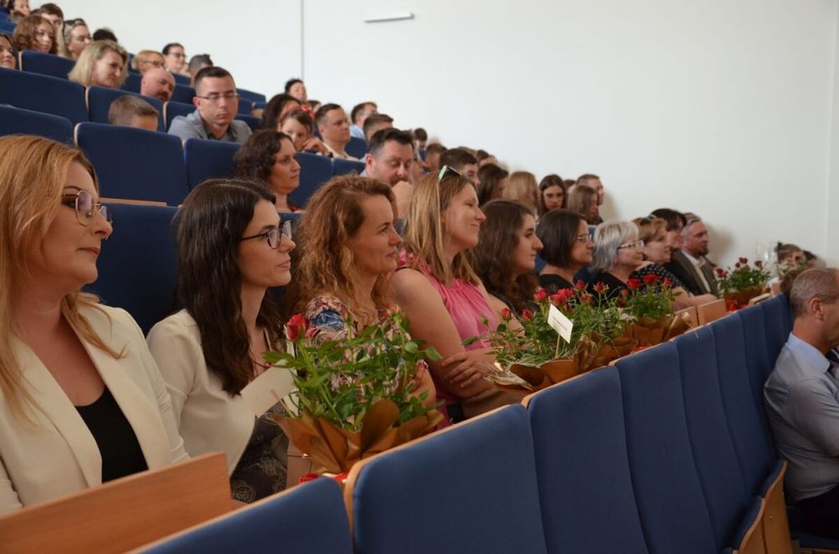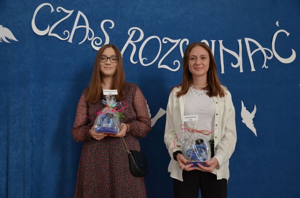 Następnie nadszedł moment wręczania dyplomów, wyróżnień i podziękowań dla uczniów oraz ich rodziców. Na scenie pojawili się ci, którzy w ósmej klasie uzyskali najwyższe średnie oraz zdobyli wysokie miejsca w konkursach przedmiotowych, artystycznych i sportowych.