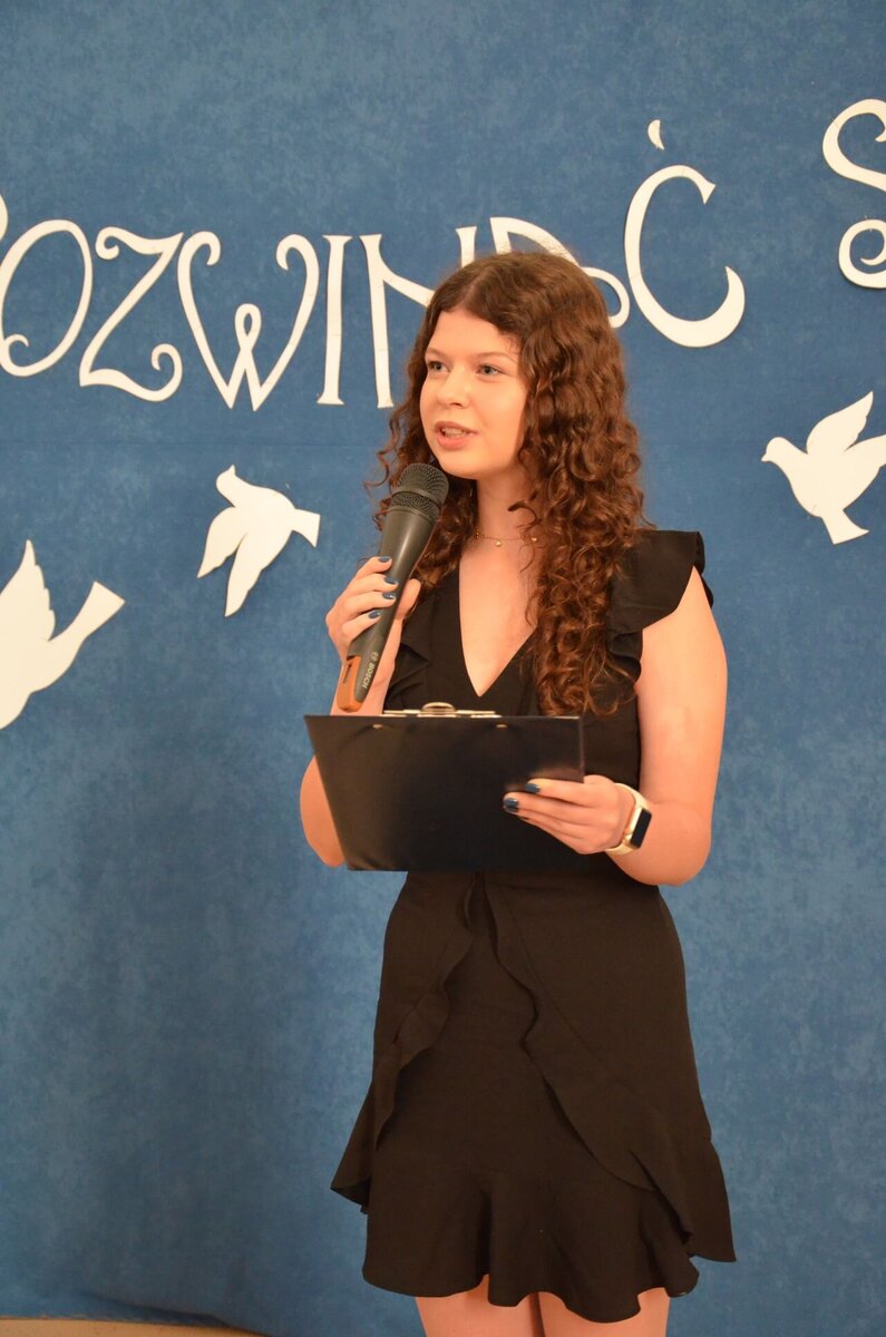 Uroczystość była bardzo wzruszająca. Na początku Pani Dyrektor przemówiła do zebranych; pogratulowała rodzicom wspaniałych dzieci, a uczniom przypomniała o ostatnich latach nauki i zauważyła, jak bardzo dojrzali psychicznie i fizycznie na przestrzeni lat.