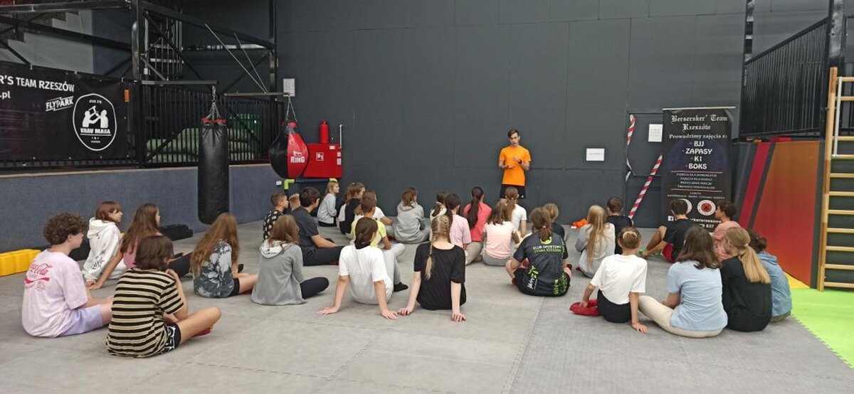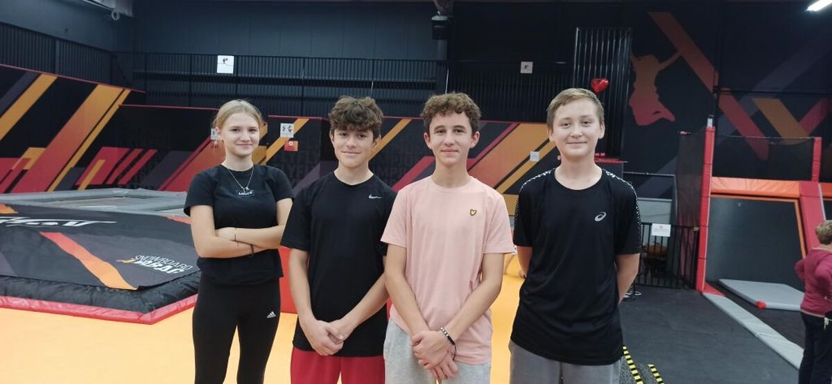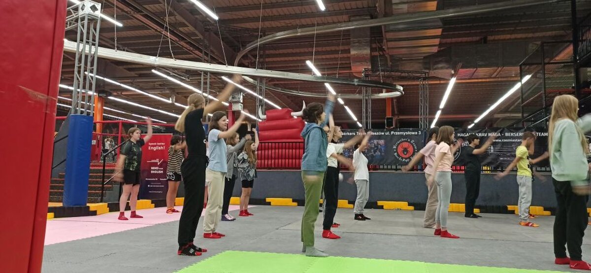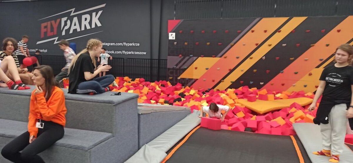 Uczniowie, po wspólnej rozgrzewce z instruktorami obiektu, przez 2 godziny korzystali z różnych atrakcji Fly Parku. Szczególnym zainteresowaniem cieszyły się trampoliny, zjeżdżalnie i … worek treningowy.
