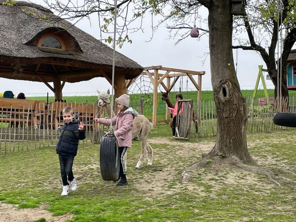 W dniu 24 kwietnia 2024 roku uczniowie klasy 2e mieli okazję uczestniczyć w wycieczce do "Radosnej Zagrody" w Iwierzycach. Dzieci miały okazję bliżej poznać różnorodność świata przyrody poprzez obserwację i interakcję z alpakami oraz innymi zwierzętami hodowlanymi, co przyczyniło się do ich większej świadomości ekologicznej. Uczestnictwo w spotkaniu z alpakami, karmienie zwierząt oraz udział w warsztatach plastycznych na wełnie alpaka pozwoliły dzieciom na bezpośredni kontakt z naturą oraz rozwijanie kreatywności poprzez pracę z naturalnymi materiałami. Ognisko, zabawy na placu zabaw oraz wspólne spacery i przejażdżki konne sprzyjały integracji uczniów, umożliwiając im budowanie więzi i rozwijanie umiejętności społecznych.