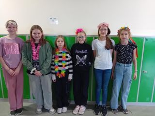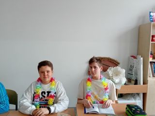 Uczniowie, którzy założyli jeden atrybut: kwiaty we włosach, koszula w kwiaty bądź naszyjnik hawajski zostali zwolniony z kartkówek pisania, pytania i zadań domowych sprawdzania. Było warto! A oto fotorelacja :).