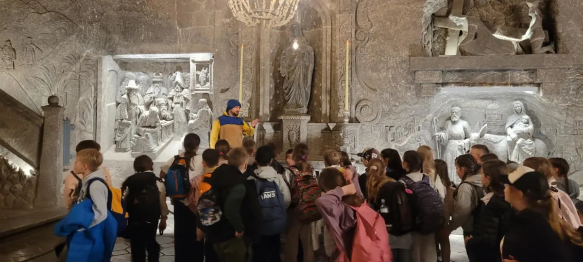 Dnia 17 kwietnia 2025r. odbyła się wyczekiwana przez uczniów klas 3d oraz 3e wycieczka Wieliczki, słynnej kopalni soli wpisanej na Listę Światowego Dziedzictwa UNESCO. Celem wycieczki było poznanie historii i metod wydobycia soli, a także podziwianie unikalnych podziemnych komnat i kaplic.
