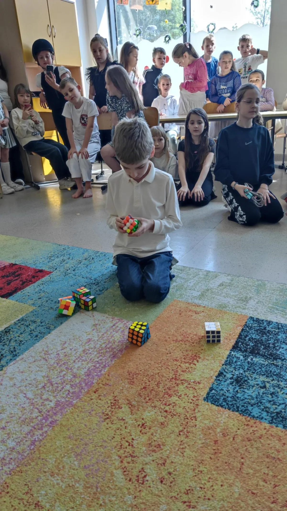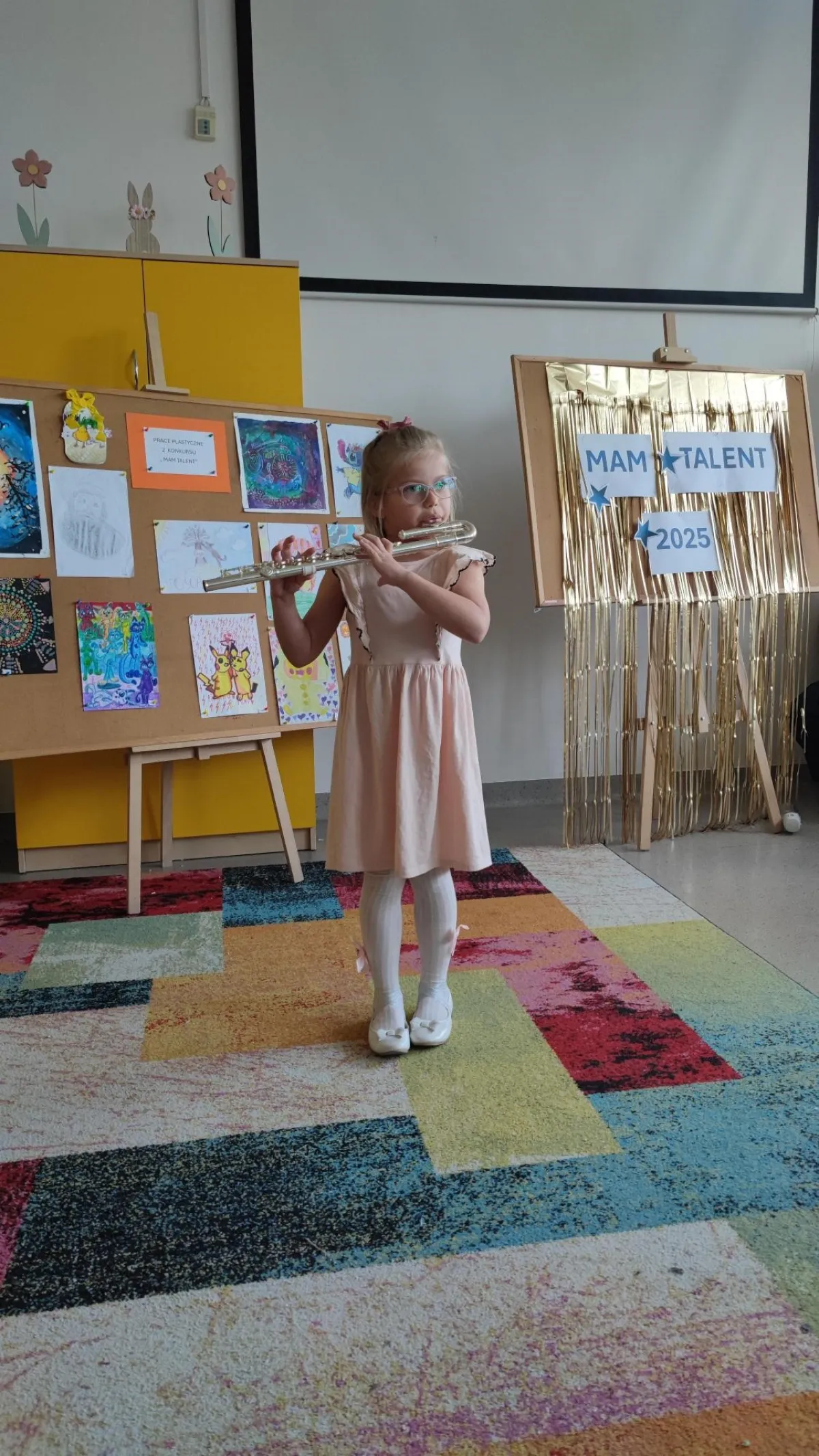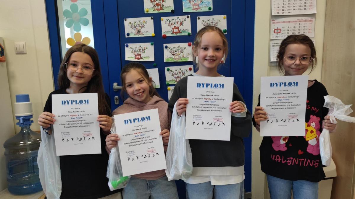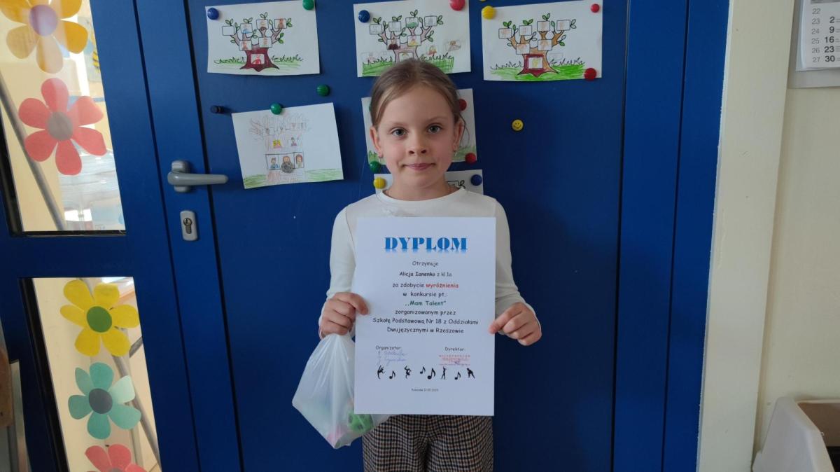 W dniu 7 maja 2025r. odbyła się kolejna już edycja konkursu pt. Mam Talent dla uczniów klas 1-3. Mali artyści prezentowali swoje pasje i zainteresowania w świetlicy szkolnej. Konkurs zgromadził 60 uczestników oraz duże grono żywo oklaskującej ich widowni. Konkurs miał na celu odkrywanie nowych talentów w środowisku szkolnym oraz rozwijanie kreatywności uczniów. Uczestnicy zaprezentowali się w tańcu, śpiewie, plastyce, grze na flecie, układaniu kostki Rubika. Wszyscy wykonawcy mimo małej tremy pięknie pokazali swoje uzdolnienia i hobby. Gościnnie podczas konkursu zatańczyły laureatki poprzednich edycji, obecnie uczennice klasy 5c - Jagoda, Milena i Estera.