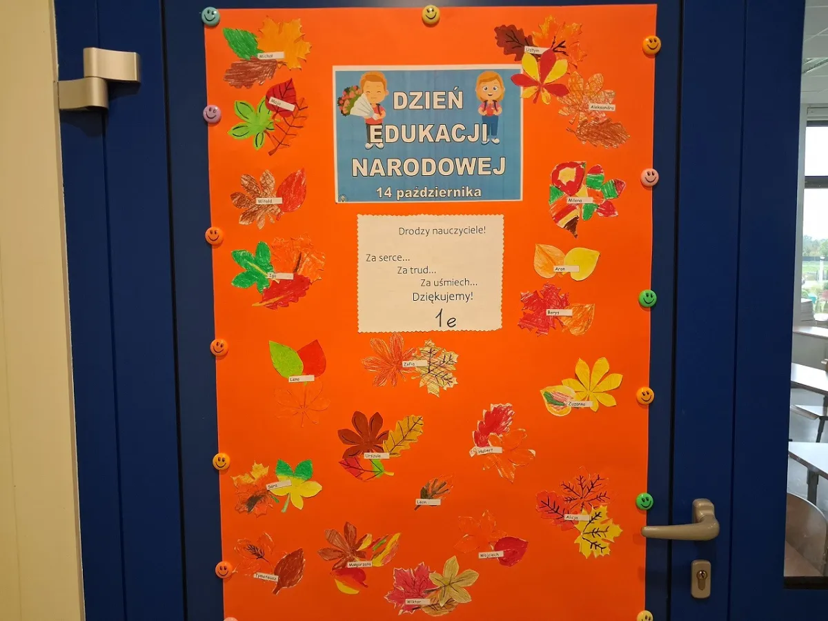 Warto podkreślić, że nie tylko starsze dzieci pracowały nad dekoracjami. Uczniowie klas 1-3 przez kilka dni przygotowywali piękne, powiększone laurki w jesiennych kolorach z życzeniami i podziękowaniami, które stały się ozdobą szkolnych korytarzy. Wykazali się oni dużą kreatywnością. Nie zabrakło przy tej okazji radości, śpiewu i zabawy. Oby ta atmosfera pozostała z nami jak najdłużej…