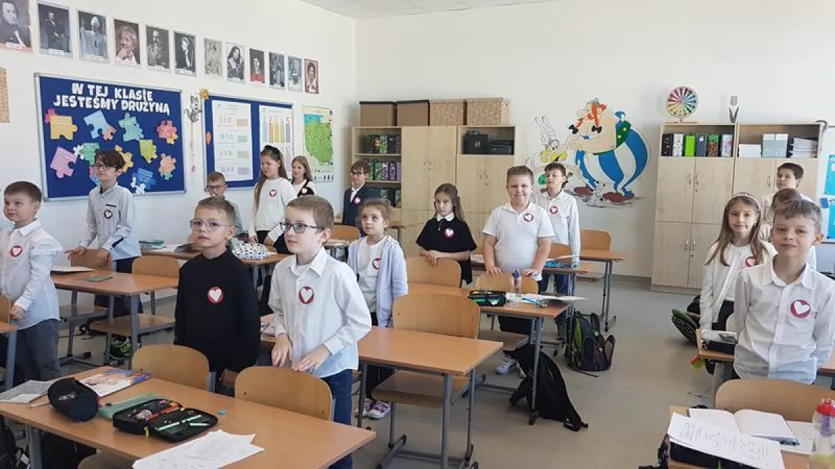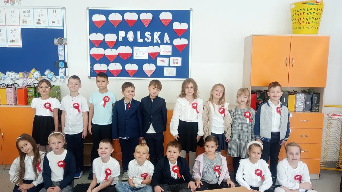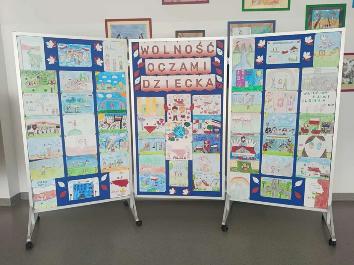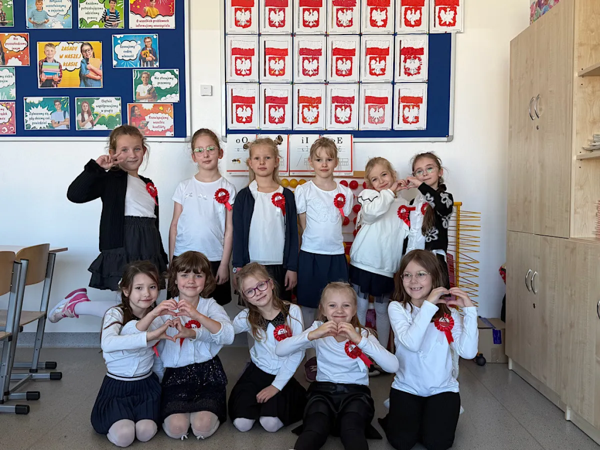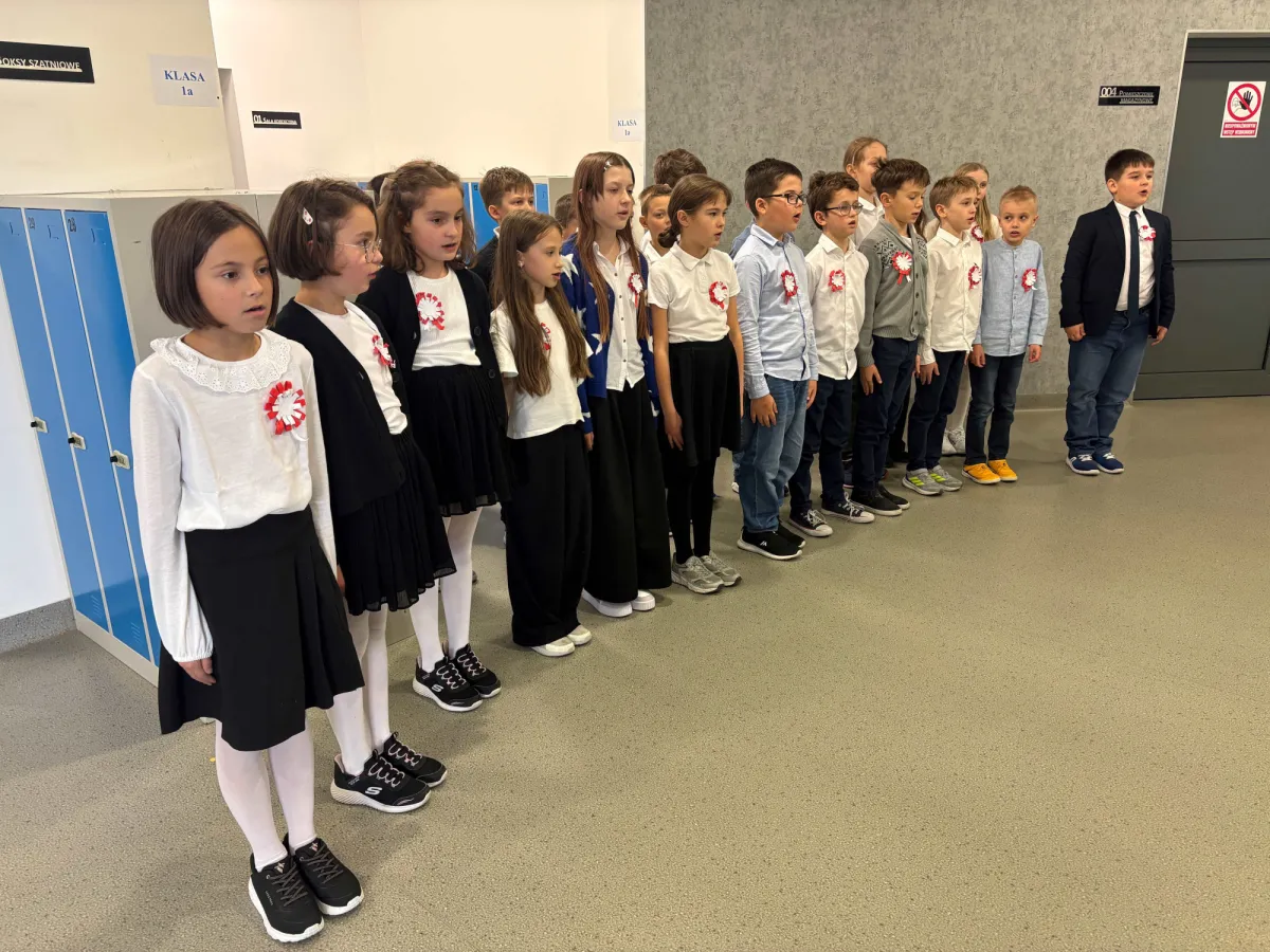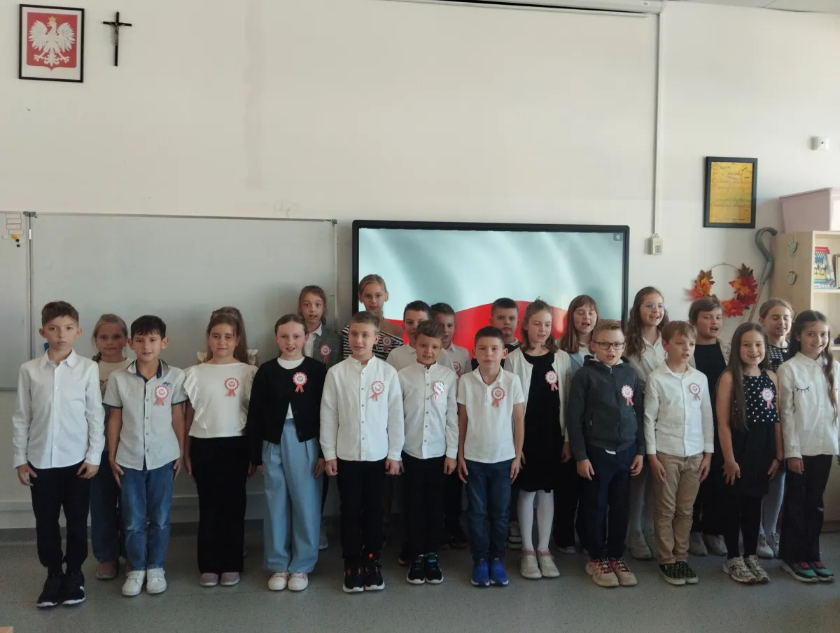 W piątek, 7 listopada, uczniowie klas 1–3 edukacji wczesnoszkolnej wzięli udział w uroczystych obchodach Narodowego Święta Niepodległości. Dzień upłynął w atmosferze radości i patriotyzmu. Uczniowie dumnie prezentowali biało-czerwone kotyliony przypięte do galowych strojów. W klasach odbyły się zajęcia poświęcone historii odzyskania przez Polskę niepodległości – uczniowie poznawali symbole narodowe, rozmawiali o znaczeniu wolności i bohaterstwie naszych przodków. O godzinie 11:11 cała społeczność szkolna włączyła się we wspólne odśpiewanie hymnu narodowego, uczestnicząc w akcji „Szkoła do hymnu”. Był to wyjątkowy moment jedności. W ramach zajęć plastycznych uczniowie wykonali prace pod hasłem „Wolność oczami Dziecka”. Dzieła uczniów zostały zaprezentowane na wystawie szkolnym holu, tworząc piękną galerię, która przypomina o wartościach, jakie niesie ze sobą niepodległość. To wyjątkowe wydarzenie było piękną lekcją historii, patriotyzmu i wspólnego świętowania w duchu miłości do Ojczyzny.