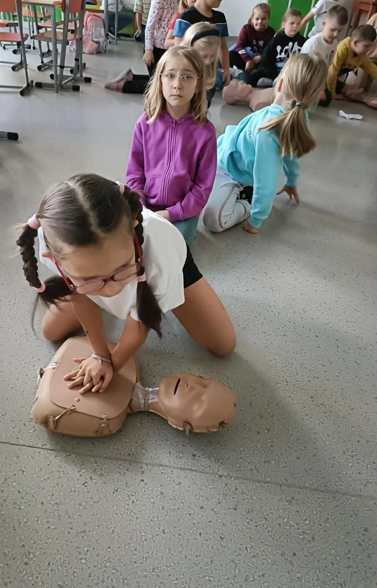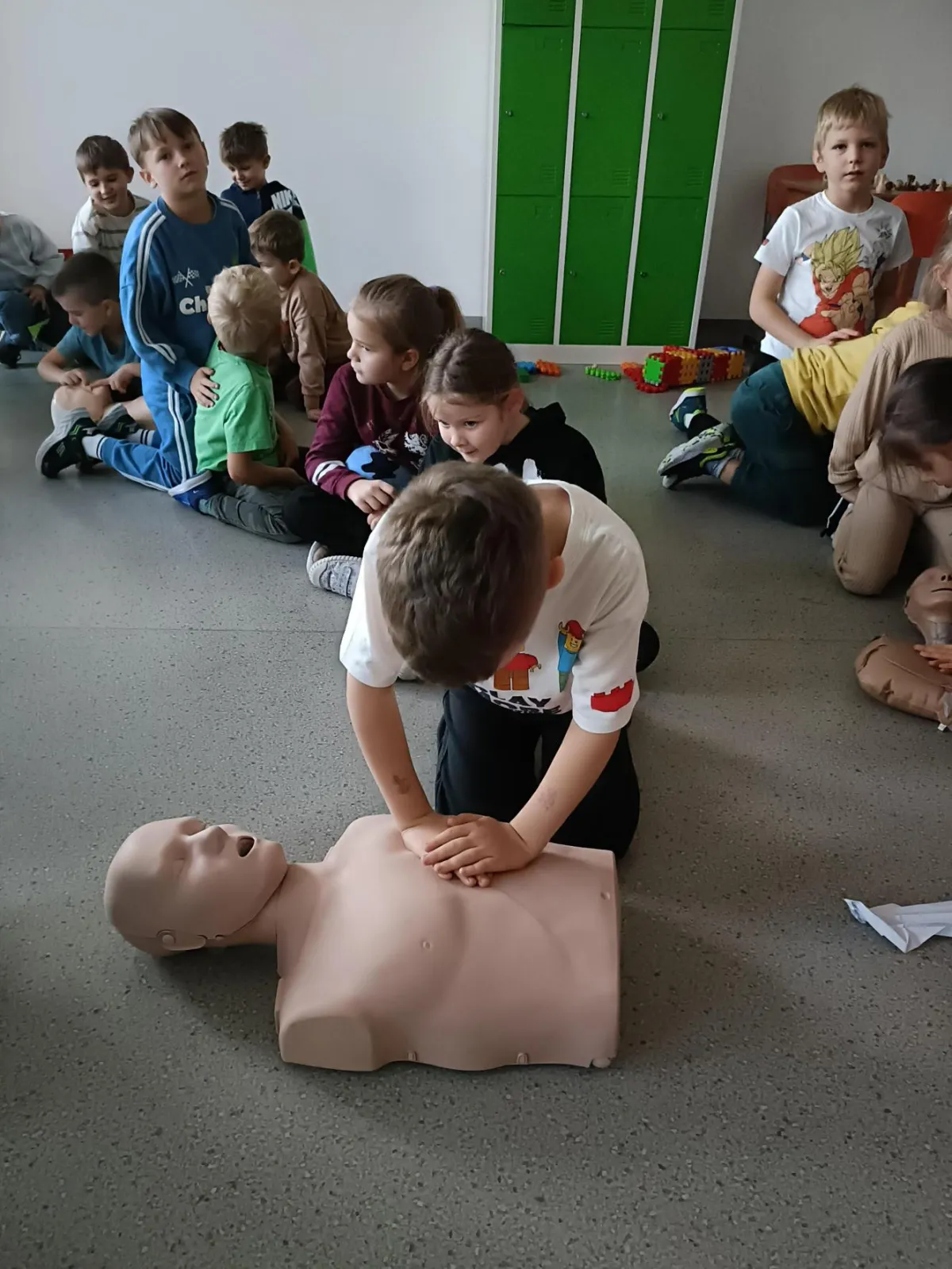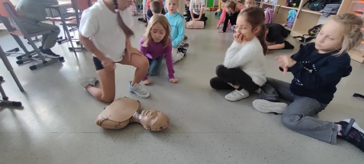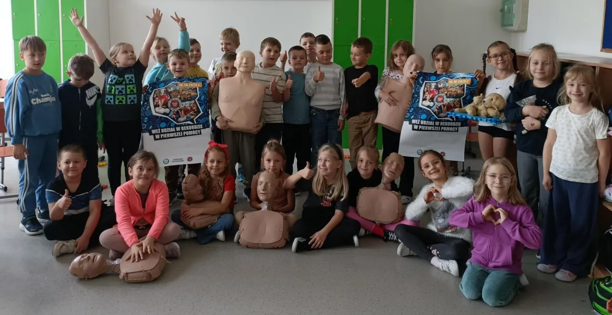 W Europejski Dzień Przywracania Czynności Serca, nasza szkoła po raz kolejny przystąpiła do akcji bicia rekordu w prowadzeniu resuscytacji krążeniowo-oddechowej, organizowanej przez WOŚP. Akcja jest częścią Programu Edukacyjnego „Ratujemy i Uczymy Ratować”, której celem jest nauka podstaw udzielania pierwszej pomocy wśród najmłodszych. Nasi najmłodsi uczyli się, jak ratować ludzkie życie… była nauka, pokaz, mnóstwo emocji i dobra zabawa.