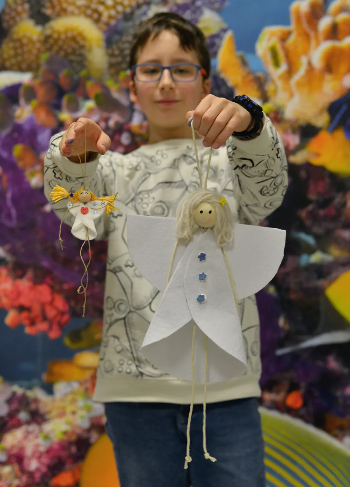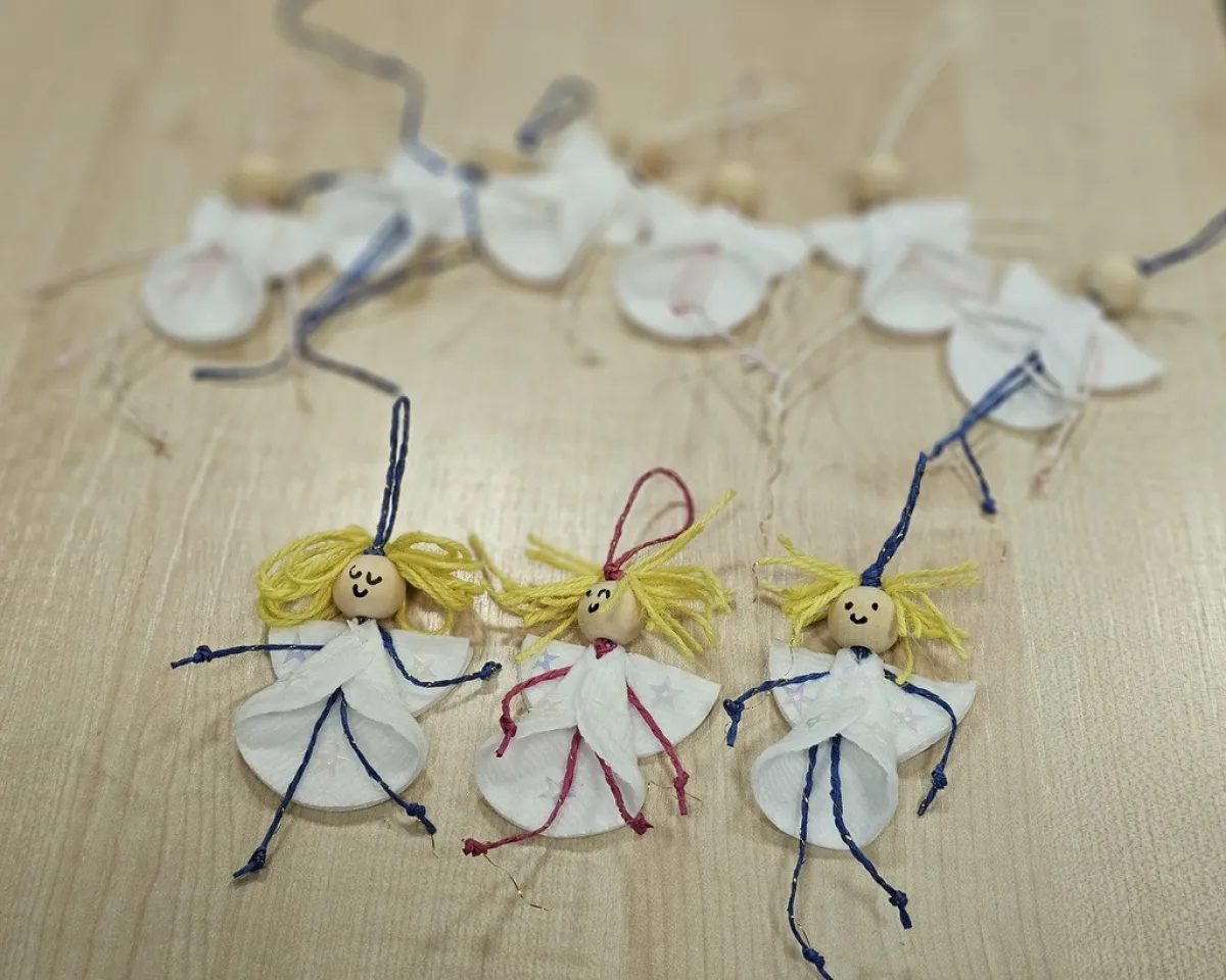 W pierwszych dniach grudnia w naszej szkole odbyły się Rodzinne Warsztaty Bożonarodzeniowe zorganizowane przez Klub Kulturka. Tematem tegorocznych zajęć były aniołki na choinkę. Wykonywaliśmy je ze sznurków, włóczki, wacików kosmetycznych, filcu i różnych błyszczących dodatków.