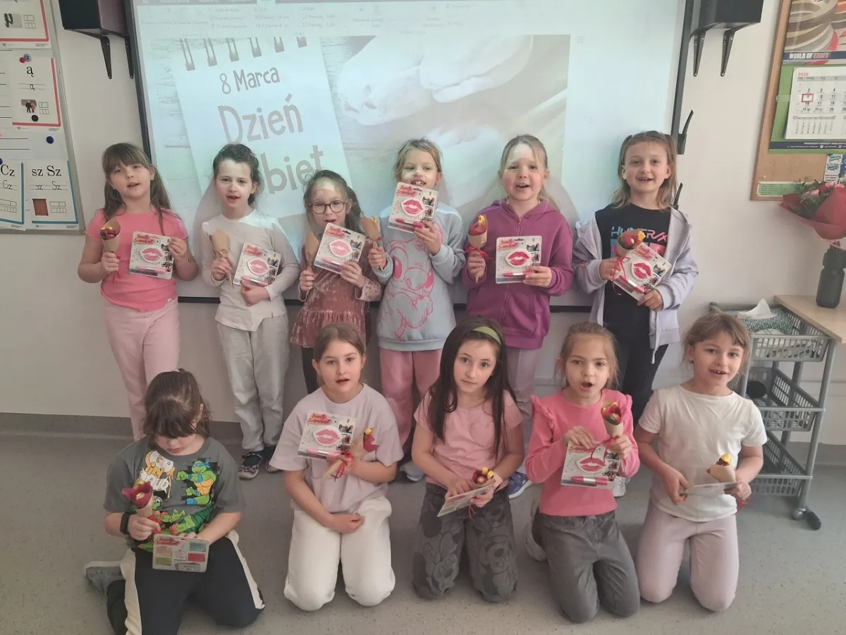 9 marca w naszej szkole obchodziliśmy Dzień Kobiet. Z tej okazji chłopcy złożyli dziewczynkom i paniom serdeczne życzenia oraz wręczyli drobne upominki i kwiaty. W klasach panowała miła i radosna atmosfera. Był to dzień pełen uśmiechu, życzliwości i wspólnego świętowania, który przypomniał wszystkim, jak ważny jest szacunek i uprzejmość wobec innych.