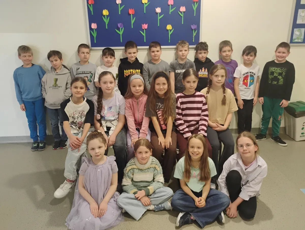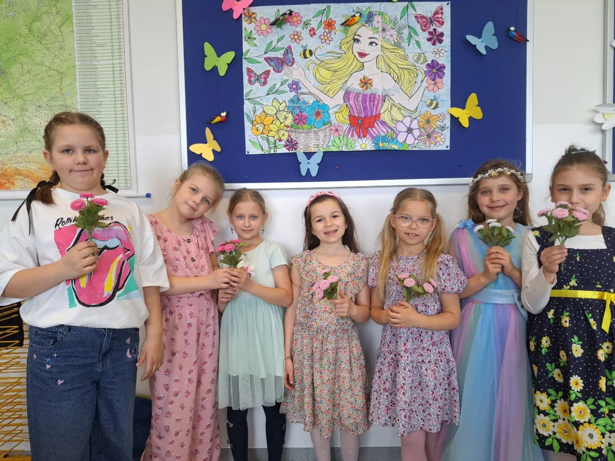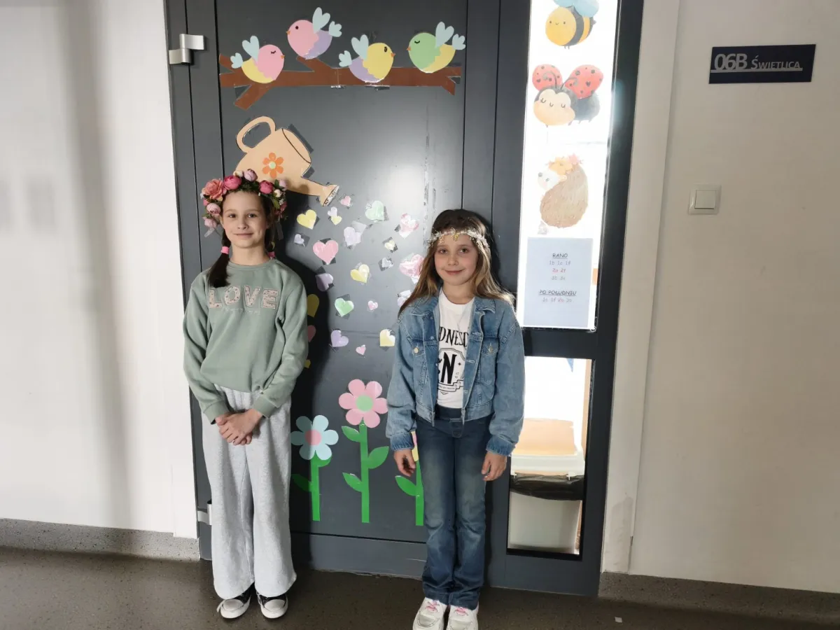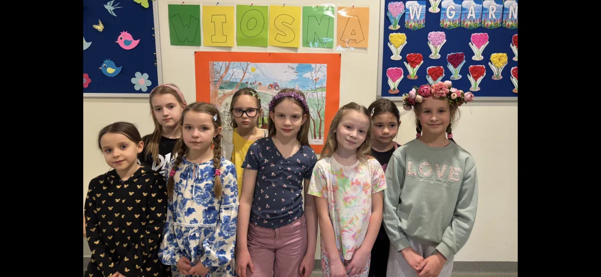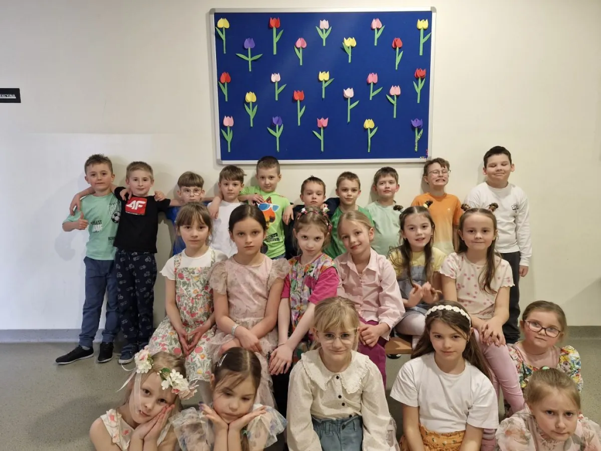 Dnia 20 marca uczniowie klas 1–3 radośnie powitali długo wyczekiwaną wiosnę. Każda klasa przygotowała piękne wiosenne dekoracje – plakaty, wianki oraz kolorowanki XXL przedstawiające Panią Wiosnę. Prace te ozdobiły drzwi sal lekcyjnych, wprowadzając wszystkich w radosny, wiosenny nastrój. Uczniowie przyszli do szkoły ubrani w wiosennym stylu – dominowały barwne stroje oraz dodatki nawiązujące do tej pory roku, takie jak kwiaty, motyle czy promienie słońca. Dzięki temu szkolne korytarze rozkwitły feerią kolorów. W ramach obchodów odbył się również klasowy pokaz „wiosennej mody”, podczas którego dzieci z dumą prezentowały swoje stroje. Nie zabrakło także spacerów w poszukiwaniu pierwszych oznak wiosny, wspólnych tańców przy wiosennych piosenkach oraz oglądania edukacyjnych filmików o tej pięknej porze roku.