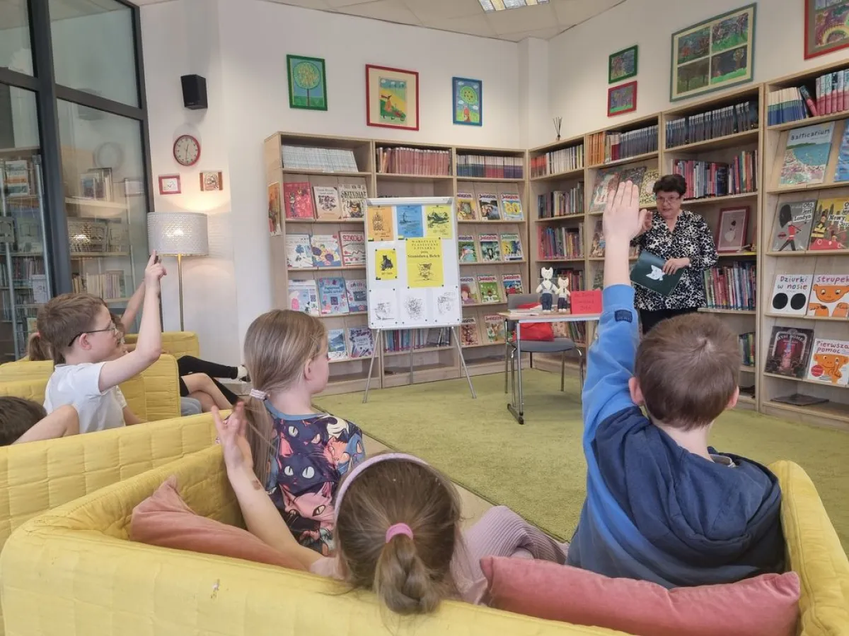 W marcu i w kwietniu w naszej szkolnej czytelni odbyły się „Kocie warsztaty z pisarką”. Poprowadziła je autorka książek dla dzieci pani Stanisława Bełch. W pierwszej części zajęć opowiadała uczniom o Snipie i Kociu. Te dwa rezolutne koty przeżywają wiele ciekawych przygód, a przy okazji uczą się poznawać świat wokół siebie. Dzieci słuchały o ich przygodach w górach, nad morzem i o zwiedzaniu Rzeszowa.