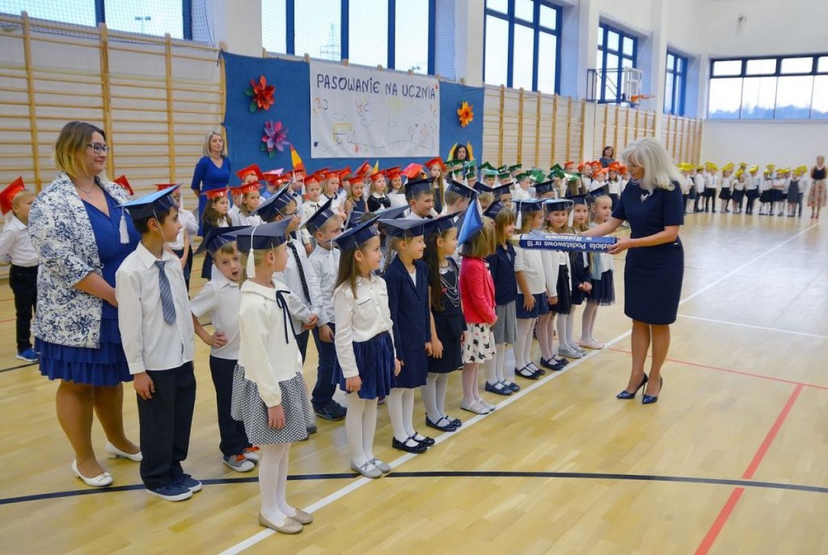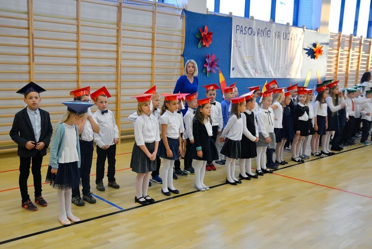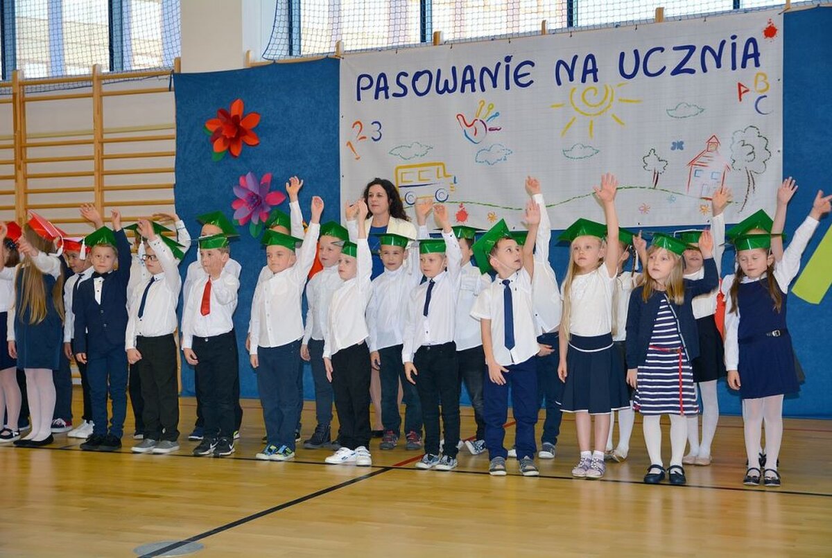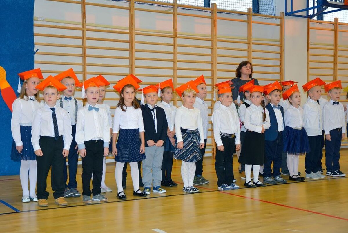 Dnia 19 października 2017r. w szkole odbyła się uroczystość „Pasowania na ucznia”. O godz. 17.00 do sali gimnastycznej z powagą wkroczyli pierwszoklasiści, ubrani w galowe stroje i kolorowe birety. Po przywitaniu przez starszych kolegów z przejęciem recytowali wiersze i śpiewali piosenki. Po części artystycznej uczniowie pewnie odpowiadali na pytania zadawane przez Panią Dyrektor. Następnie przyszedł czas na podniosły moment – pasowanie. Pierwszoklasiści ślubowali „(…) być dobrym Polakiem, dbać o dobre imię swojej klasy i szkoły.(…)”. Po złożeniu przyrzeczenia tradycyjnie każdy pierwszak został pasowany na ucznia przez Panią Dyrektor symbolicznym ołówkiem. Główna część uroczystości zakończyła się pamiątkowymi zdjęciami. Następnie uczniowie w radosnym nastroju udali się do sal, gdzie czekał na nich słodki poczęstunek. Z rąk wychowawców otrzymali dyplomy i drobne upominki. To był dzień pełen wrażeń. Wszystkim pierwszakom oraz ich rodzicom życzymy wspaniałych osiągnięć i licznych sukcesów.