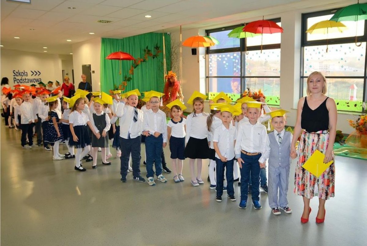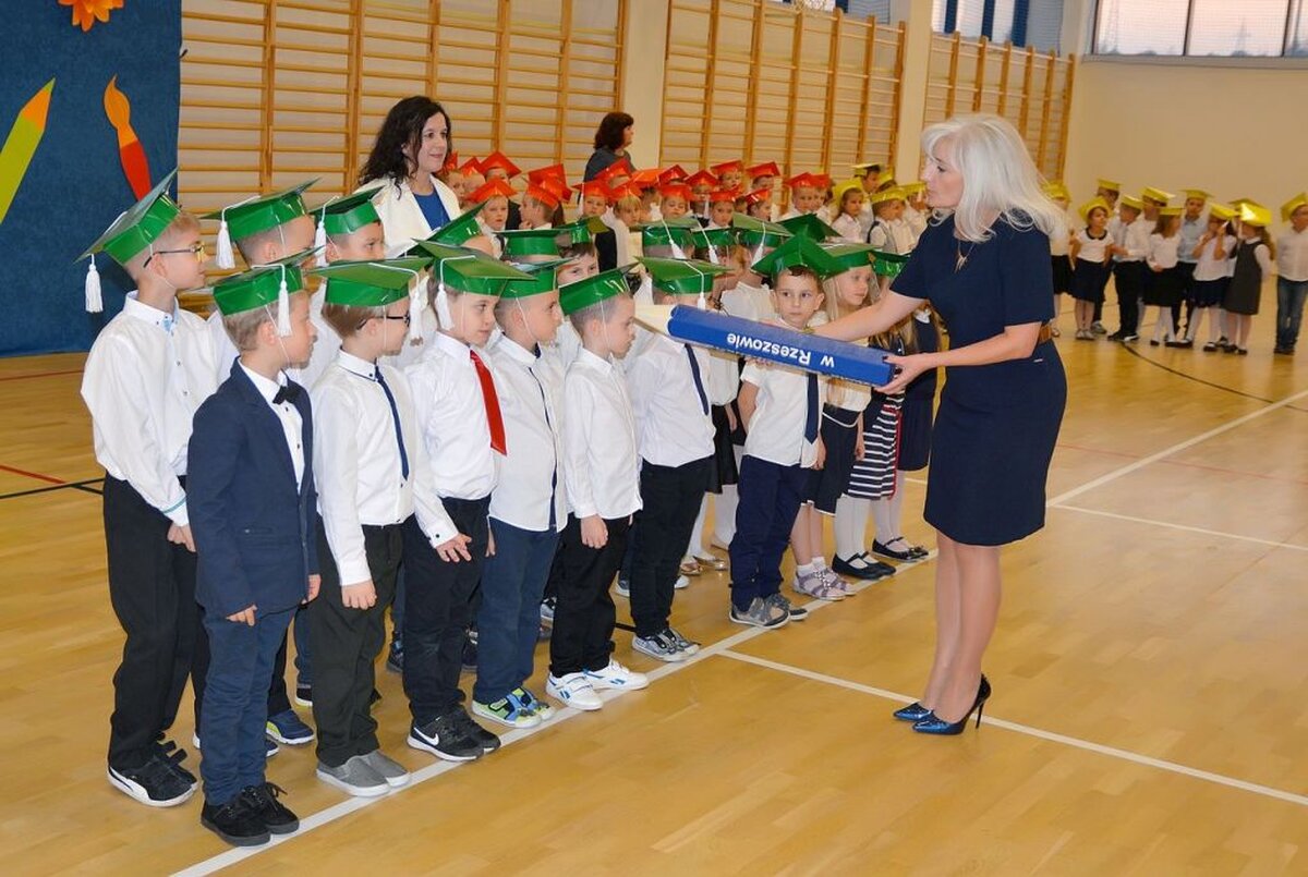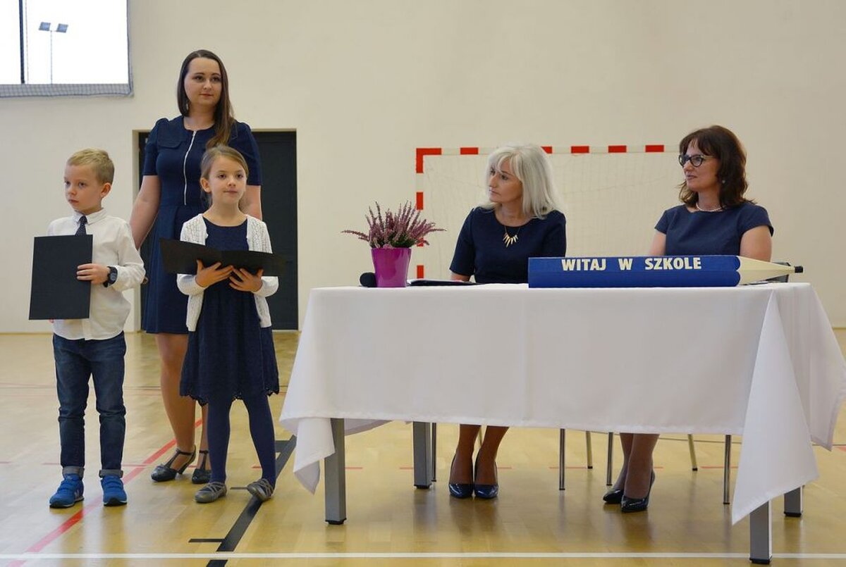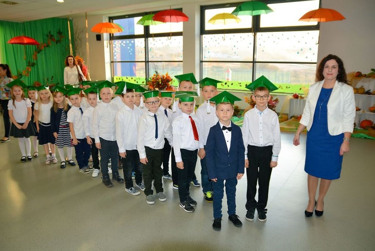 Dnia 19 października 2017r. w szkole odbyła się uroczystość „Pasowania na ucznia”. O godz. 17.00 do sali gimnastycznej z powagą wkroczyli pierwszoklasiści, ubrani w galowe stroje i kolorowe birety. Po przywitaniu przez starszych kolegów z przejęciem recytowali wiersze i śpiewali piosenki. Po części artystycznej uczniowie pewnie odpowiadali na pytania zadawane przez Panią Dyrektor. Następnie przyszedł czas na podniosły moment – pasowanie. Pierwszoklasiści ślubowali „(…) być dobrym Polakiem, dbać o dobre imię swojej klasy i szkoły.(…)”. Po złożeniu przyrzeczenia tradycyjnie każdy pierwszak został pasowany na ucznia przez Panią Dyrektor symbolicznym ołówkiem. Główna część uroczystości zakończyła się pamiątkowymi zdjęciami. Następnie uczniowie w radosnym nastroju udali się do sal, gdzie czekał na nich słodki poczęstunek. Z rąk wychowawców otrzymali dyplomy i drobne upominki. To był dzień pełen wrażeń. Wszystkim pierwszakom oraz ich rodzicom życzymy wspaniałych osiągnięć i licznych sukcesów.