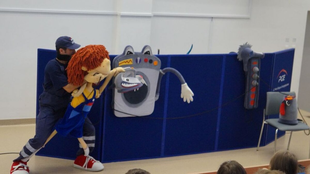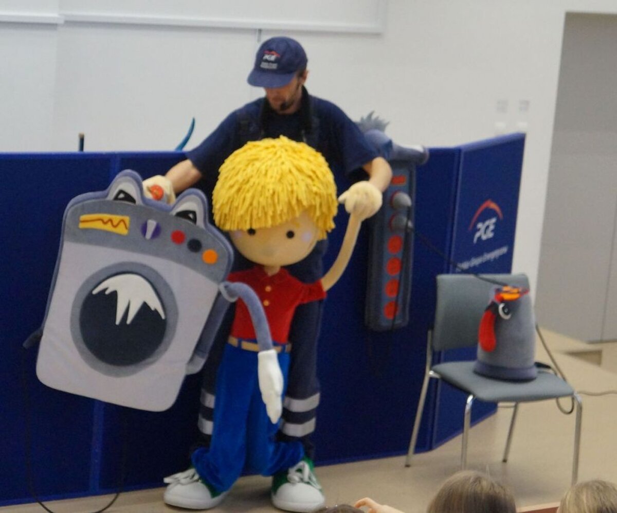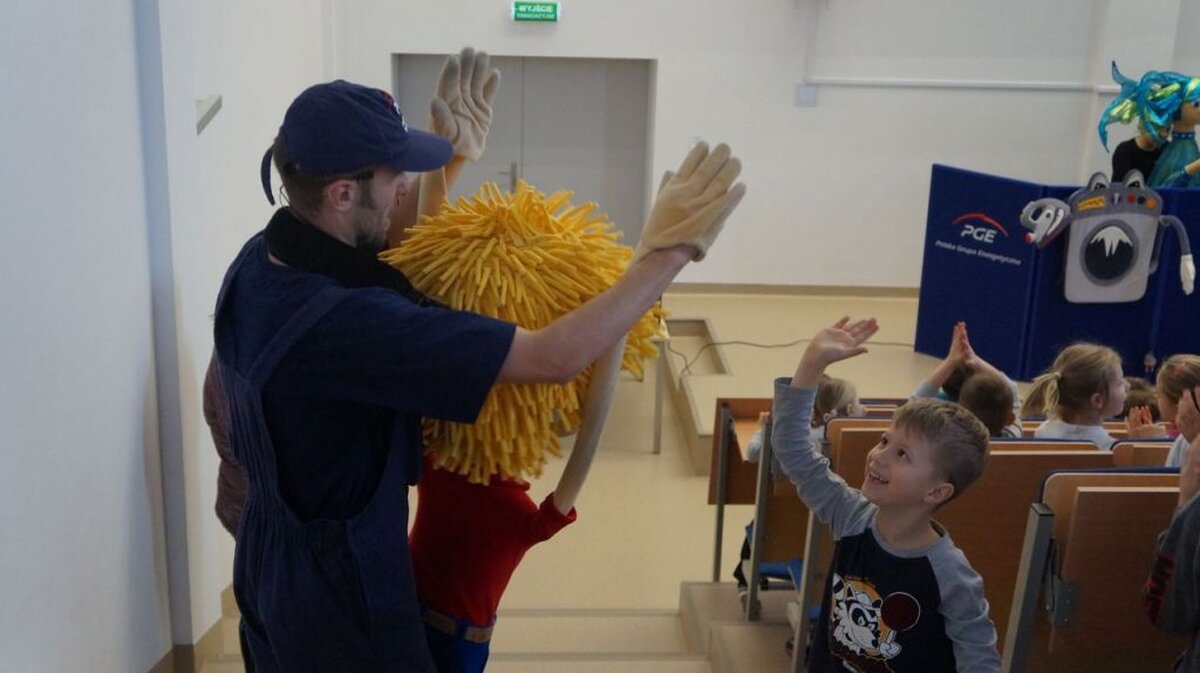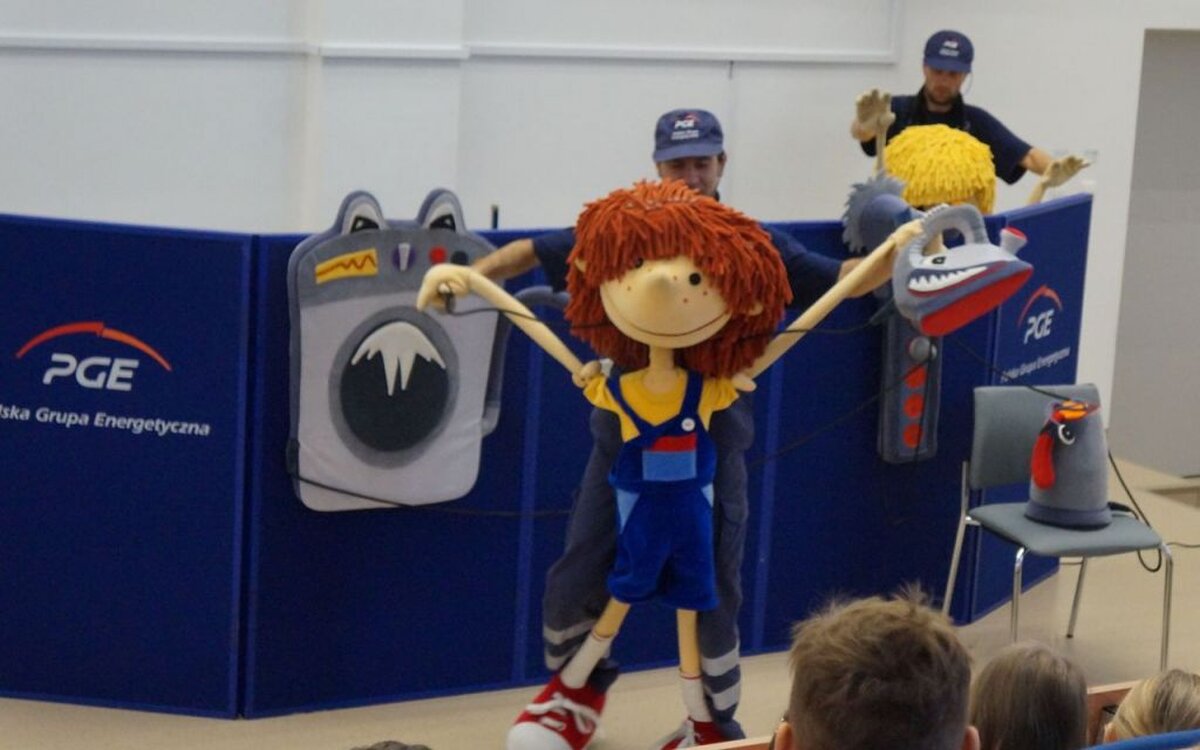 Dnia 05.12.2017 uczniowie klas pierwszych obejrzeli teatrzyk pt. „Jak Pstryk i Bzik zostali oświeceni”, który został przedstawiony przez aktorów Teatru PGE. Dzieci śledząc losy wróżki Energuszki i dwóch braci Pstryka i Bzika, miały okazję dowiedzieć się jak powstaje prąd. Uczniowie uzyskali odpowiedzi na bardzo ważne pytania, m.in.: Kiedy prąd może być niebezpieczny?, Jak należy się w takich sytuacjach zachować?, Co oznaczają znaki na transformatorach?, W jaki sposób oszczędzać energię elektryczną? Bohaterowie widowiska przypomnieli młodym widzom zasady bezpiecznego korzystania z energii elektrycznej oraz numer alarmowy pogotowia energetycznego 991. Teatrzyk sprawił dzieciom mnóstwo uśmiechu, a widzowie nagrodzili aktorów gromkimi brawami. Kwintesencją przedstawienia było hasło: OSZCZĘDZANIE ENERGII, WYJDZIE ZIEMI NA ZDROWIE.