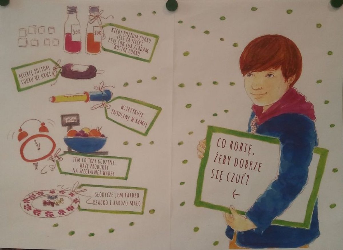 Tym razem wzięli w nim udział uczniowie klasy IV b. Ich starsza koleżanka, Wiktoria, wprowadziła słuchaczy w świat Marka – 5-letniego chłopca, chorego na cukrzycę. Czwartoklasiści z uwagą wysłuchali opowiadania pt. „Cukiereczek”, dowiedzieli się m.in. na czym polega cukrzyca, czy zawsze można jej zapobiec, czym jest insulina, pen, glukometr i pompa insulinowa. Ponadto dowiedzieli się jak rozpoznawać objawy hipo-i hiperglikemii i jak pomóc choremu, u którego wystąpią któreś z niepokojących symptomów. W spotkaniu wzięli udział goście, którzy korzystając ze swojej wiedzy, ale i własnych doświadczeń chętnie odpowiedzieli na wszystkie pytania czwartoklasistów. Ta przygoda z „bajką bez barier” miała na celu uwrażliwić uczniów na zdrowie i potrzeby innych oraz uświadomić, że wokół nas są ludzie, którzy na co dzień zmagają się z cukrzycą. Kropkę nad „i” postawił jeden z uczniów stwierdzeniem: „Nie sądziłem, że jedna bajka, a tak wiele zmienia…”