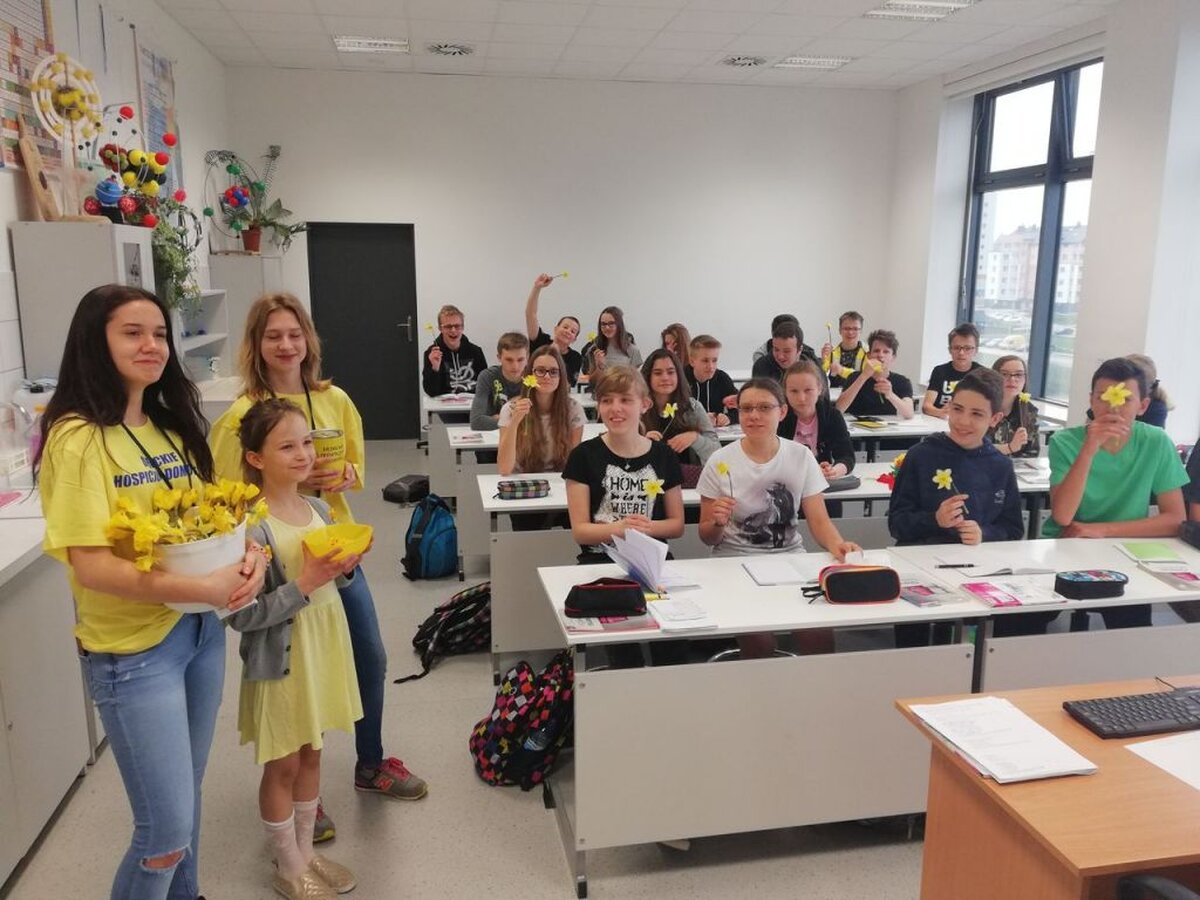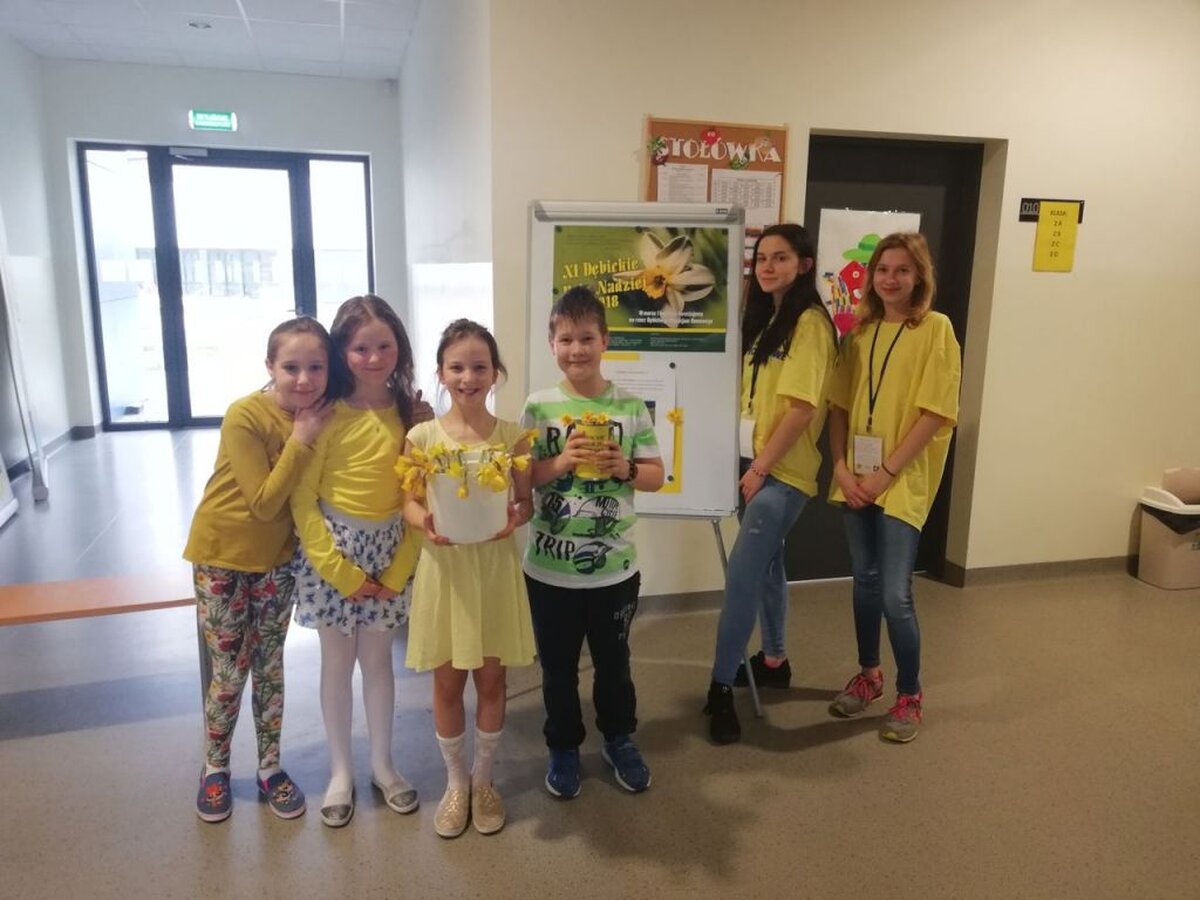 W ramach ogólnopolskiej akcji „Pola Nadziei”, 12 kwietnia 2018 r. w Szkole Podstawowej Nr 18 odbyła się kwesta na rzecz podopiecznych Stowarzyszenia Dębickie Hospicjum Domowe im. Jana Pawła II. Cała społeczność naszej bardzo ochoczo włączyła się w pomoc potrzebujących kupując żonkil – symbol nadziei. Tradycyjnie, żonkile zostały wyhodowane przez uczniów klasy 3c w przyszkolnym ogródku. Do „żonkilowej” akcji zachęcały uczennice drugiej klasy gimnazjum oraz uczniowie klasy 3c.
