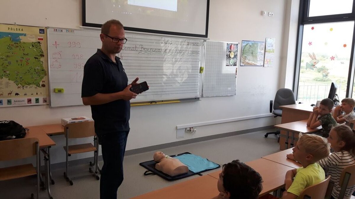 11 i 14 czerwca 2018 r. odbyło się spotkanie z Panem Michałem Kanikiem, który przeprowadził dwugodzinne warsztaty z udzielania pierwszej pomocy. Na początku Pani Michał przybliżył dzieciom teoretyczne podstawy udzielania I pomocy. Uczniowie dowiedzieli się o podstawowych urazach, przypomnieli sobie numery alarmowe, a także mieli okazję zobaczyć jak fachowo udzielać pierwszej pomocy. Podczas drugiej godziny spotkania każde z dzieci mogło samo spróbować resuscytacji krążeniowo-oddechowej na fantomie. Uczniowie przekonali się jak ważna jest ta umiejętność i dzielnie ćwiczyli 30 uciśnięć i 2 wdechy.