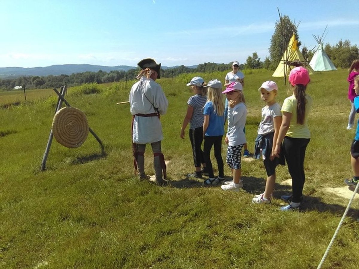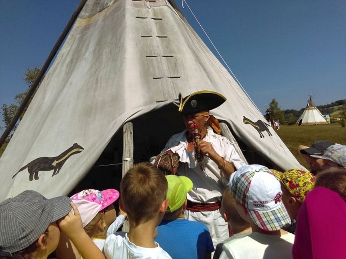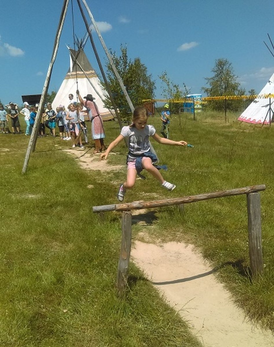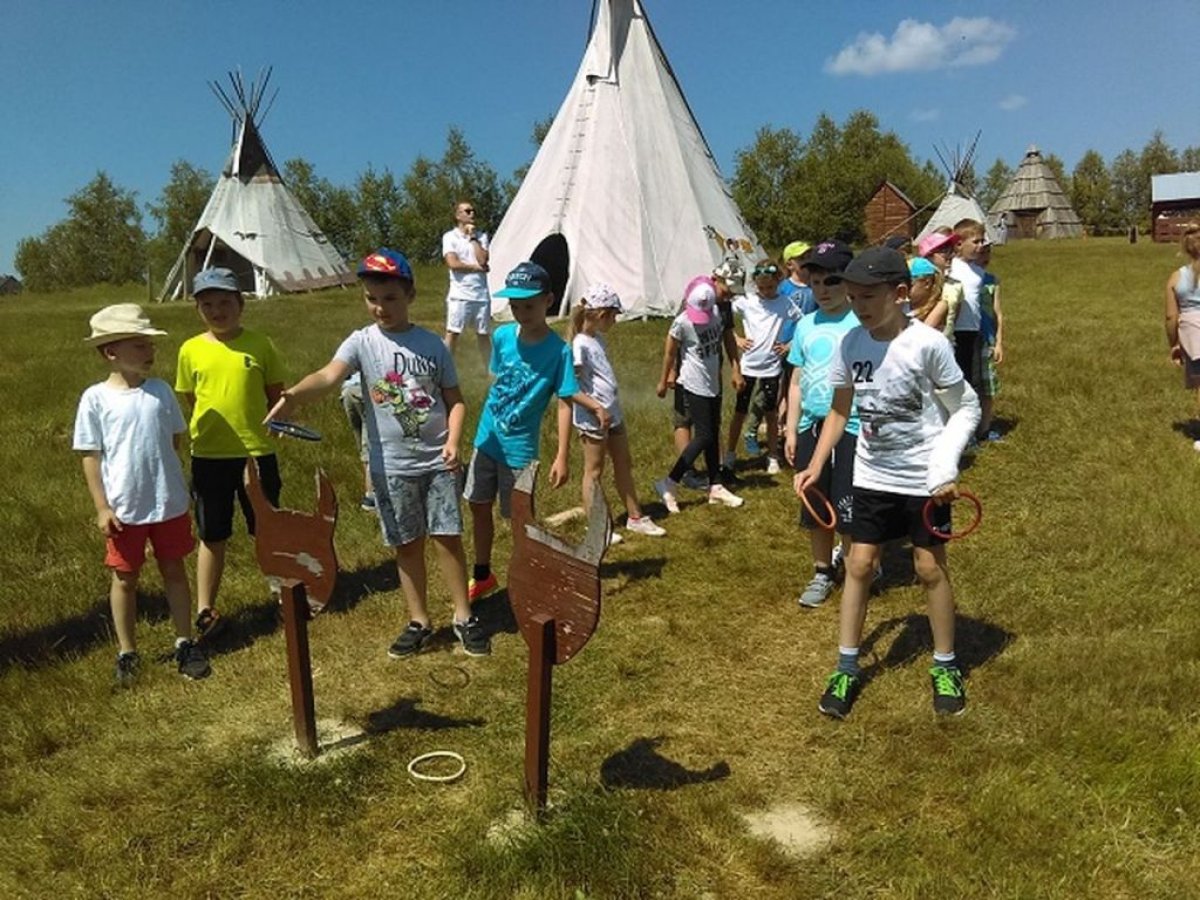 8 czerwca 2018r. uczniowie klas 2a i 2d gościli w wiosce indiańskiej „Fort Watipi” w Zalasowej. Po podróży i krótkim spacerze wśród pięknych widoków, dzieci powitał wódz plemienia, który oprowadził wszystkich po najciekawszych zakątkach wioski. Uczniowie mieli okazję zapoznać się z bronią, strojami, zabawkami oraz przedmiotami codziennego użytku Indian. Poznały ich kulturę, sposoby na zdobywanie pożywienia, narzędzi oraz budowania tipi. Po krótkim zwiedzaniu przyszedł czas na zabawę. Dzieci miały możliwość strzelania z łuku, dmuchawki, rzucania włócznią i strzałami. Łowienie ryb, rzut na bizonie rogi czy wyścigi węży to tylko niektóre z atrakcji. Największym powodzeniem cieszył się indiański tor przeszkód. Był też grill z pyszną kiełbaską. Następnie każdy wykonał indiański naszyjnik z rzemyka i drewnianych koralików oraz pokolorował pamiątkową wilczą łapę. Po wszystkich atrakcjach było malowanie twarzy w piękne indiańskie wzory. Choć wycieczka się już skończyła, wspomnienia pozostaną na zawsze.