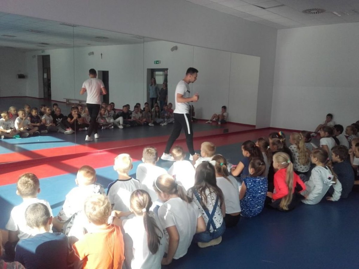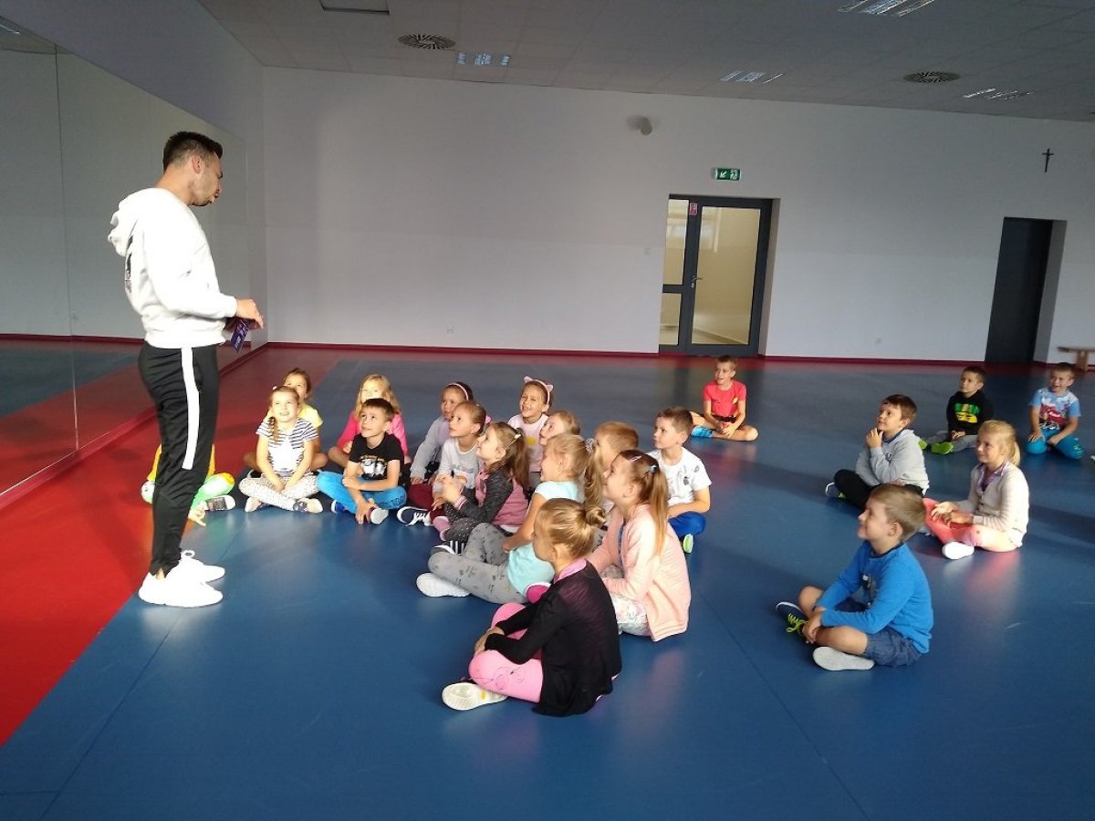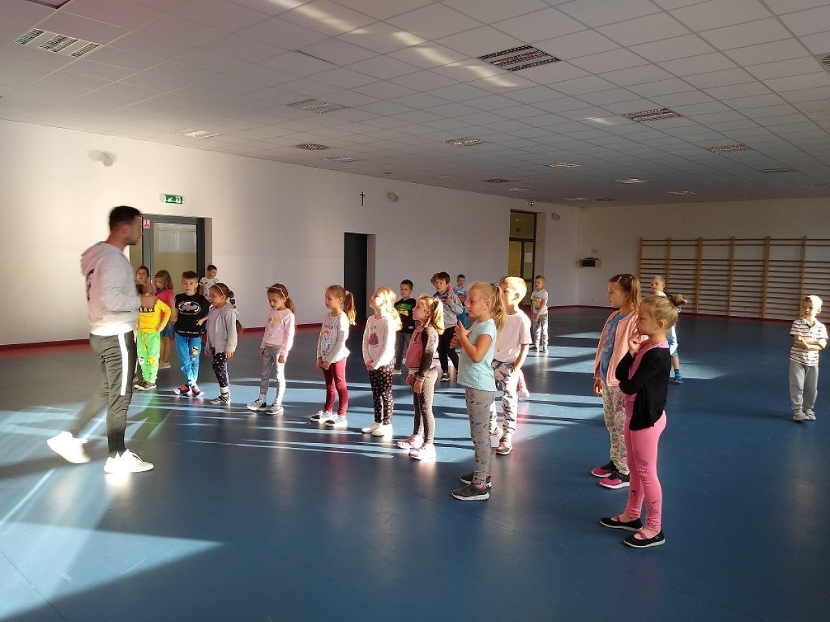 Dnia 16 wrzesnia 2019r. odbył się pokaz hip-hopu prowadzony przez Pana Jakuba ze szkoły tańca A&J DANCE MIND. Dzieci miały okazję spróbować swoich sił i razem z instruktorem odtańczyły układ taneczny. Serdecznie zapraszamy na zajęcia, które prowadzone są w formie radosnej i spontanicznej zabawy połączonej z tańcem. Podczas zajęć dzieci poznają wiele technik tanecznych, między innymi hip-hop czy moveling, czyli połączenie nauki tańca oraz języka angielskiego. Tańce przeplatane są zabawami ruchowymi. Program i poziom nauczania dostosowany jest do umiejętności danej grupy wiekowej. Serdecznie zapraszamy!!!