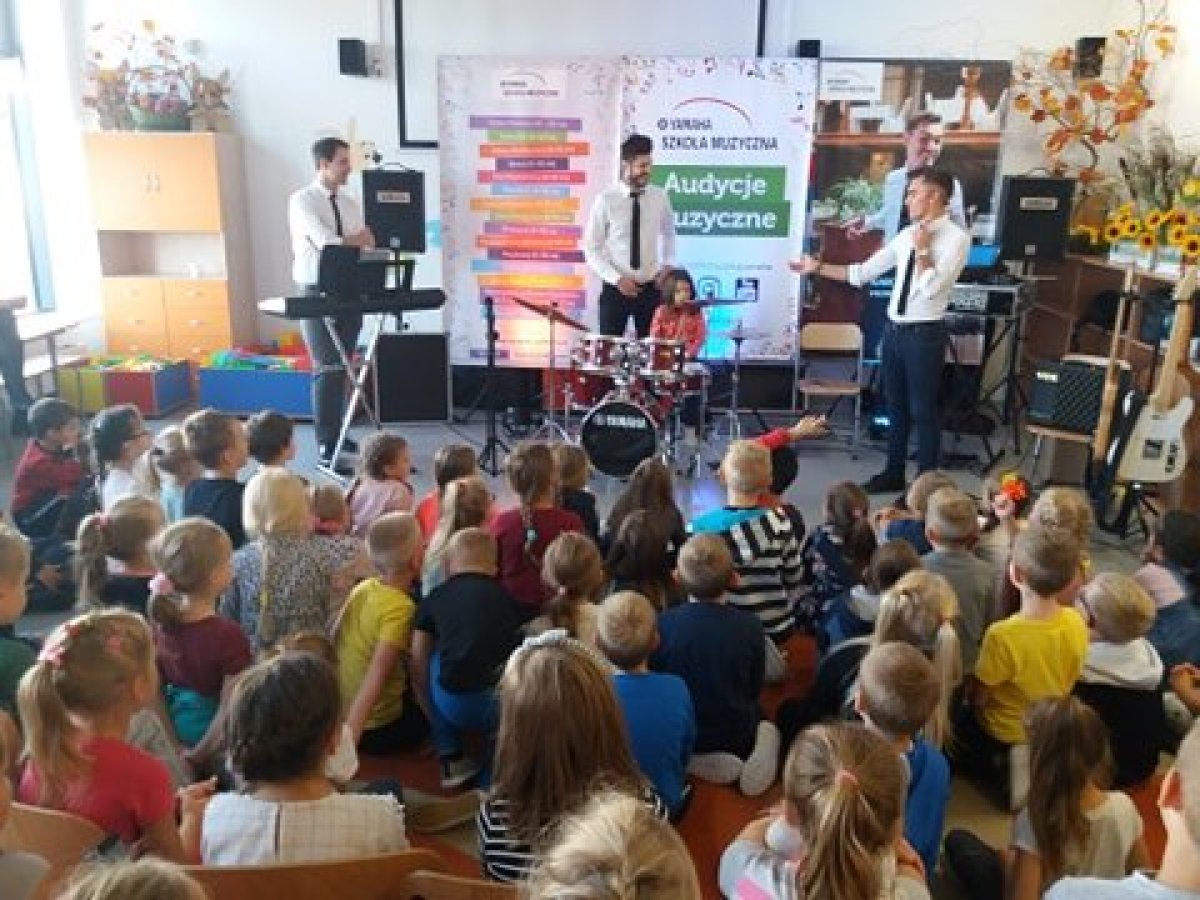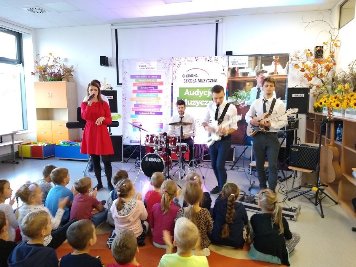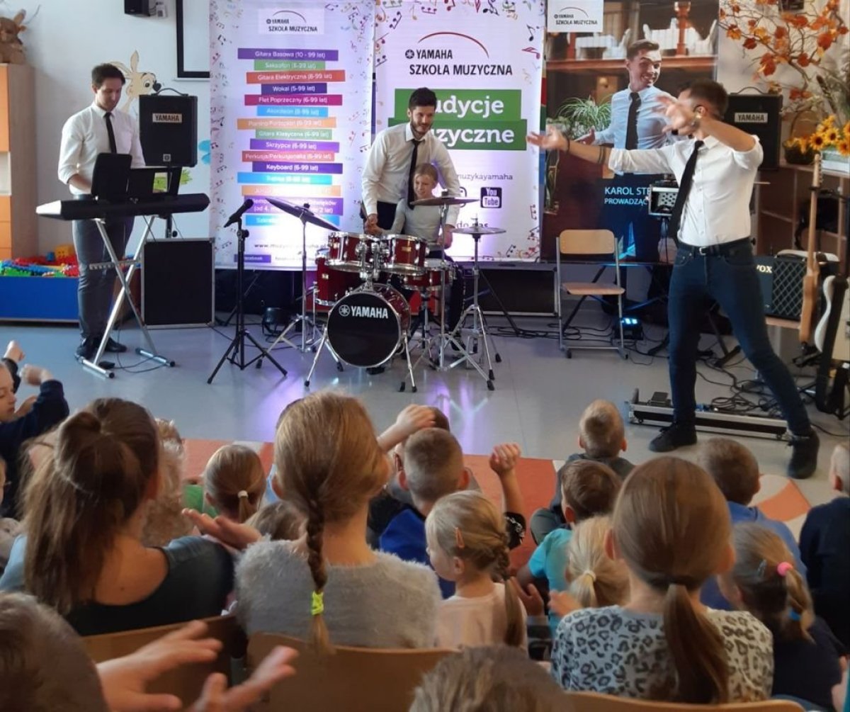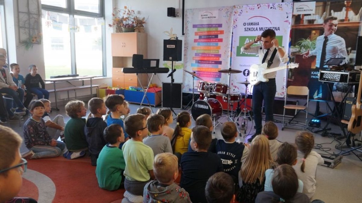 20 września 2019r. uczniowie klas I-III mieli przyjemność uczestniczyć w audycji muzycznej YAMAHA. Dzieci miały okazję posłuchać brzmienia instrumentów tj.: gitary klasycznej, gitary basowej, perkusji, skrzypiec oraz keyboardu. Prowadzący audycję omawiali budowę każdego z instrumentów. Niektórzy uczniowie mieli okazję spróbować gry na instrumencie. Jak zawsze audycja muzyczna YAMAHA przeniosła dzieci w świat muzyki sprawiając im ogromną przyjemność.