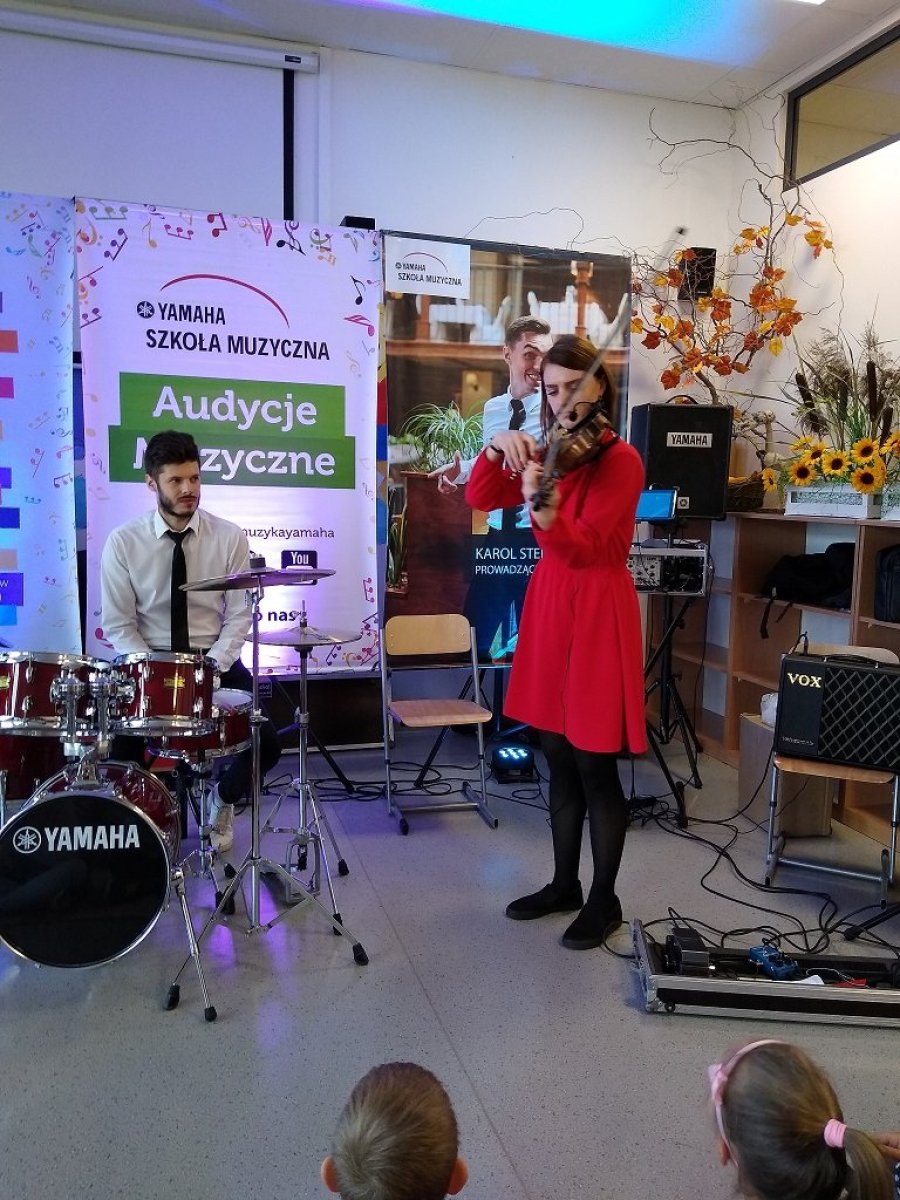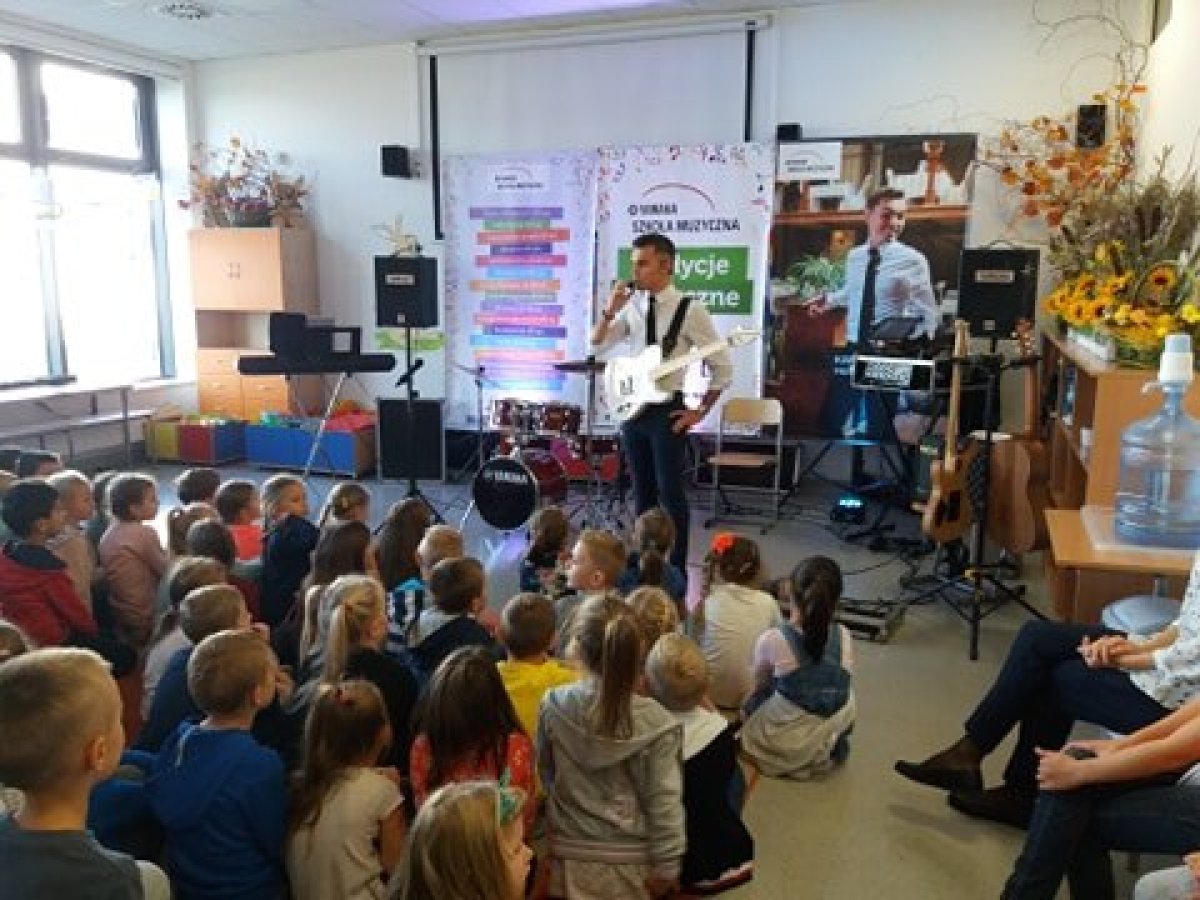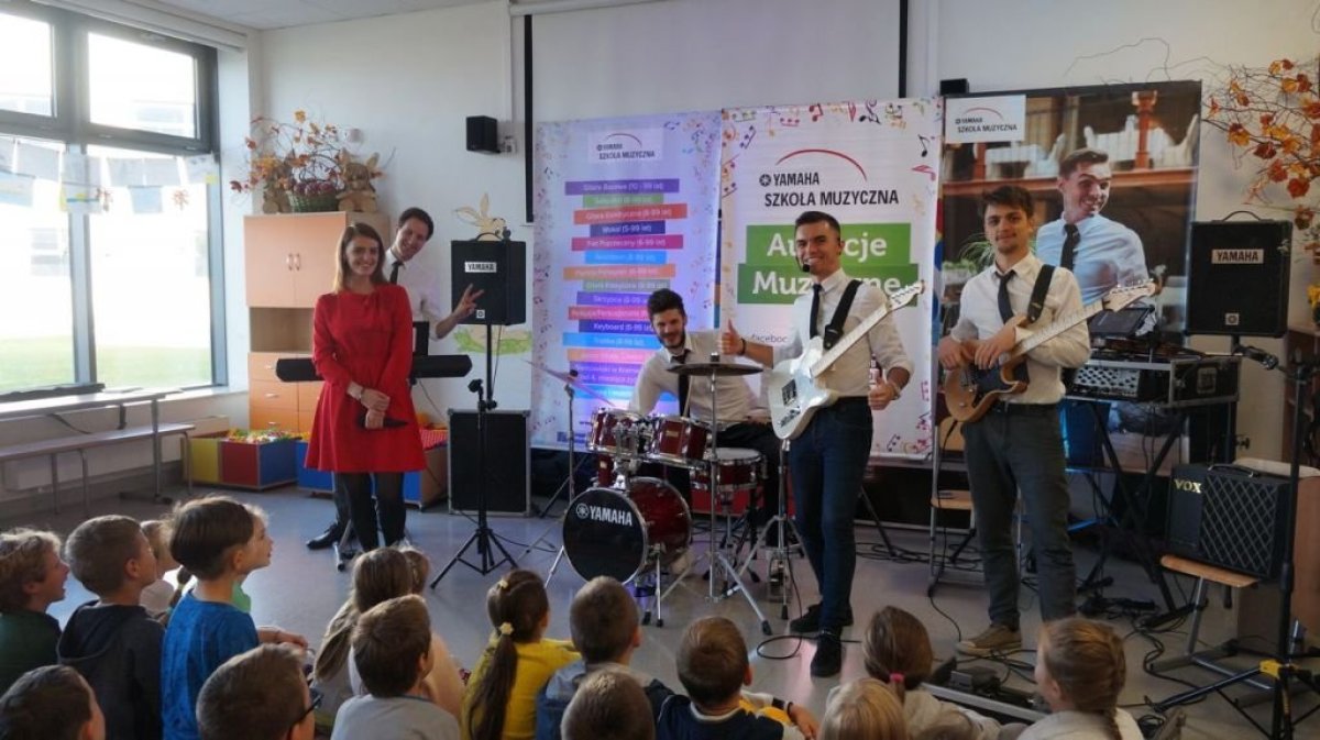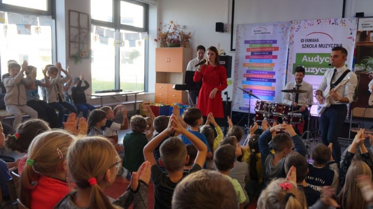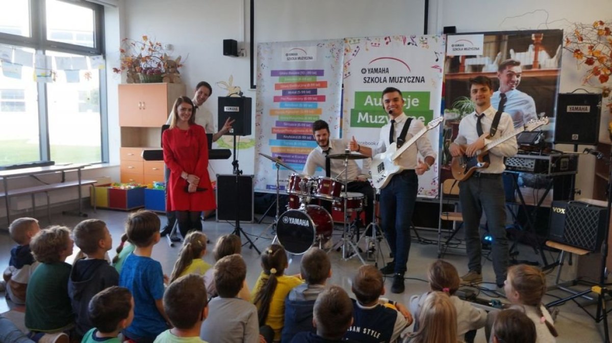 20 września 2019r. uczniowie klas I-III mieli przyjemność uczestniczyć w audycji muzycznej YAMAHA. Dzieci miały okazję posłuchać brzmienia instrumentów tj.: gitary klasycznej, gitary basowej, perkusji, skrzypiec oraz keyboardu. Prowadzący audycję omawiali budowę każdego z instrumentów. Niektórzy uczniowie mieli okazję spróbować gry na instrumencie. Jak zawsze audycja muzyczna YAMAHA przeniosła dzieci w świat muzyki sprawiając im ogromną przyjemność.