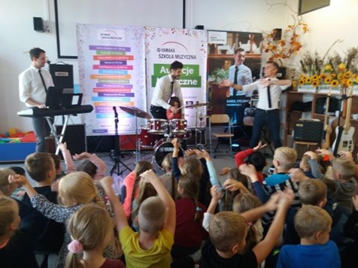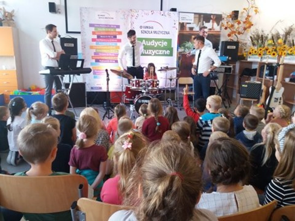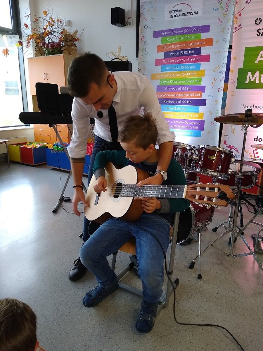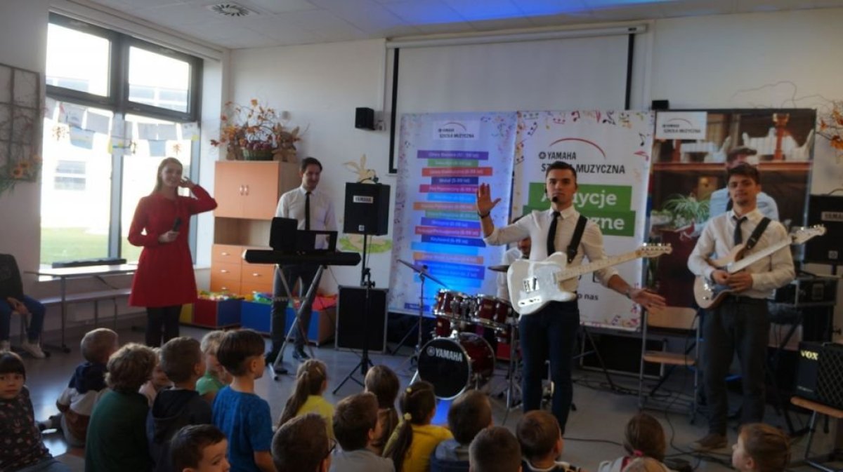 20 września 2019r. uczniowie klas I-III mieli przyjemność uczestniczyć w audycji muzycznej YAMAHA. Dzieci miały okazję posłuchać brzmienia instrumentów tj.: gitary klasycznej, gitary basowej, perkusji, skrzypiec oraz keyboardu. Prowadzący audycję omawiali budowę każdego z instrumentów. Niektórzy uczniowie mieli okazję spróbować gry na instrumencie. Jak zawsze audycja muzyczna YAMAHA przeniosła dzieci w świat muzyki sprawiając im ogromną przyjemność.