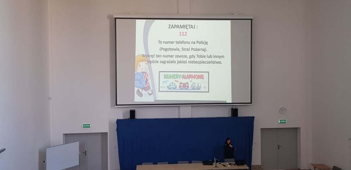 27 września 2019r. uczniowie klas 1 oraz 2 SP uczestniczyli w spotkaniu z panią policjantką, która przybliżyła dzieciom podstawowe zasady bezpiecznego poruszania się po drogach, a także przypomniała numery alarmowe oraz zasady zachowania się podczas spotkania z nieznajomym. Uczniowie dowiedzieli się również, jaką pozycję należy przyjąć podczas ataku ze strony niebezpiecznego psa oraz dlaczego zapinanie pasów w samochodzie jest konieczne.
