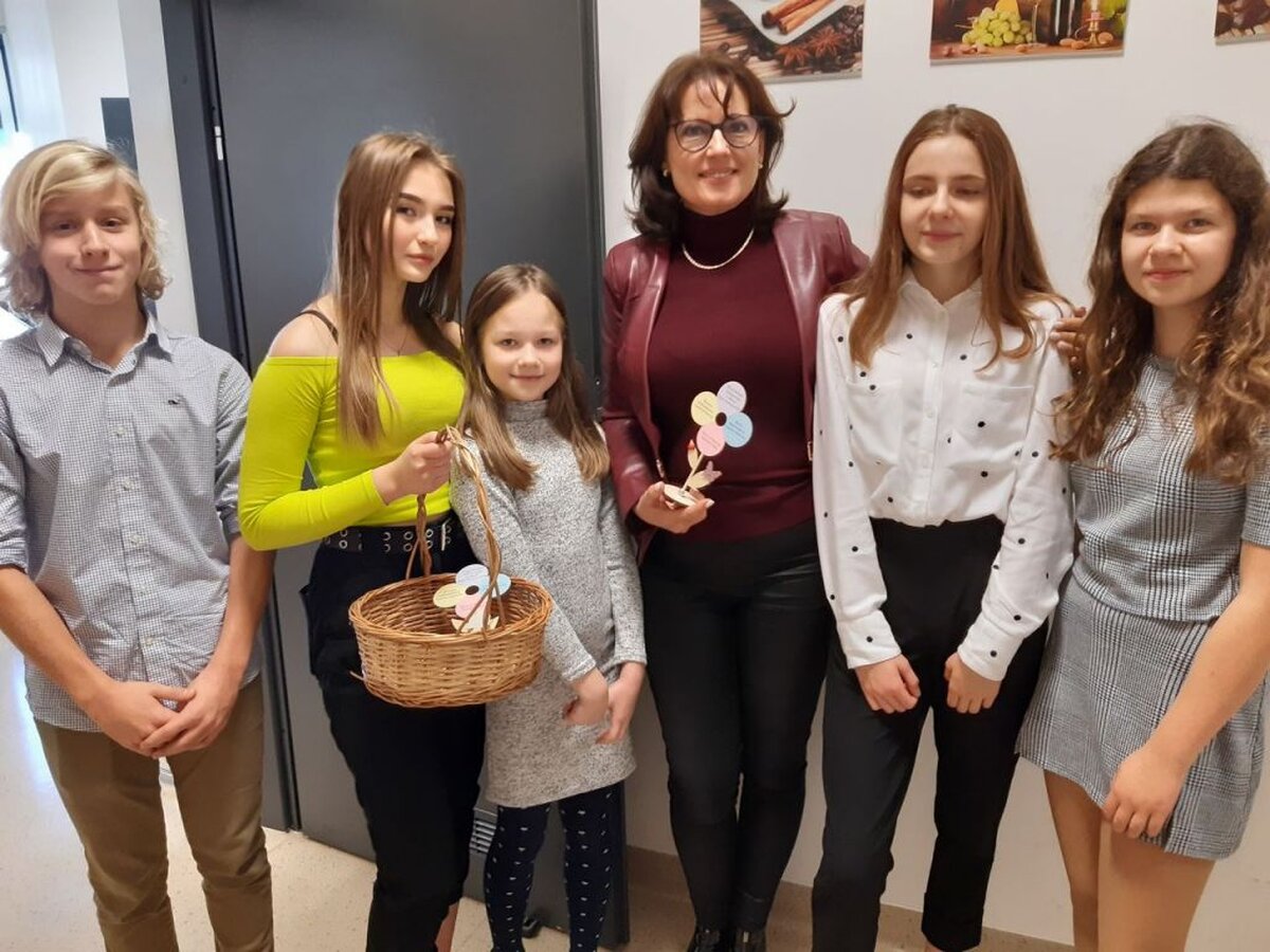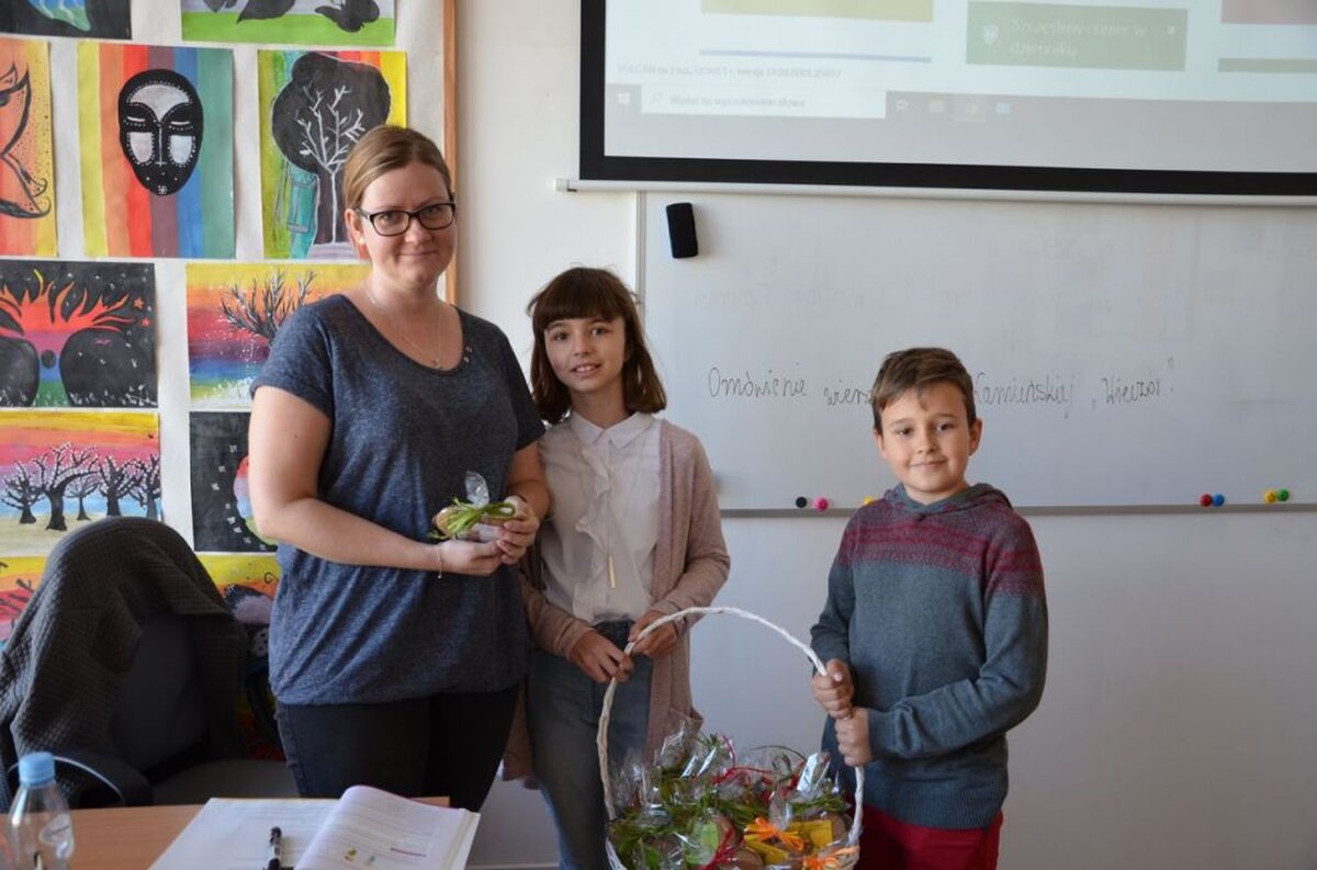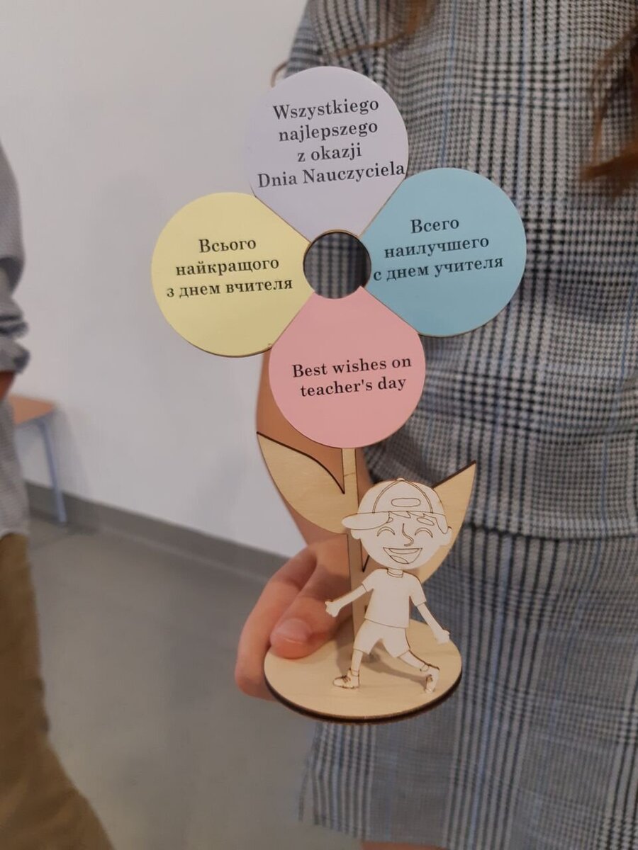 I z tej właśnie okazji pojawiła się w holu naszej szkoły pełna kolorowych kwiatów dekoracja, połączona z prezentacją multimedialną wypełnioną życzeniami dla wszystkich Pracowników szkoły, a przez radiowęzeł popłynęły okolicznościowe życzenia: