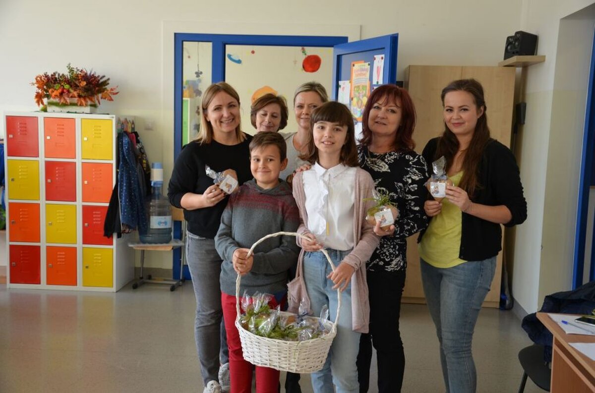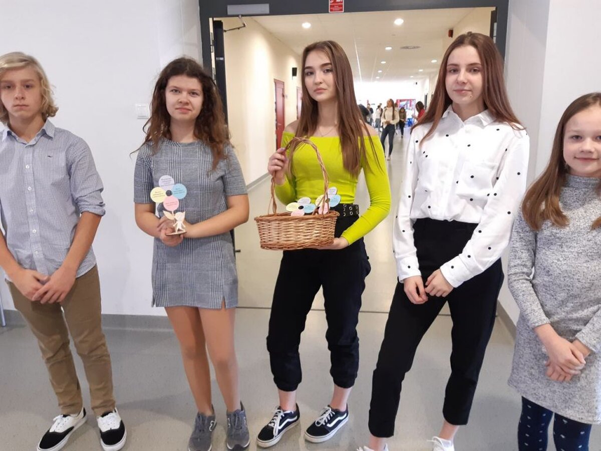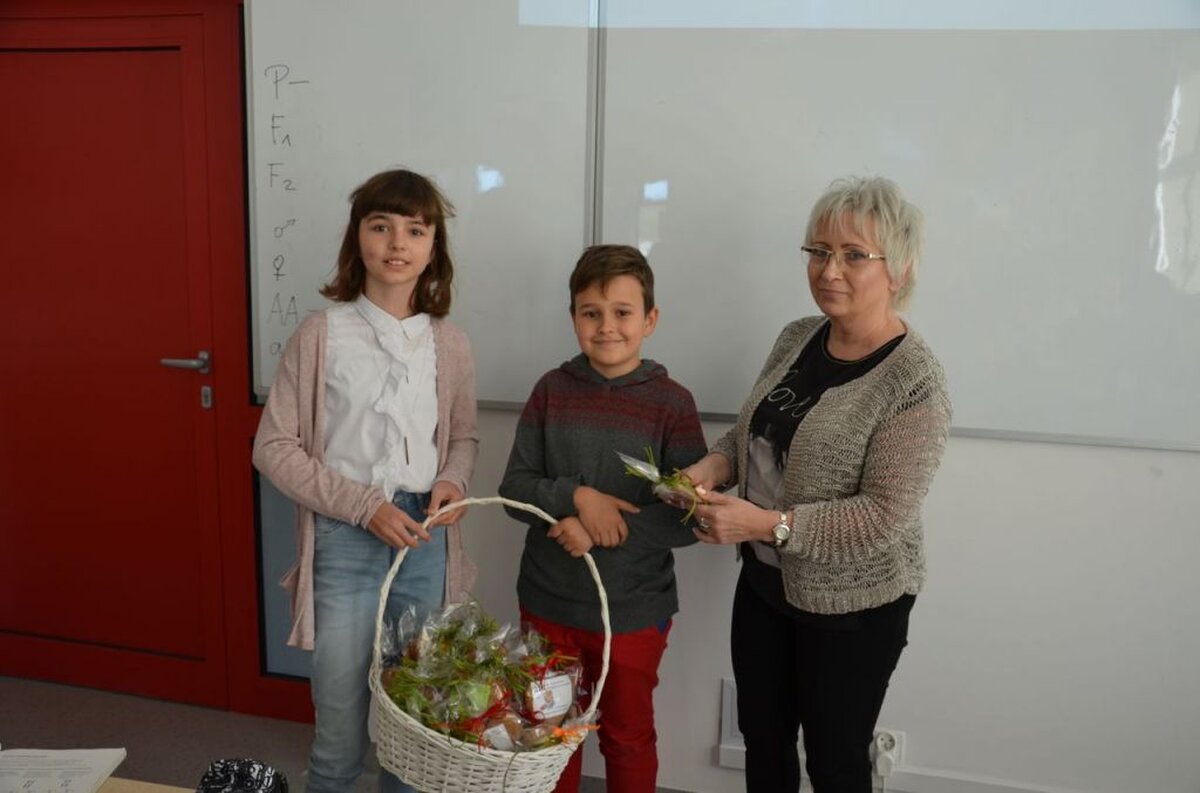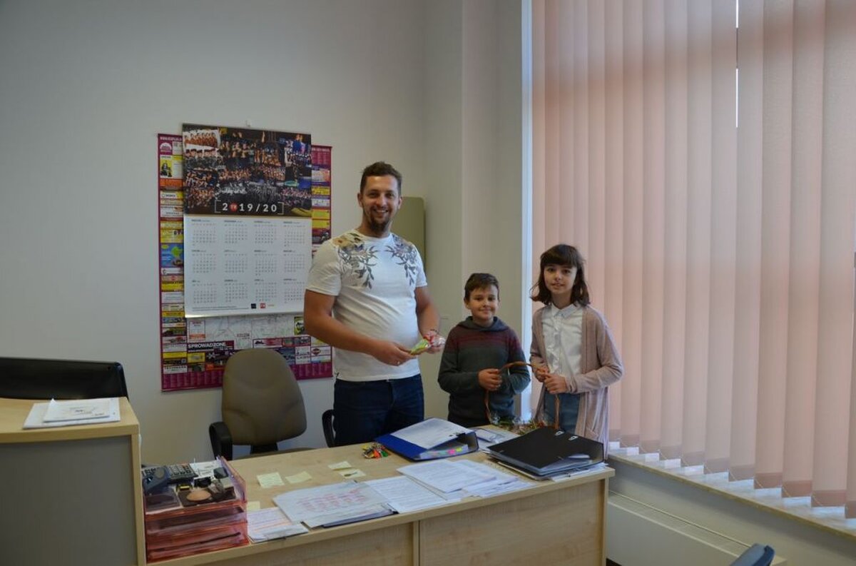 I z tej właśnie okazji pojawiła się w holu naszej szkoły pełna kolorowych kwiatów dekoracja, połączona z prezentacją multimedialną wypełnioną życzeniami dla wszystkich Pracowników szkoły, a przez radiowęzeł popłynęły okolicznościowe życzenia: