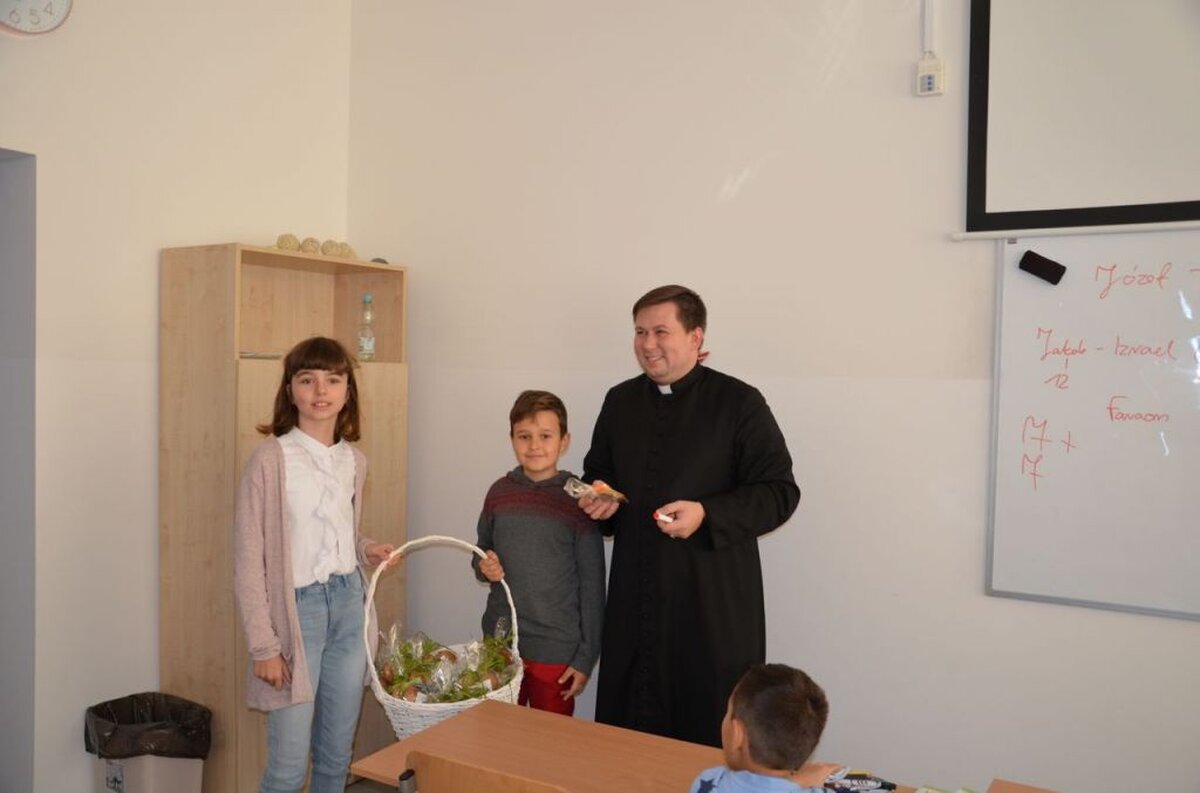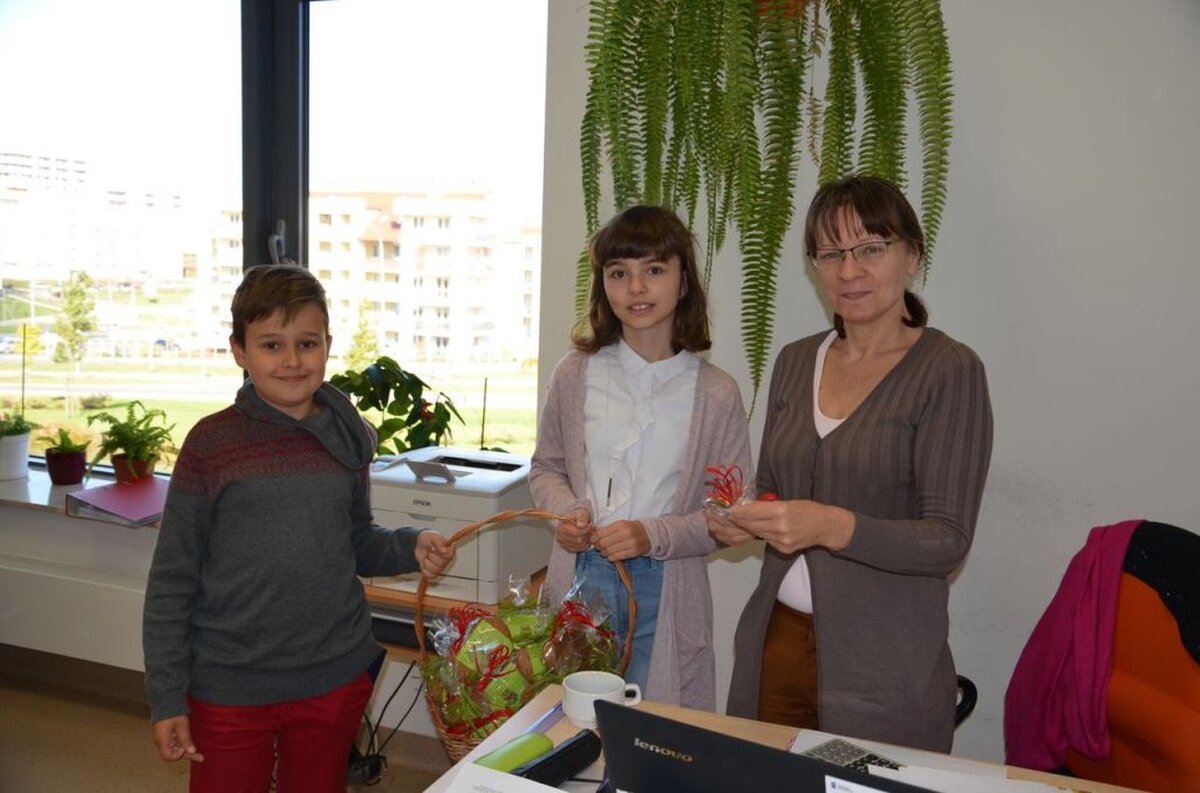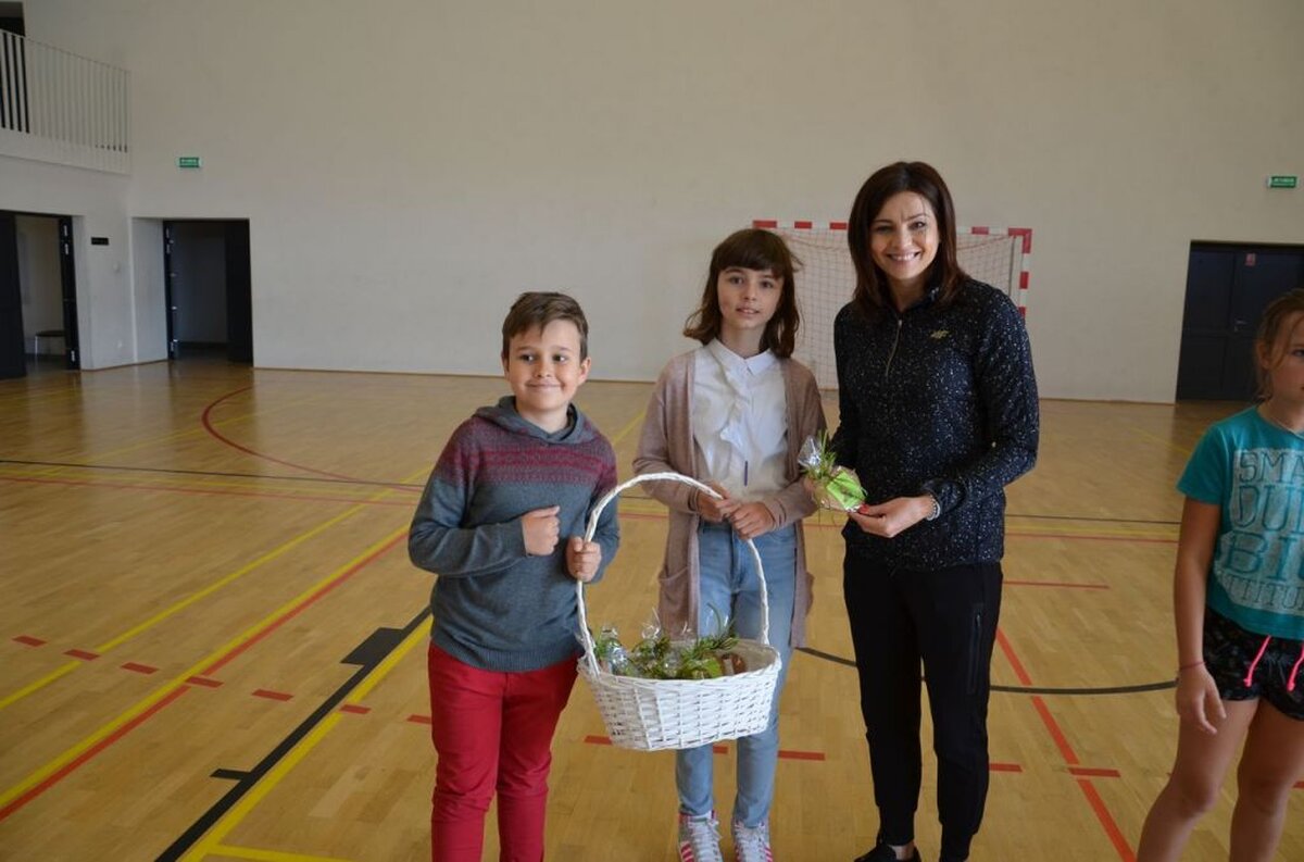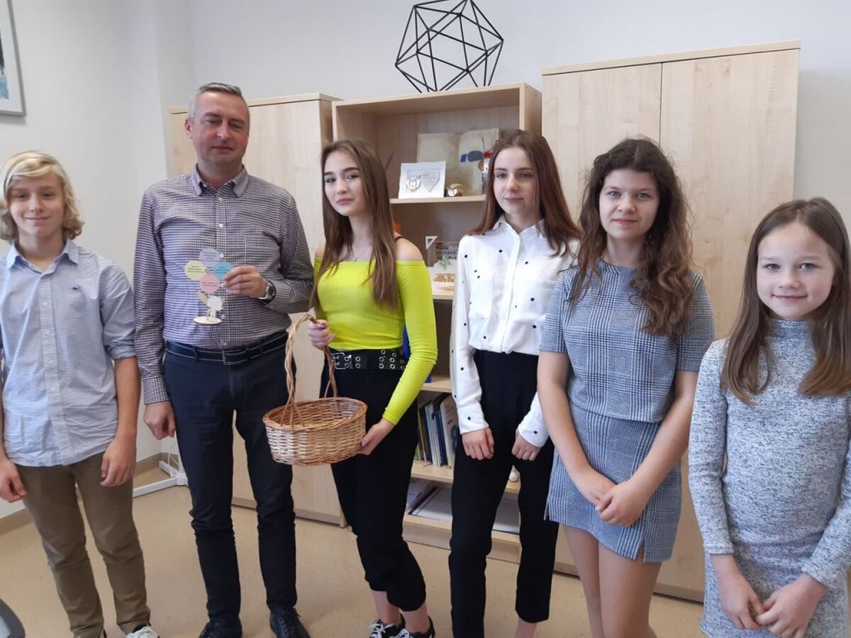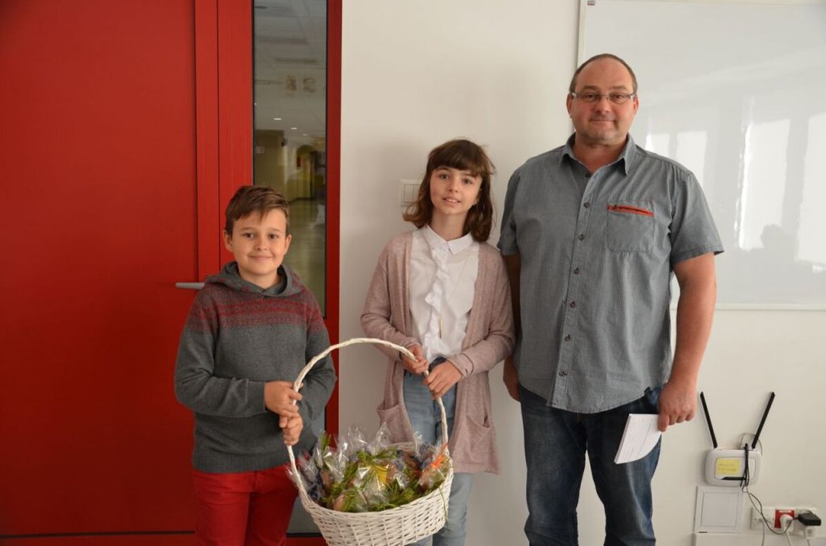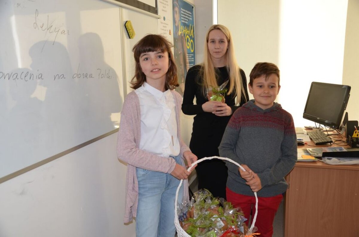 Nasi uczniowie, składając życzenia i podziękowania nauczycielom, pracownikom administracji i obsługi, wręczali im smaczne upominki.