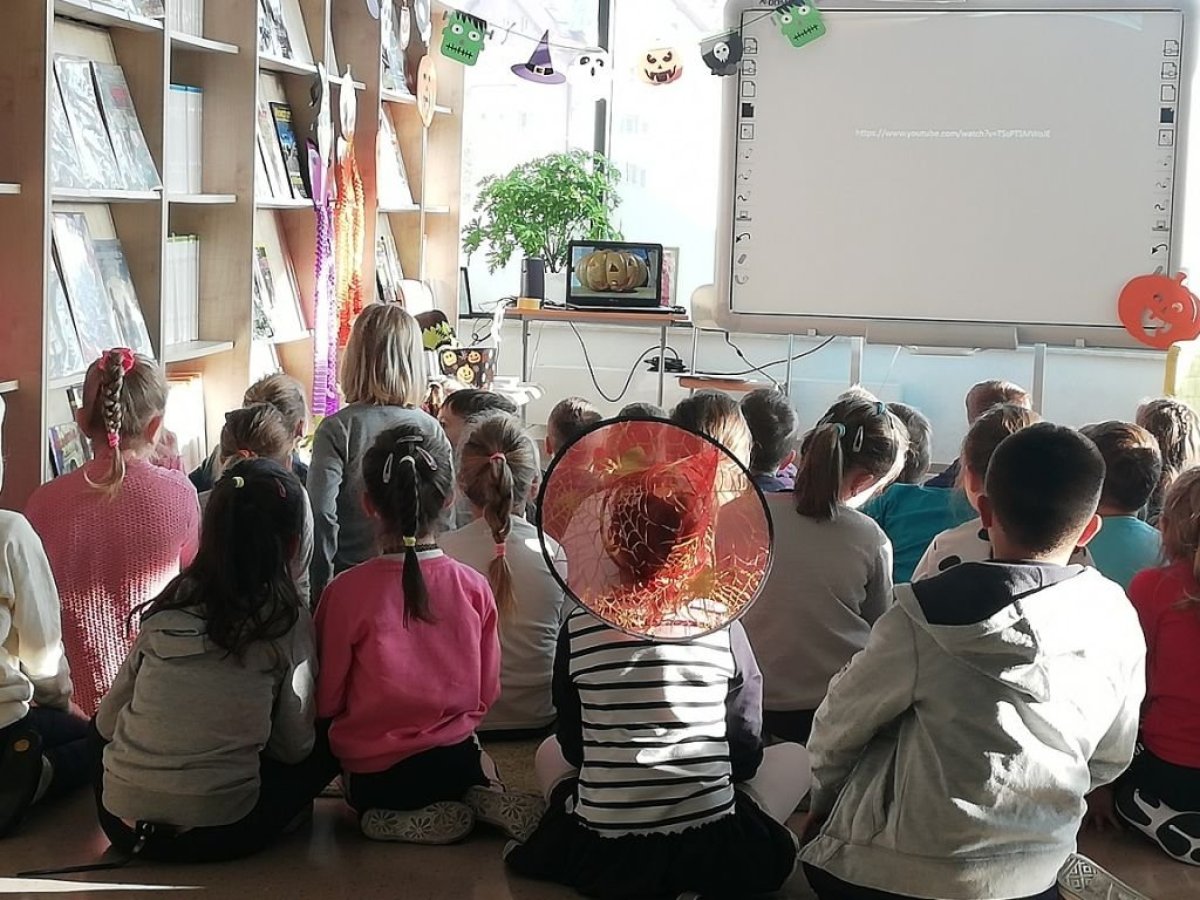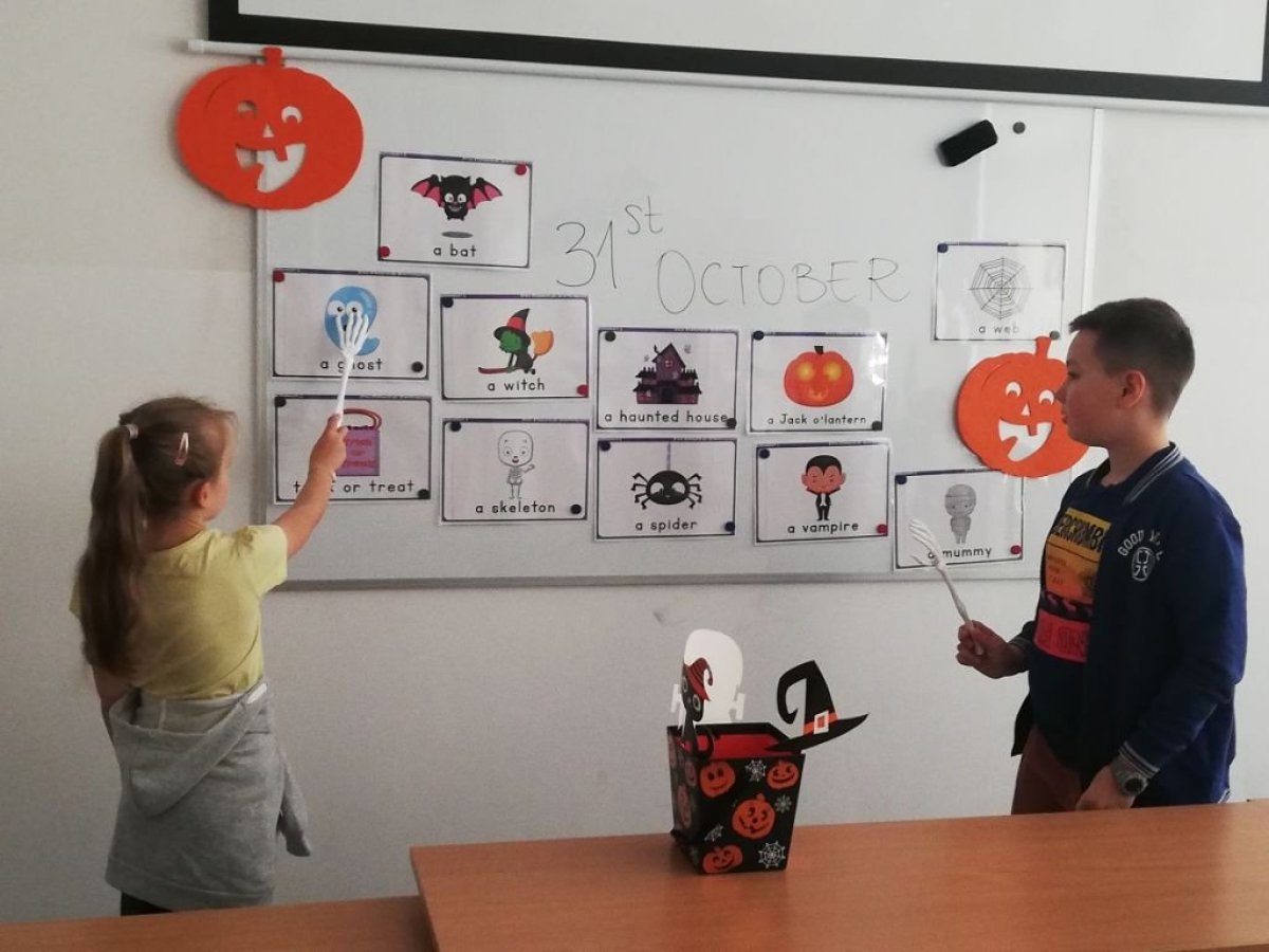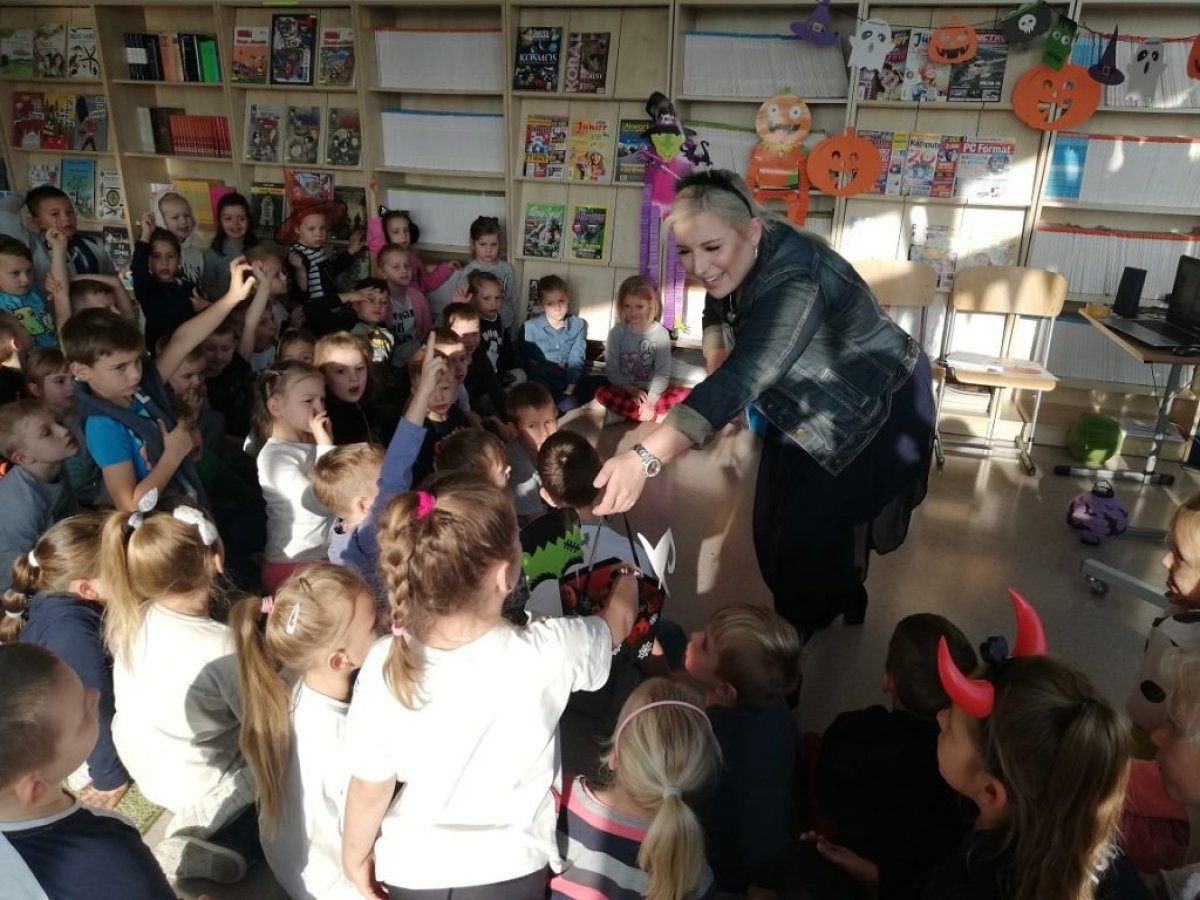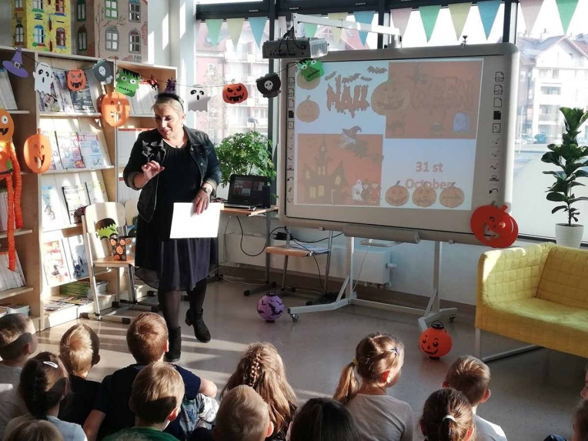31 października 2019r. w szkolnej czytelni odbyła się lekcja kulturowa związana ze świętem ,,Halloween”. Jej celem było przybliżenie uczniom klas 1-3 tradycji i kultury krajów anglojęzycznych oraz rozwijanie zainteresowań językowych. Tego dnia uczniowie obejrzeli kilkuminutowy filmik w języku angielskim, ukazujący przygotowania rodzin brytyjskich do wieczora Halloween. Ponadto dzieci zapoznały się ze słownictwem poprzez użycie ,,flashcards”, a następnie aktywnie uczestniczyły w grach i zabawach związane z tematyką tego święta. Kolejną rozrywką tego dnia były kolorowanki i zgadywanki językowe. Na koniec najbardziej aktywni uczniowie zostali nagrodzeni drobnym poczęstunkiem. Dzień ten był wspaniałą przygodą dla wszystkich biorących udział w zabawie i z pewnością pozostanie na długo w naszej pamięci.