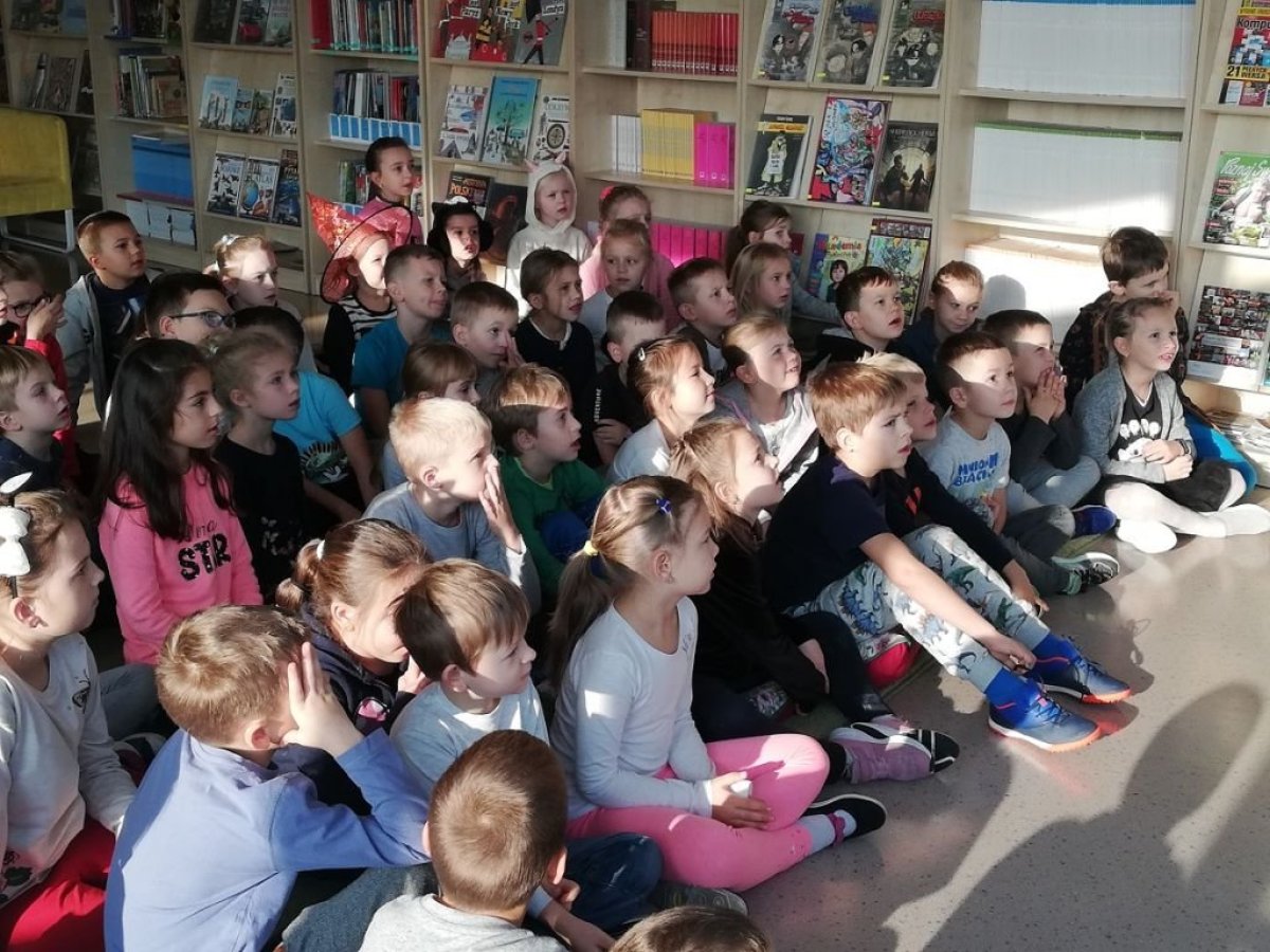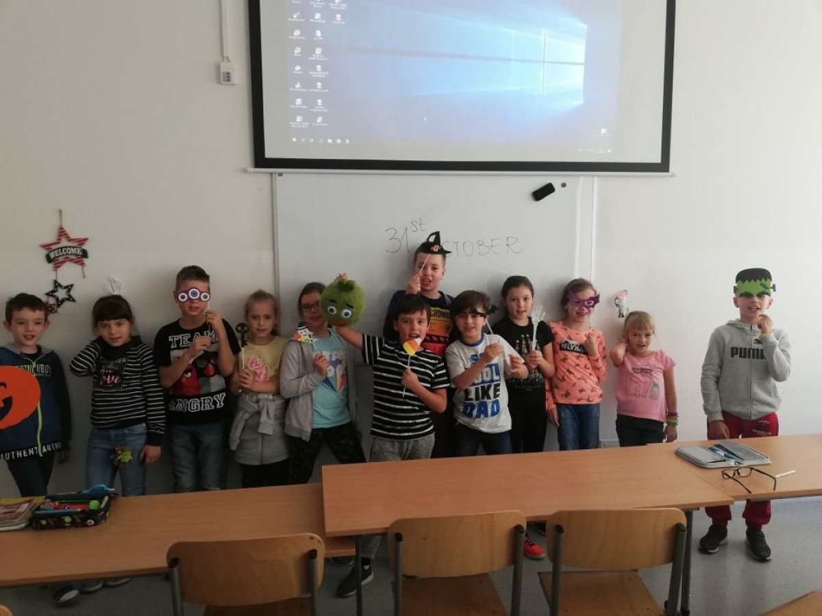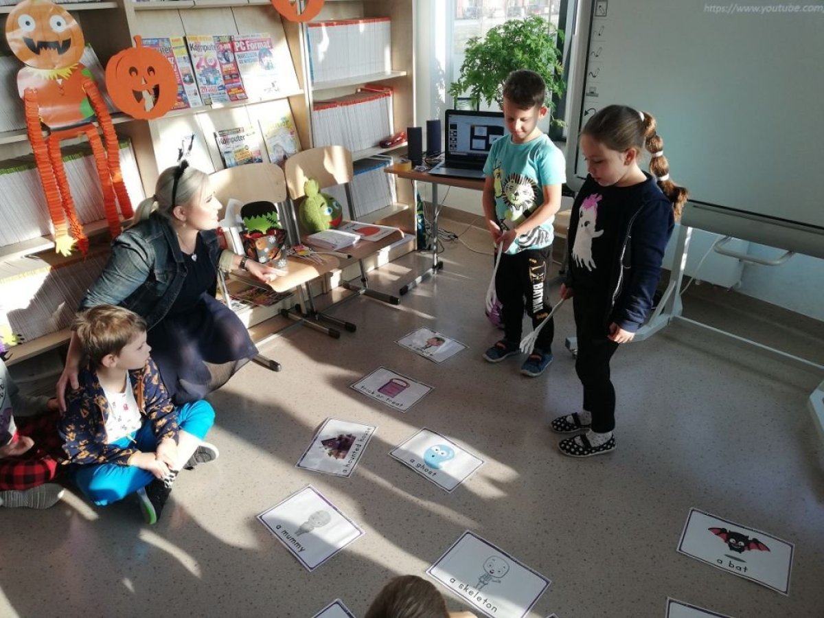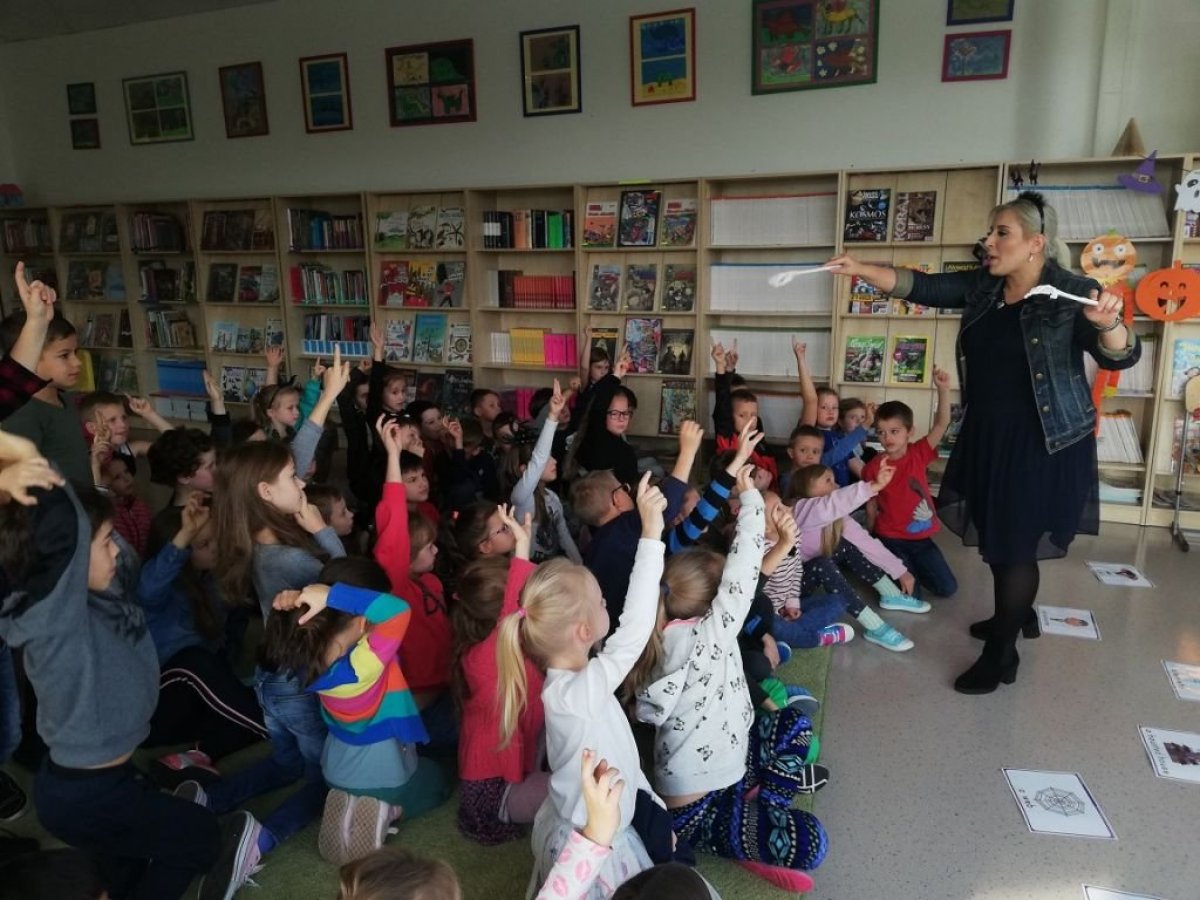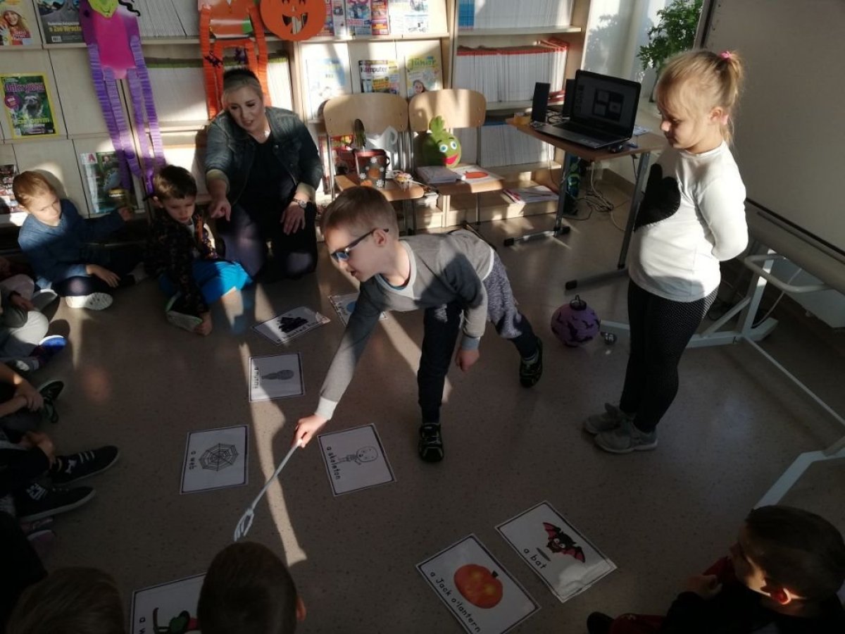 31 października 2019r. w szkolnej czytelni odbyła się lekcja kulturowa związana ze świętem ,,Halloween”. Jej celem było przybliżenie uczniom klas 1-3 tradycji i kultury krajów anglojęzycznych oraz rozwijanie zainteresowań językowych. Tego dnia uczniowie obejrzeli kilkuminutowy filmik w języku angielskim, ukazujący przygotowania rodzin brytyjskich do wieczora Halloween. Ponadto dzieci zapoznały się ze słownictwem poprzez użycie ,,flashcards”, a następnie aktywnie uczestniczyły w grach i zabawach związane z tematyką tego święta. Kolejną rozrywką tego dnia były kolorowanki i zgadywanki językowe. Na koniec najbardziej aktywni uczniowie zostali nagrodzeni drobnym poczęstunkiem. Dzień ten był wspaniałą przygodą dla wszystkich biorących udział w zabawie i z pewnością pozostanie na długo w naszej pamięci.