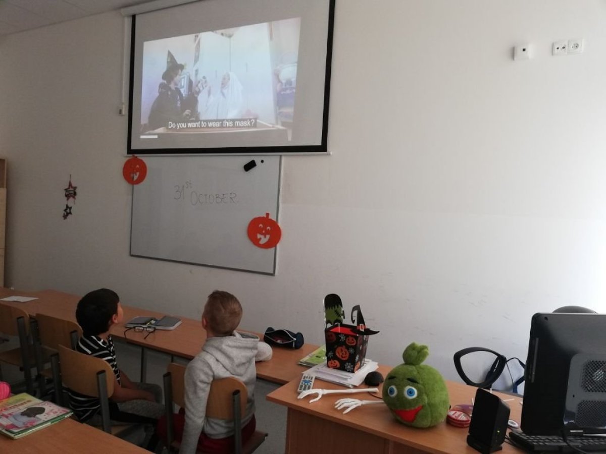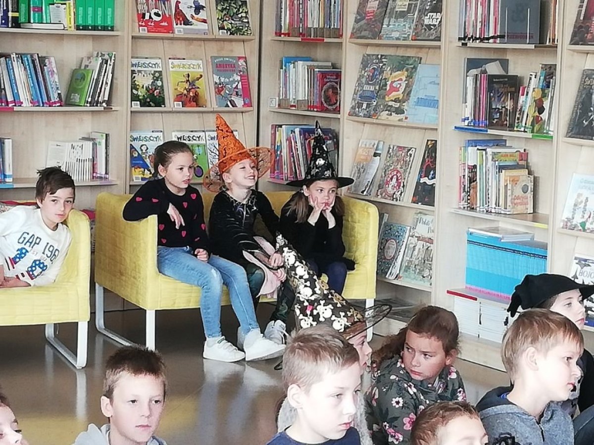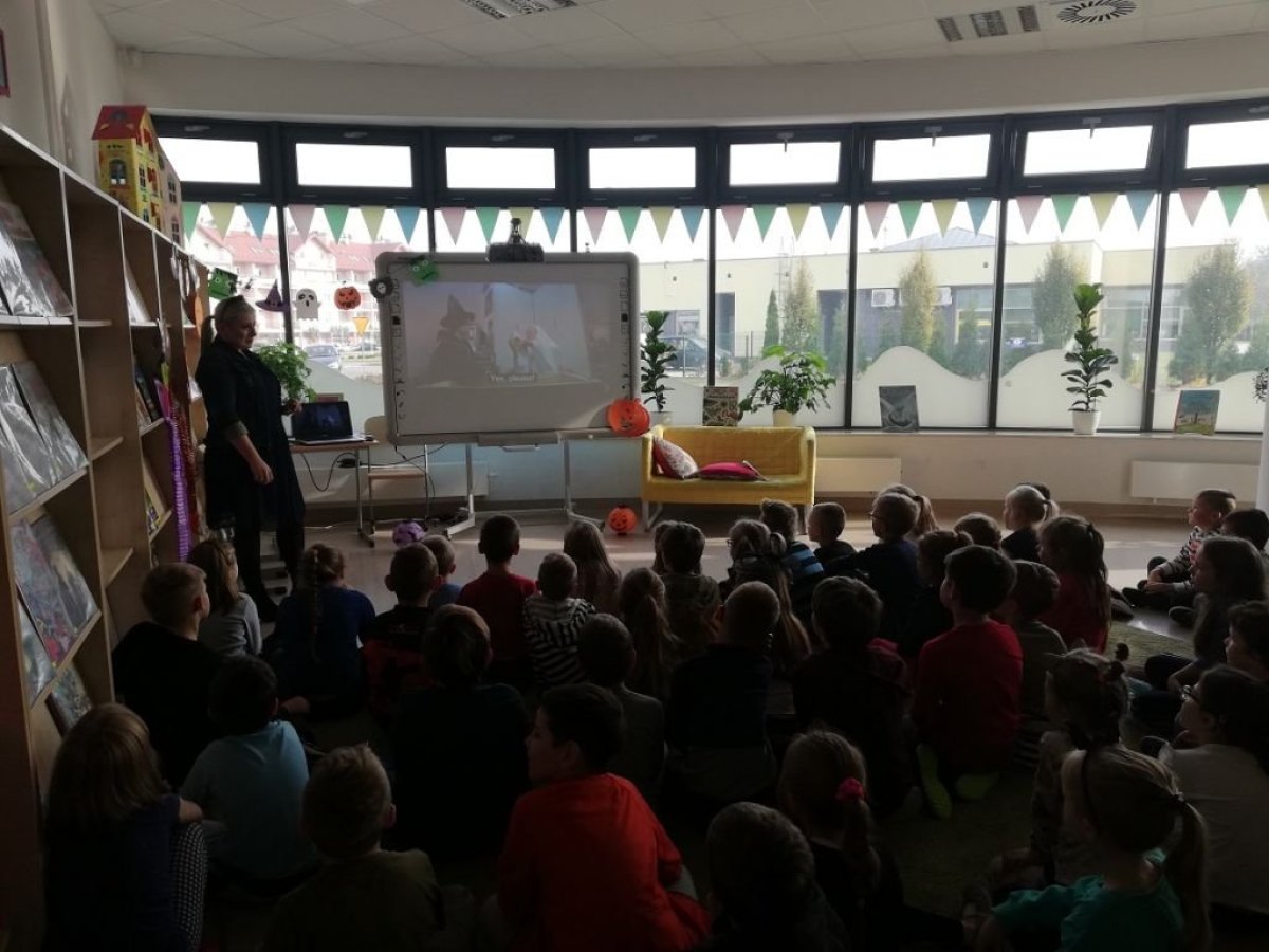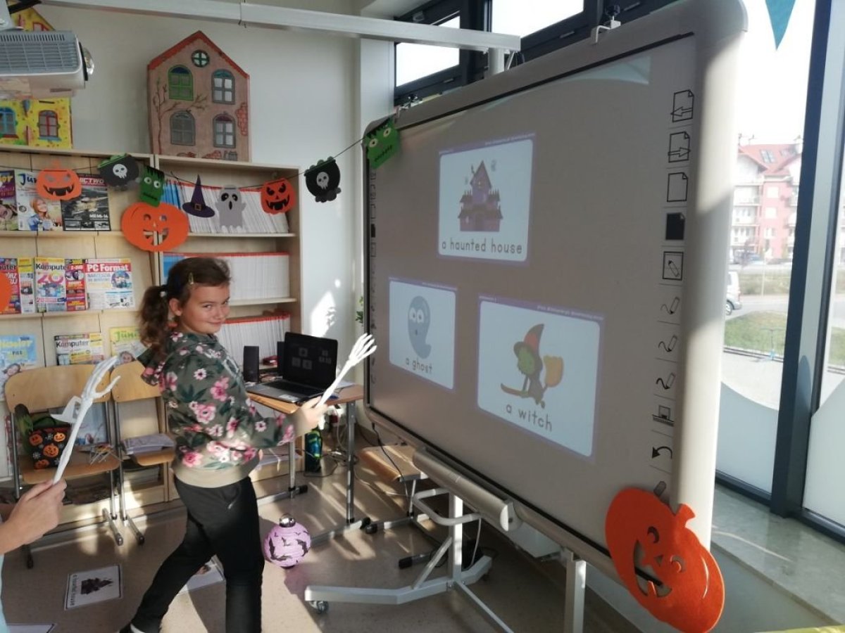 31 października 2019r. w szkolnej czytelni odbyła się lekcja kulturowa związana ze świętem ,,Halloween”. Jej celem było przybliżenie uczniom klas 1-3 tradycji i kultury krajów anglojęzycznych oraz rozwijanie zainteresowań językowych. Tego dnia uczniowie obejrzeli kilkuminutowy filmik w języku angielskim, ukazujący przygotowania rodzin brytyjskich do wieczora Halloween. Ponadto dzieci zapoznały się ze słownictwem poprzez użycie ,,flashcards”, a następnie aktywnie uczestniczyły w grach i zabawach związane z tematyką tego święta. Kolejną rozrywką tego dnia były kolorowanki i zgadywanki językowe. Na koniec najbardziej aktywni uczniowie zostali nagrodzeni drobnym poczęstunkiem. Dzień ten był wspaniałą przygodą dla wszystkich biorących udział w zabawie i z pewnością pozostanie na długo w naszej pamięci.