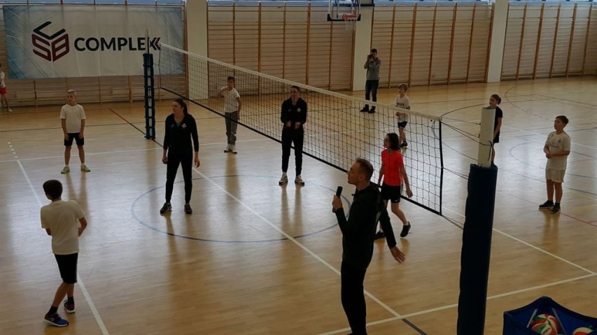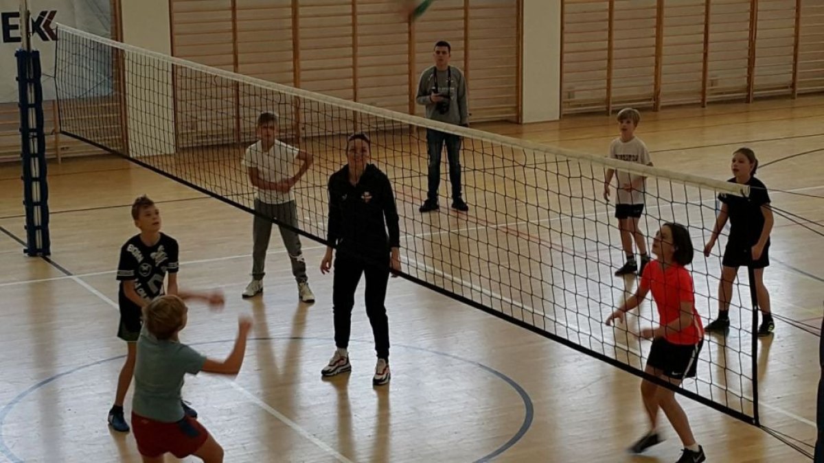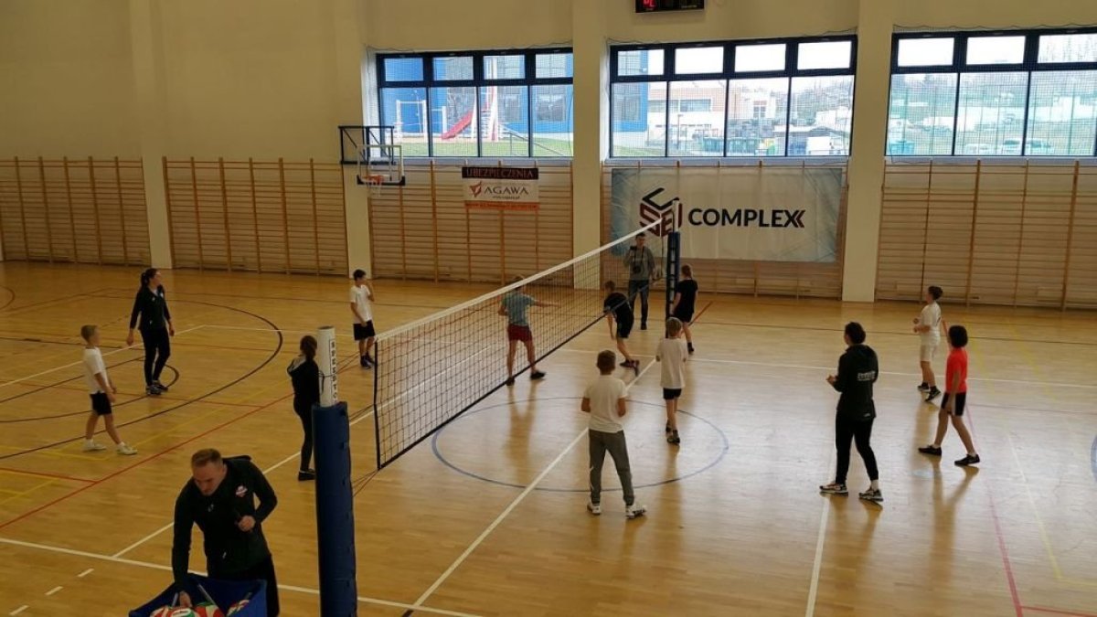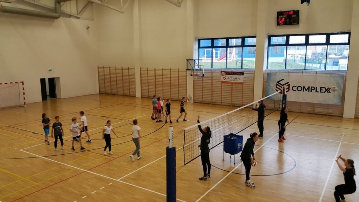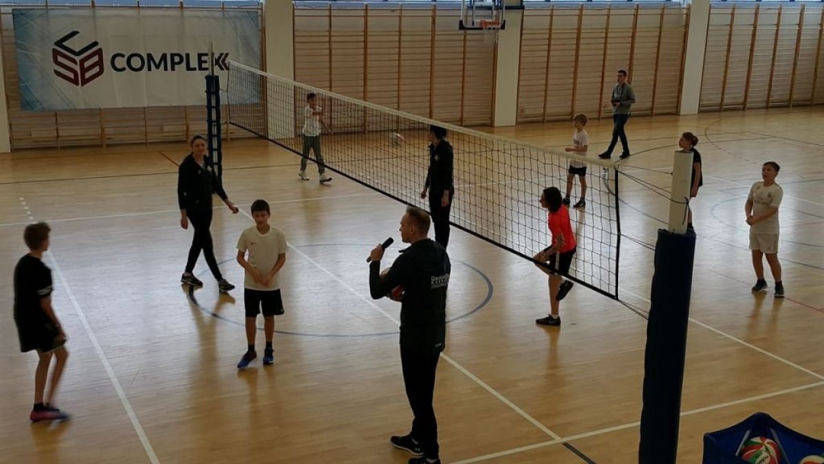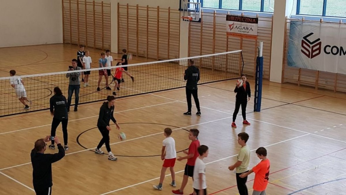 W drugiej części trener Bartłomiej Dąbrowski przeprowadził mini trening na sali gimnastycznej z uczniami naszej szkoły. Zakończył się on meczem, w którym było dużo zabawy i radości, a wszystko to z udziałem naszych gości.