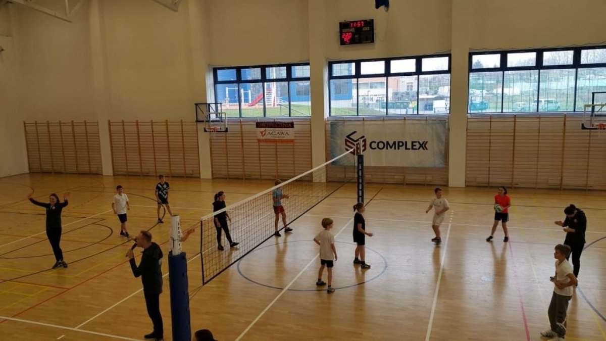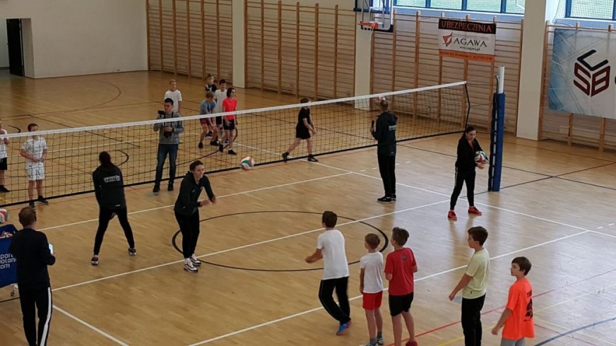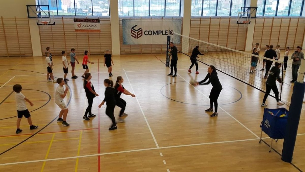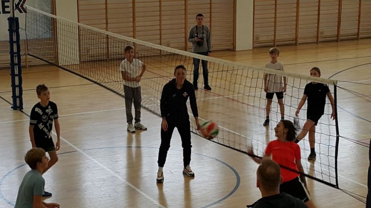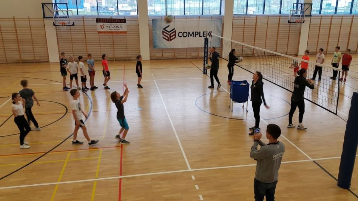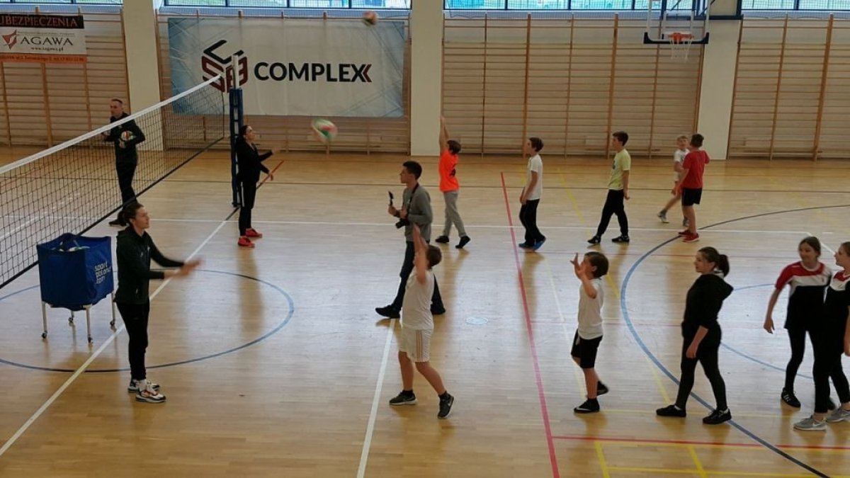 W drugiej części trener Bartłomiej Dąbrowski przeprowadził mini trening na sali gimnastycznej z uczniami naszej szkoły. Zakończył się on meczem, w którym było dużo zabawy i radości, a wszystko to z udziałem naszych gości.