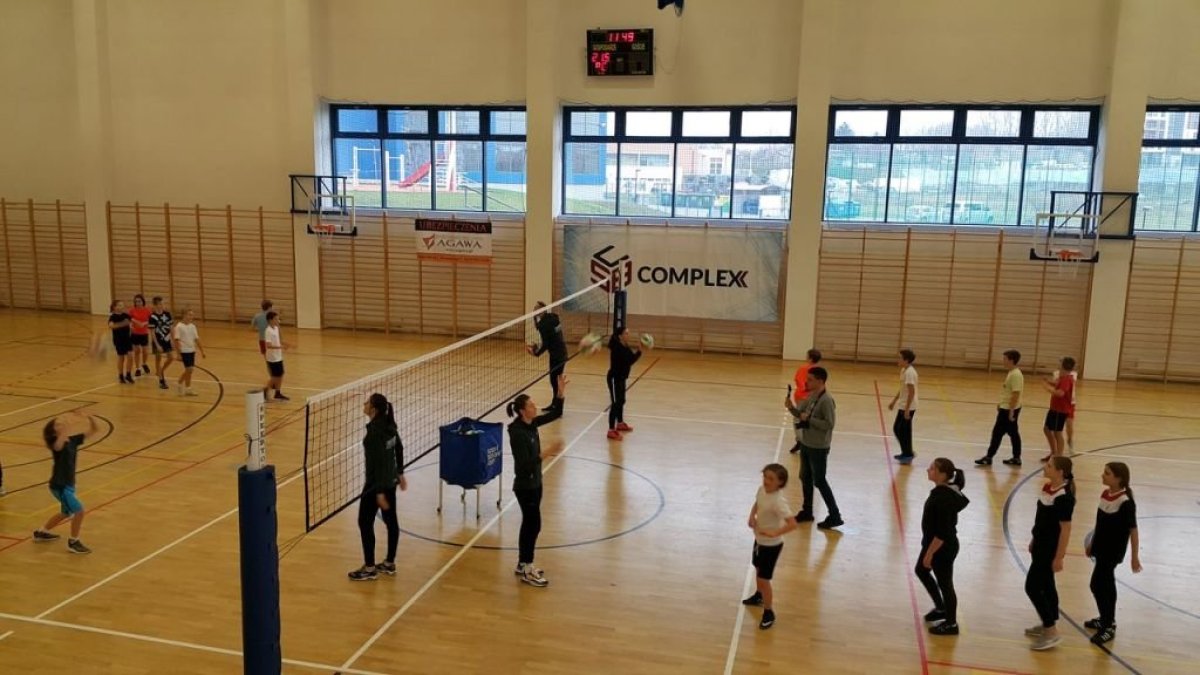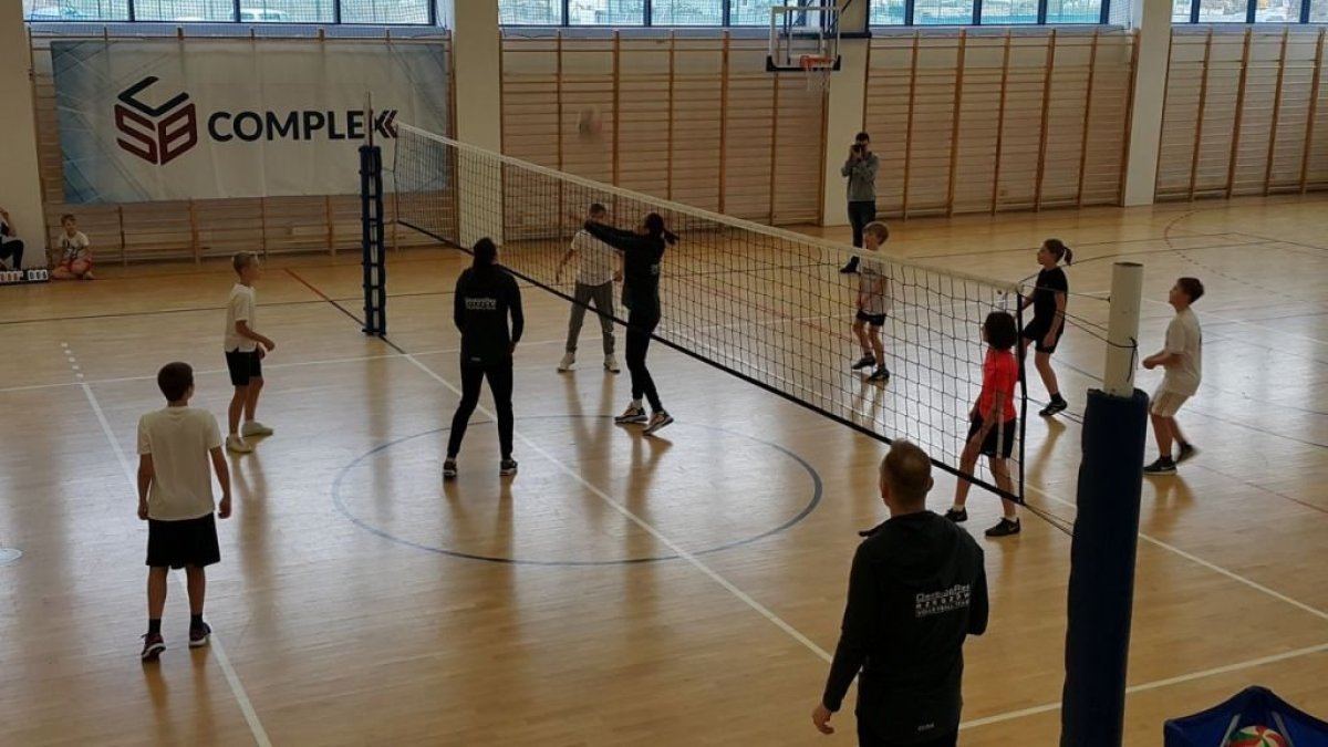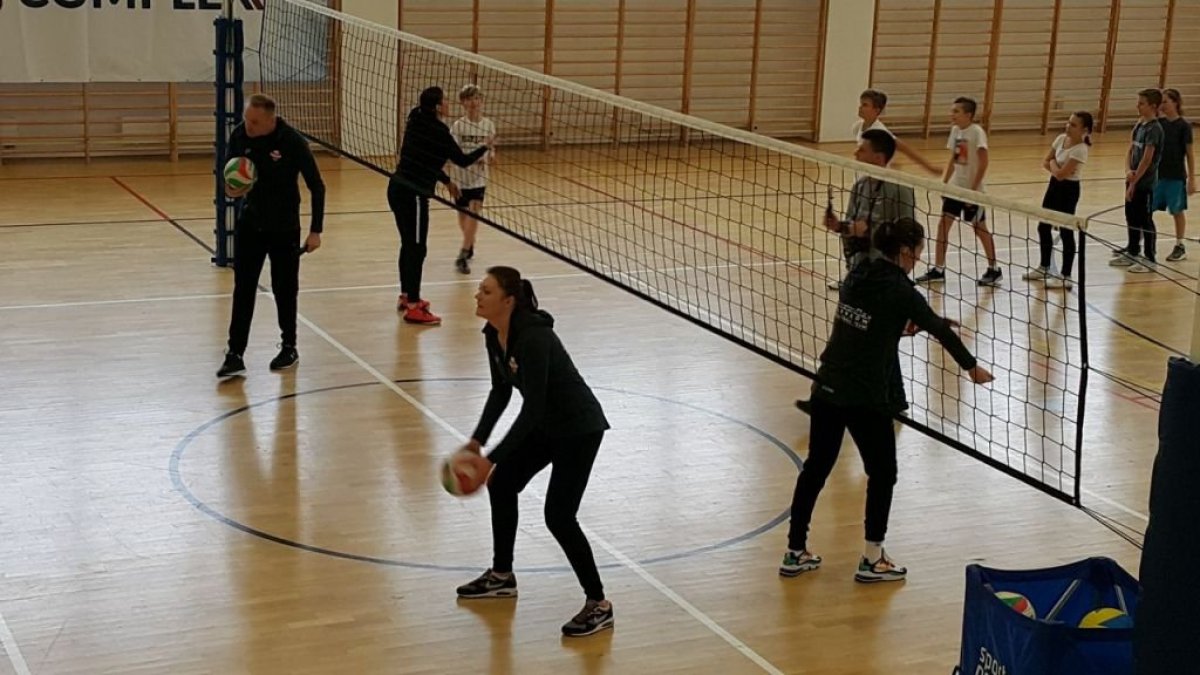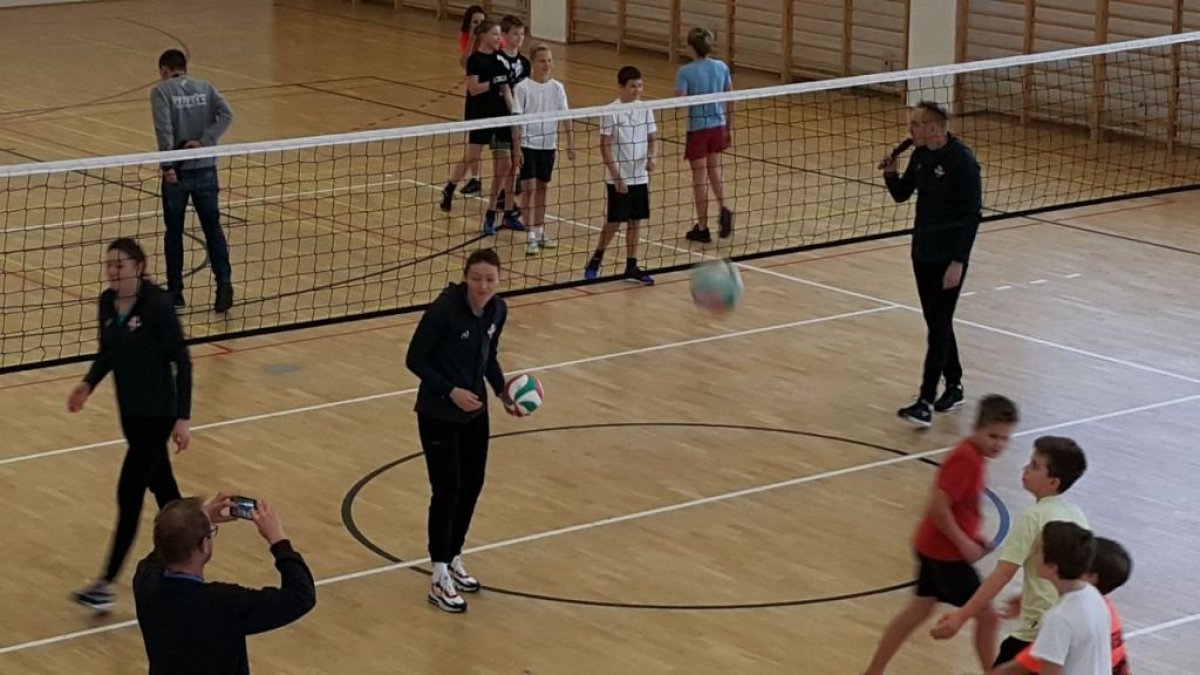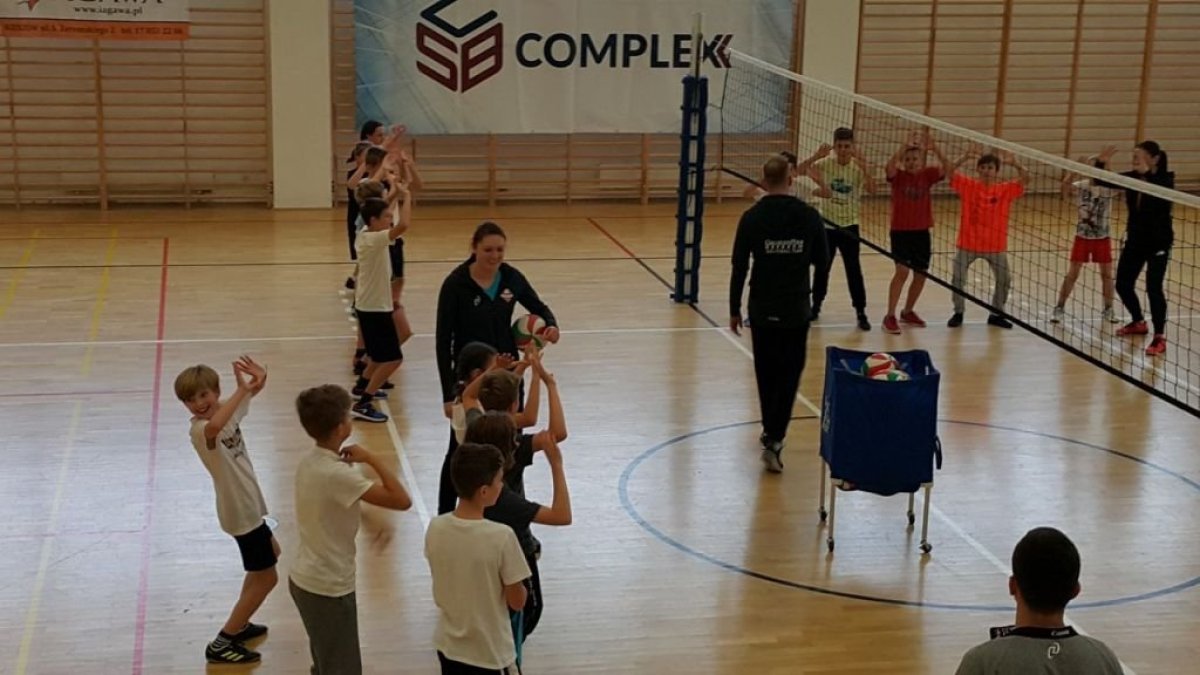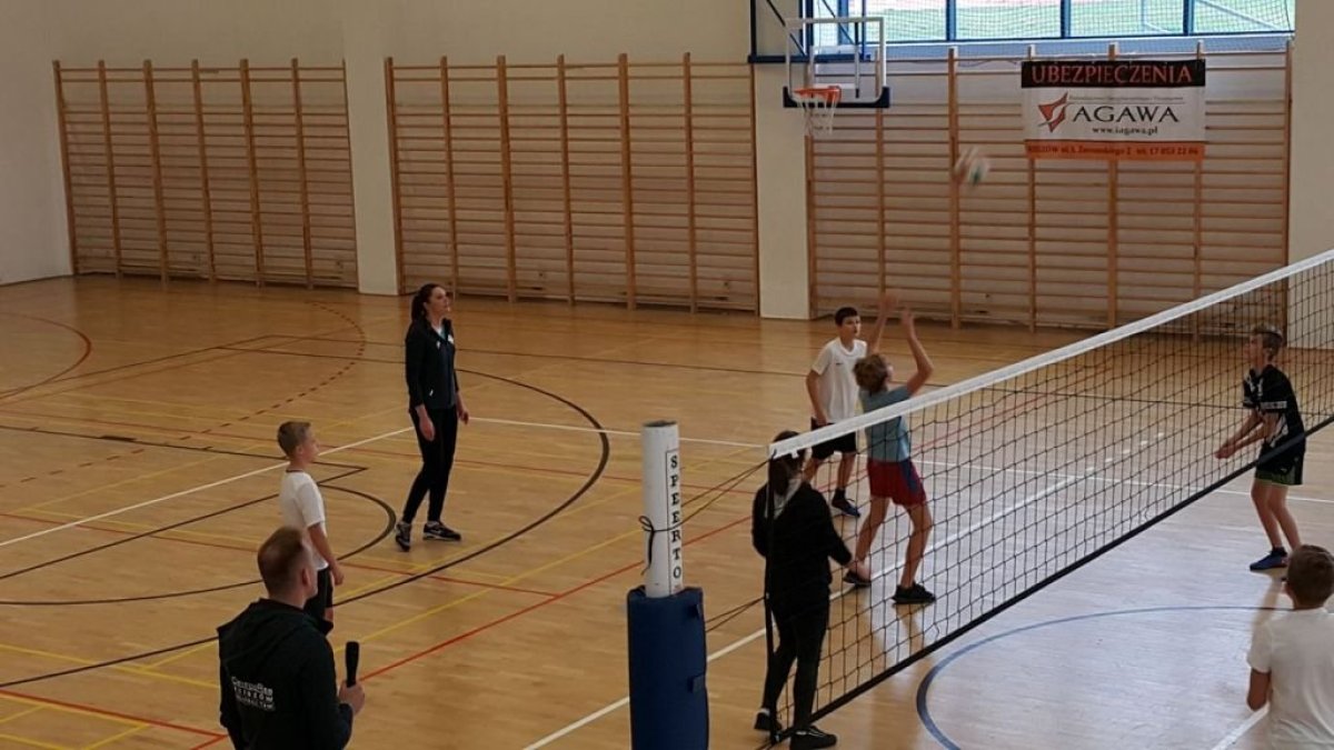 W drugiej części trener Bartłomiej Dąbrowski przeprowadził mini trening na sali gimnastycznej z uczniami naszej szkoły. Zakończył się on meczem, w którym było dużo zabawy i radości, a wszystko to z udziałem naszych gości.