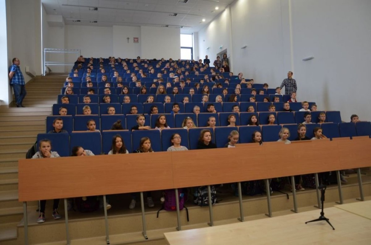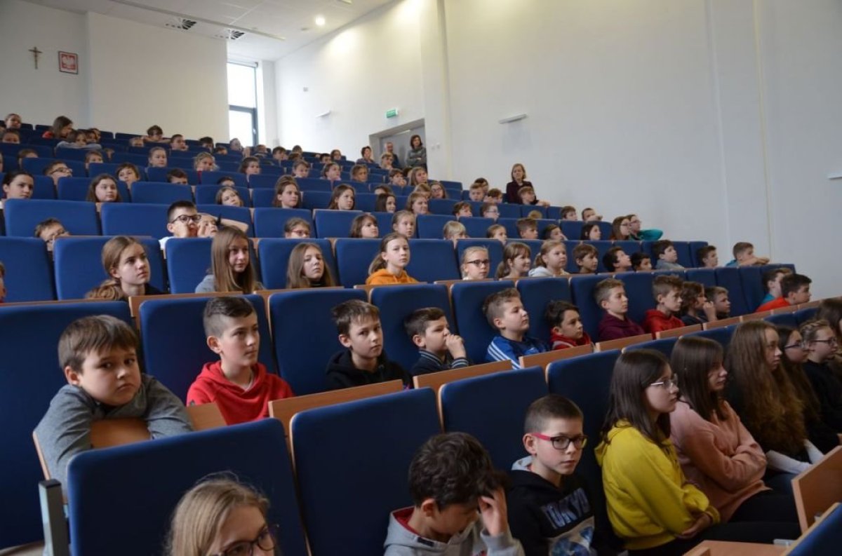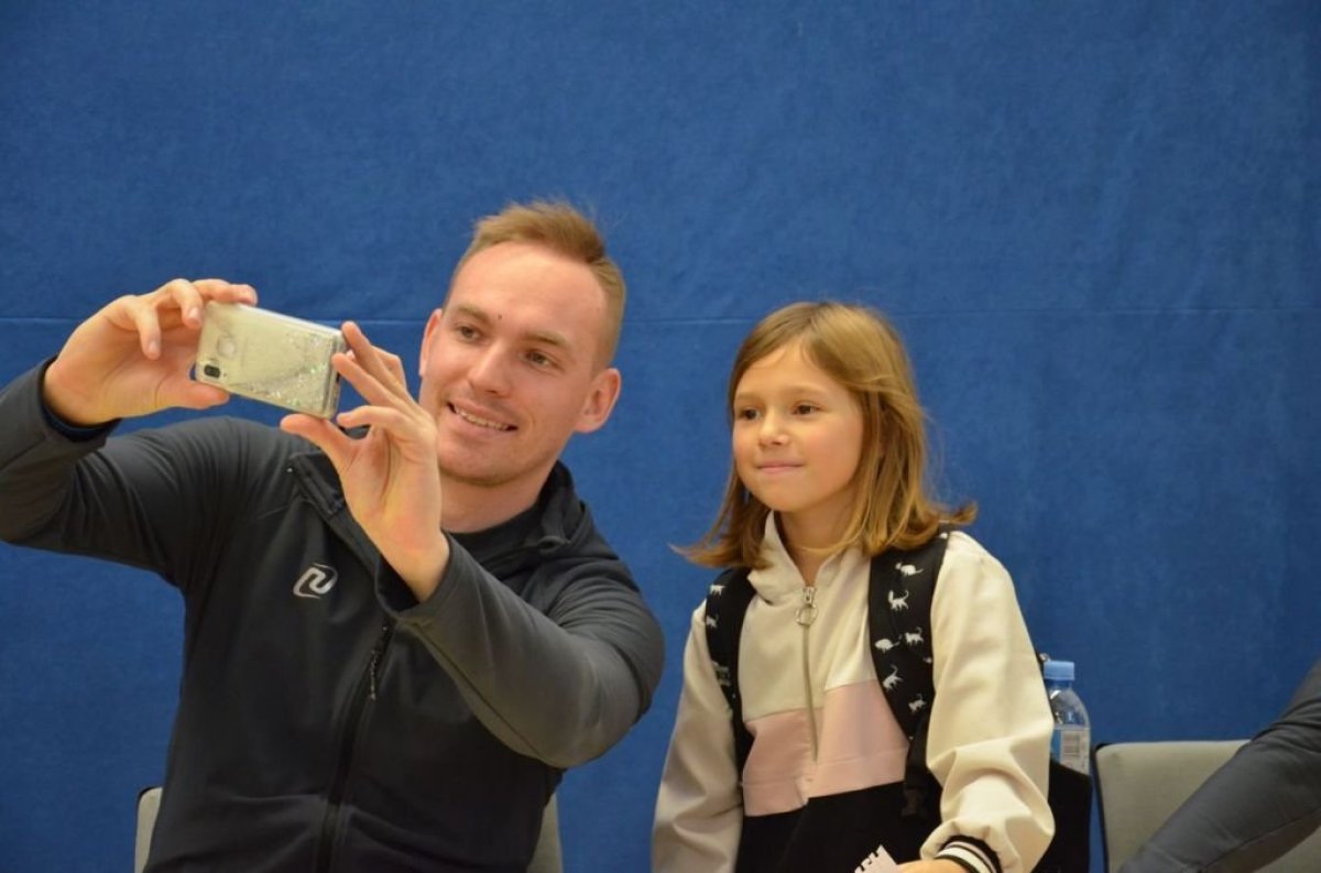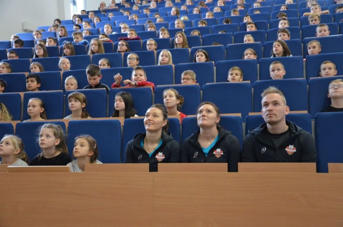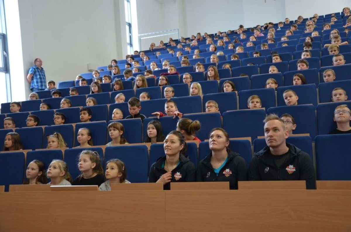 W drugiej części trener Bartłomiej Dąbrowski przeprowadził mini trening na sali gimnastycznej z uczniami naszej szkoły. Zakończył się on meczem, w którym było dużo zabawy i radości, a wszystko to z udziałem naszych gości.