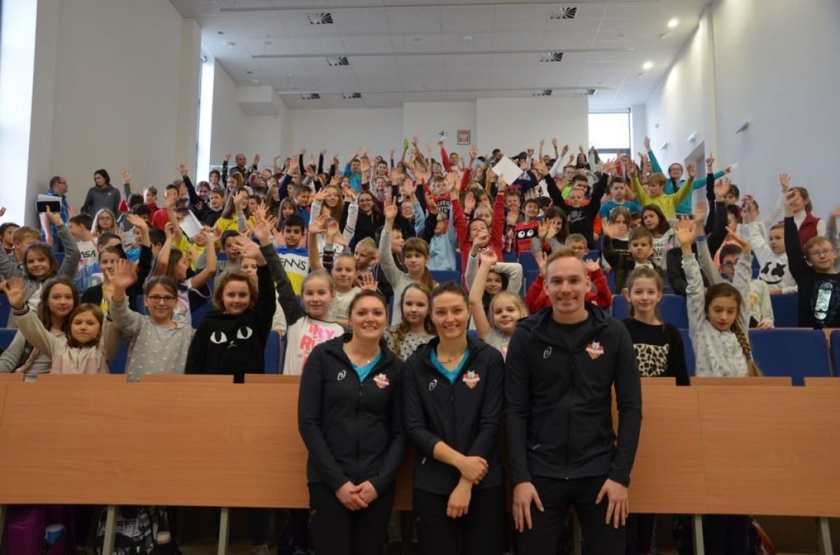 W piątek 22 listopada 2019 r w naszej szkole odbyło się pierwsze spotkanie siatkarek DevelopResu Rzeszów. Naszymi gośćmi były zawodniczki Jelena Blagojević, Tamara Gałucha oraz II trener Bartłomiej Dąbrowski.