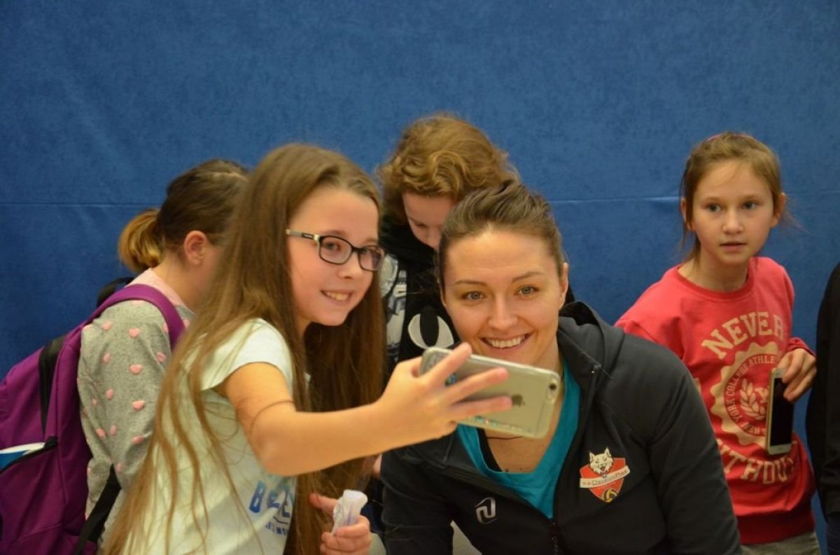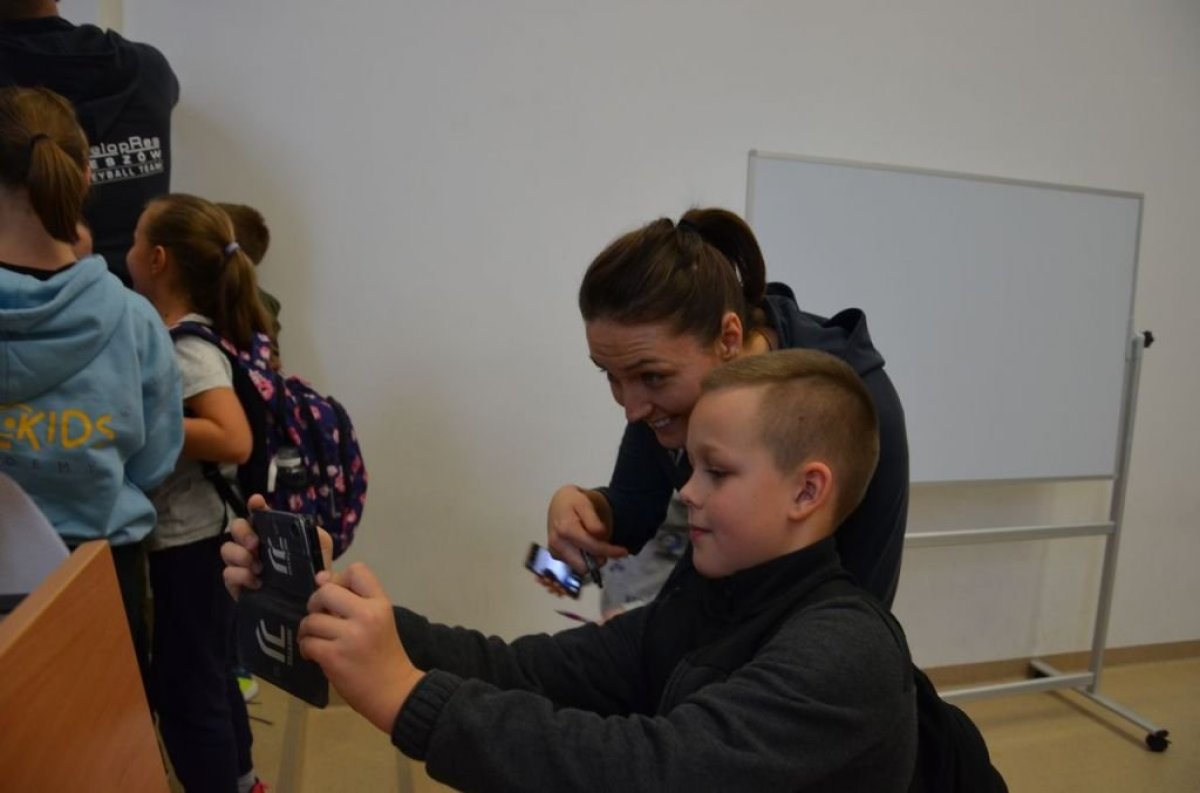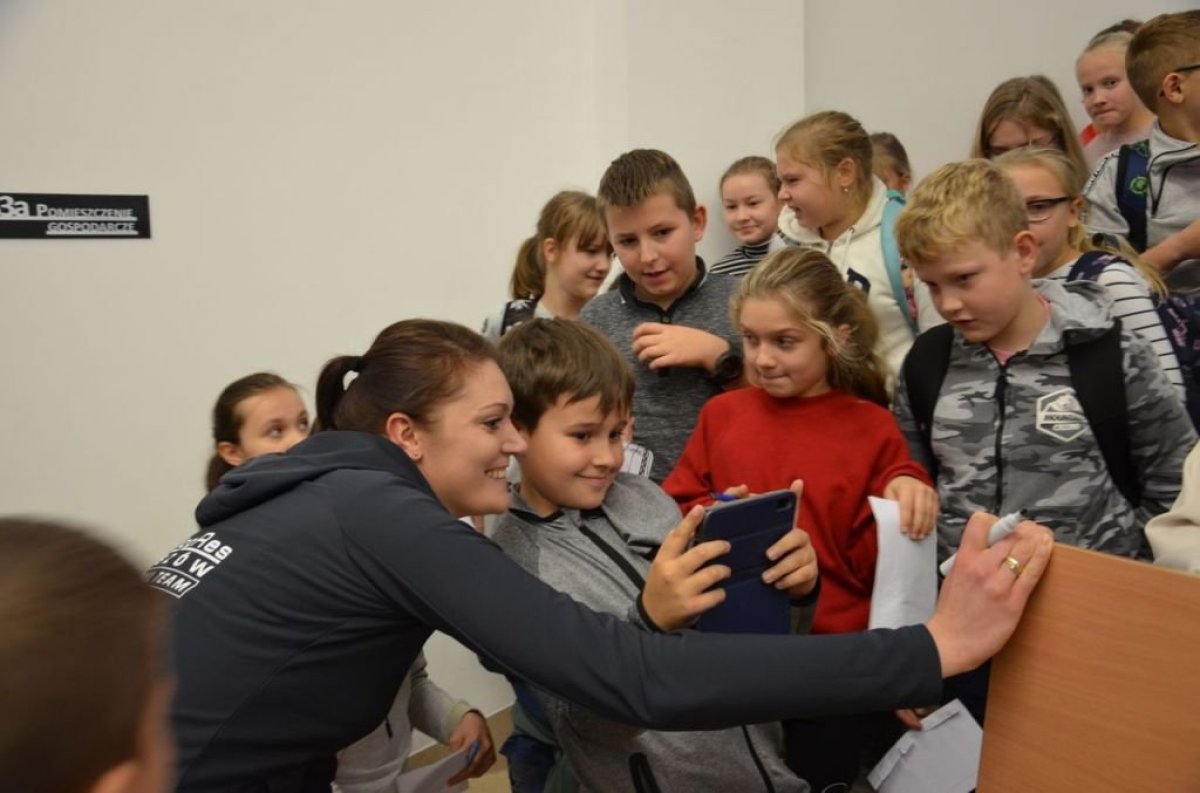 Na zakończenie zawodniczki i trener rozdali mnóstwo autografów oraz zrobili sobie zdjęcia zarówno grupowe, jak i indywidualne. Spotkanie zapadnie na pewno na długo w pamięć wszystkich uczniów naszej szkoły.