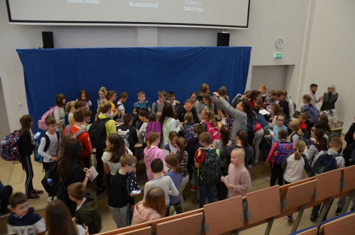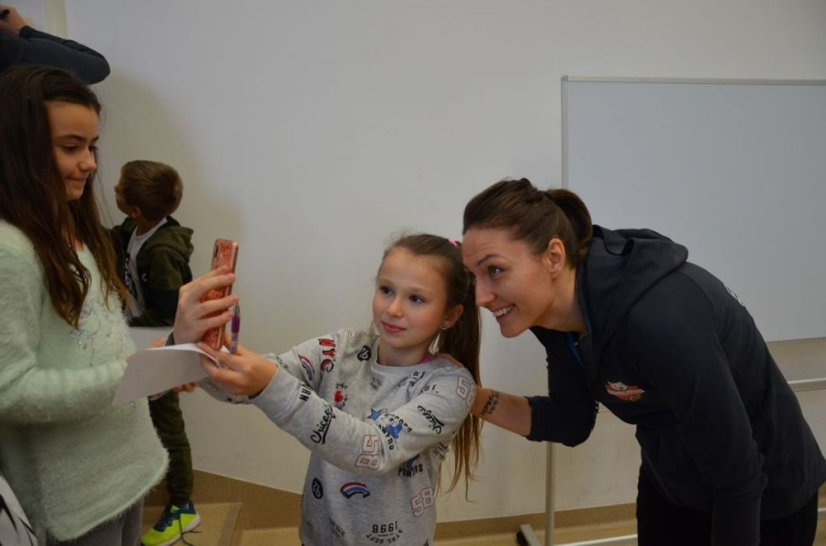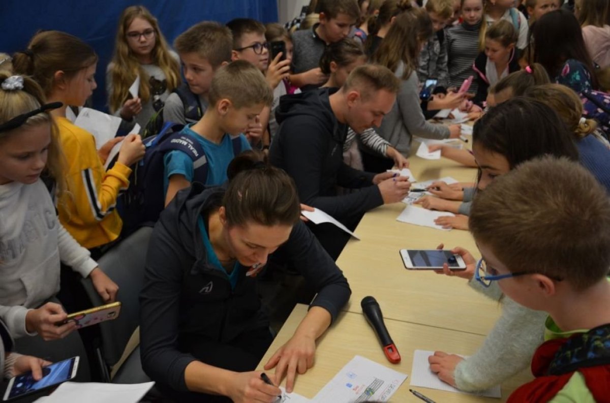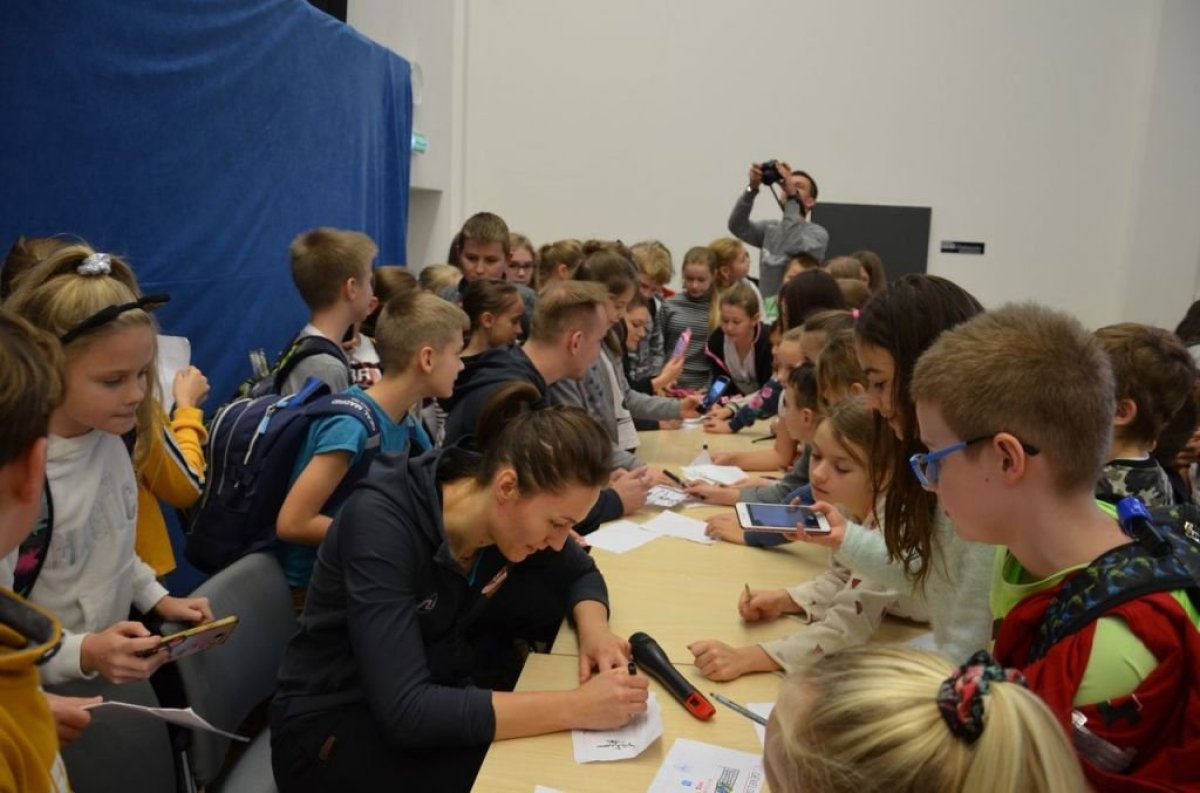 Na zakończenie zawodniczki i trener rozdali mnóstwo autografów oraz zrobili sobie zdjęcia zarówno grupowe, jak i indywidualne. Spotkanie zapadnie na pewno na długo w pamięć wszystkich uczniów naszej szkoły.