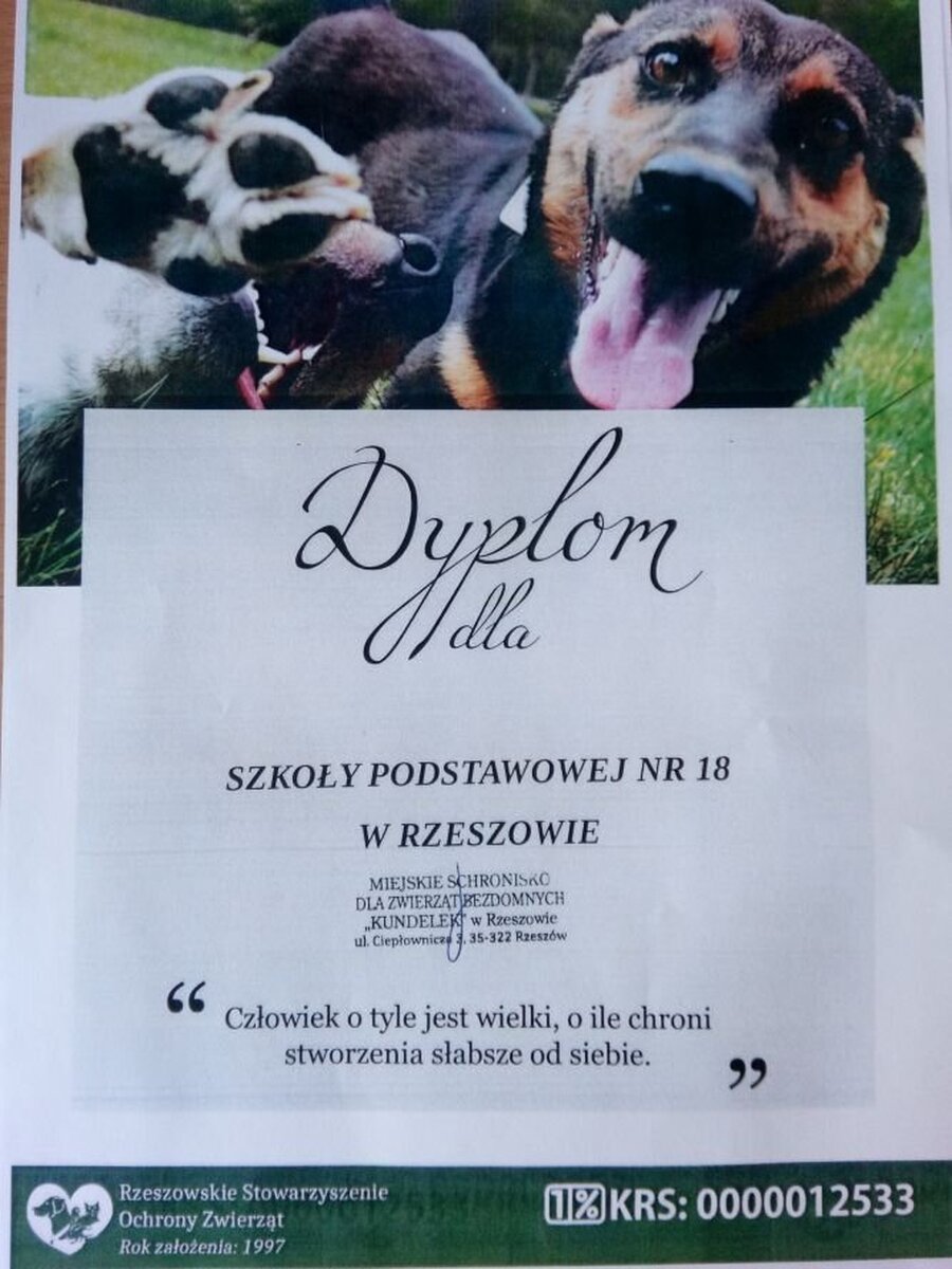 Nasi uczniowie po raz kolejny wzięli udział w akcji zbierania żywności i akcesoriów dla zwierząt rzeszowskiego schroniska „Kundelek”. Zbiórka koordynowana przez nauczycieli przyrody, biologii, geografii, edukacji wczesnoszkolnej oraz świetlicy przyniosła wspaniałe rezultaty.